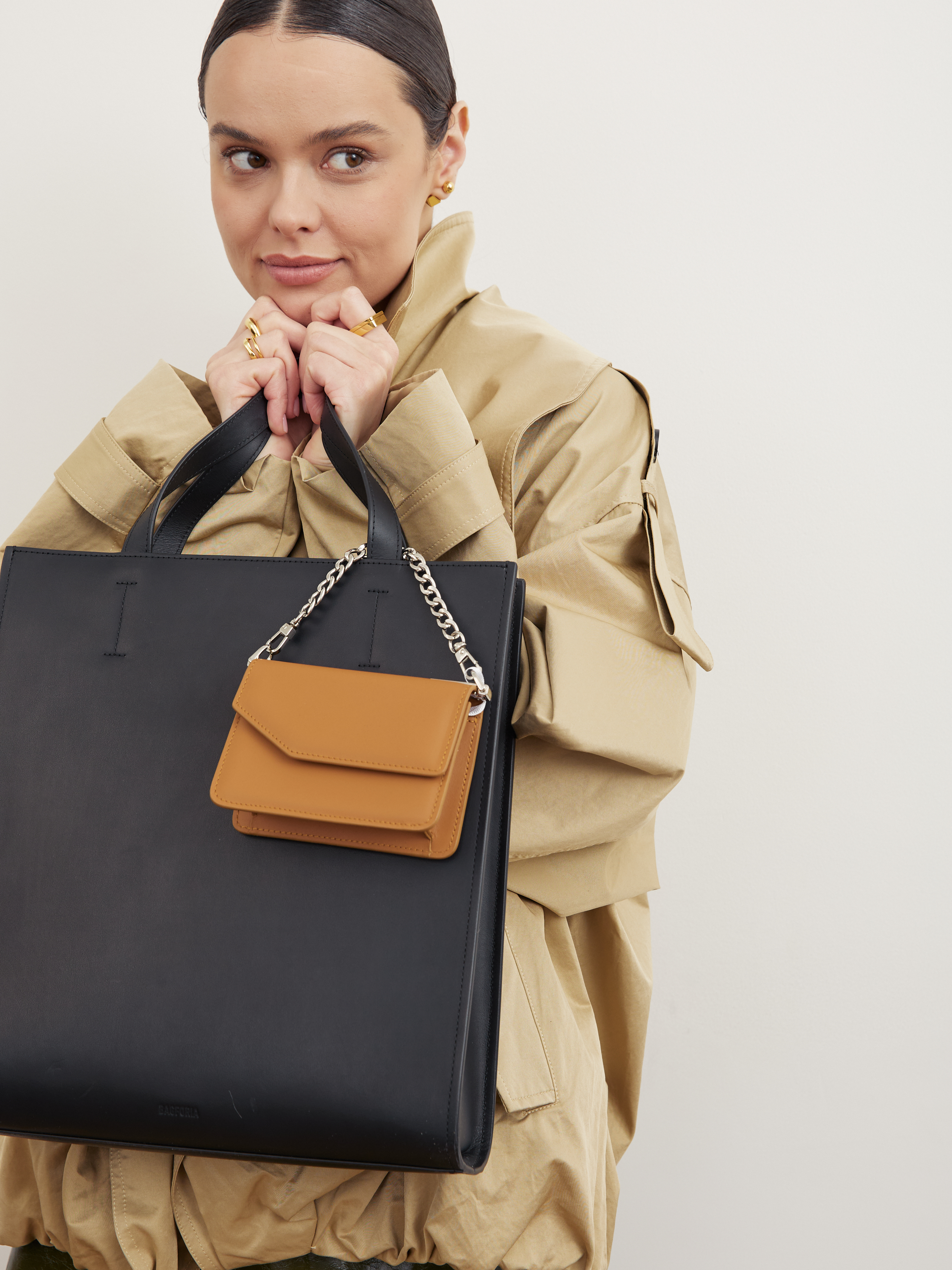 * при покупке шоппера на закрытом доступе вы получите в подарок мини-сумочку нюдового цвета, которую можно носить отдельно, использовать как сумочный обвес или носить, пристегнув к кожаному ремню на талии.