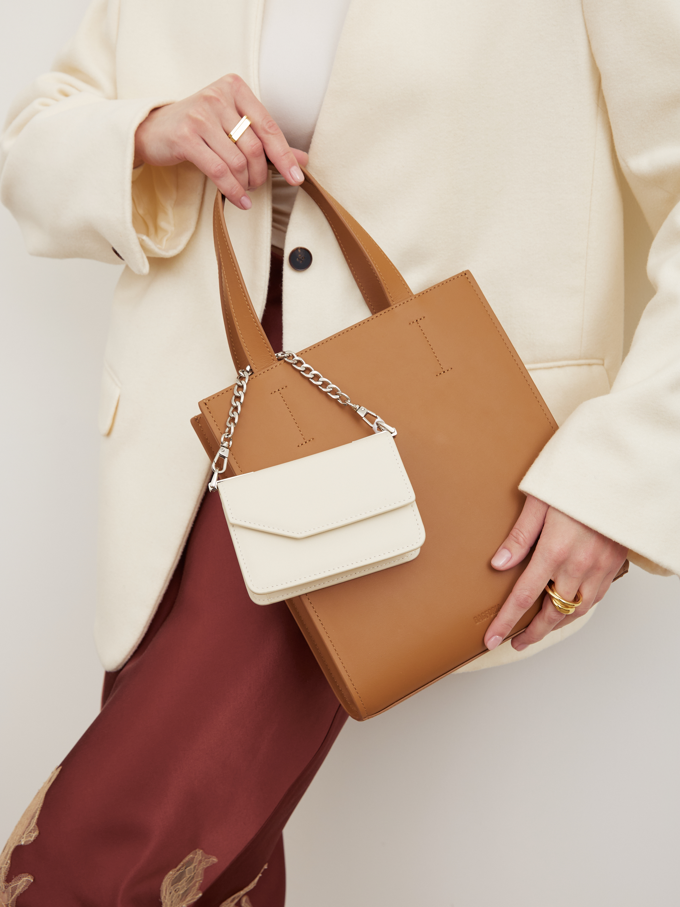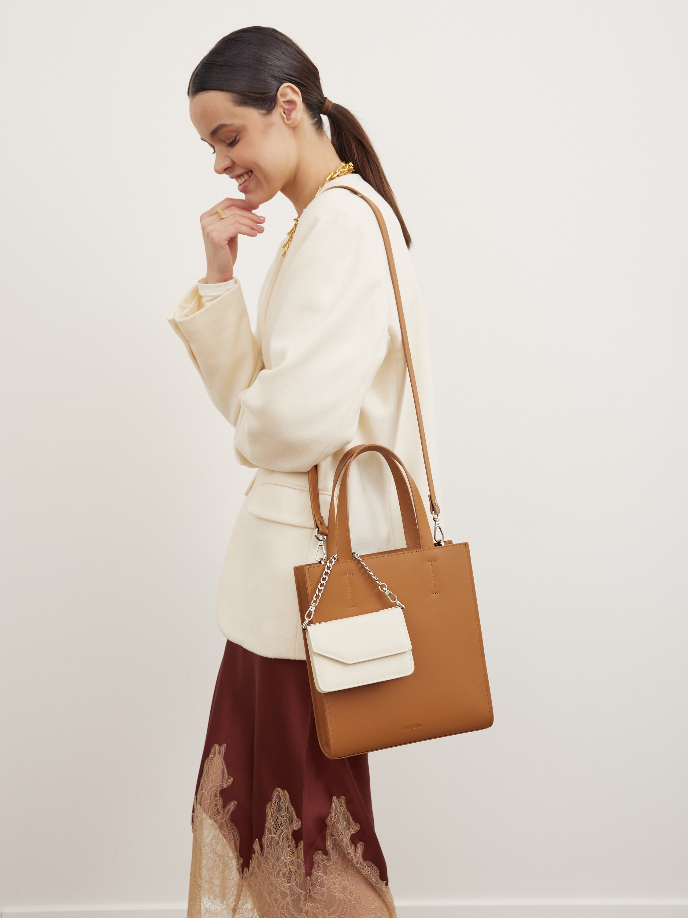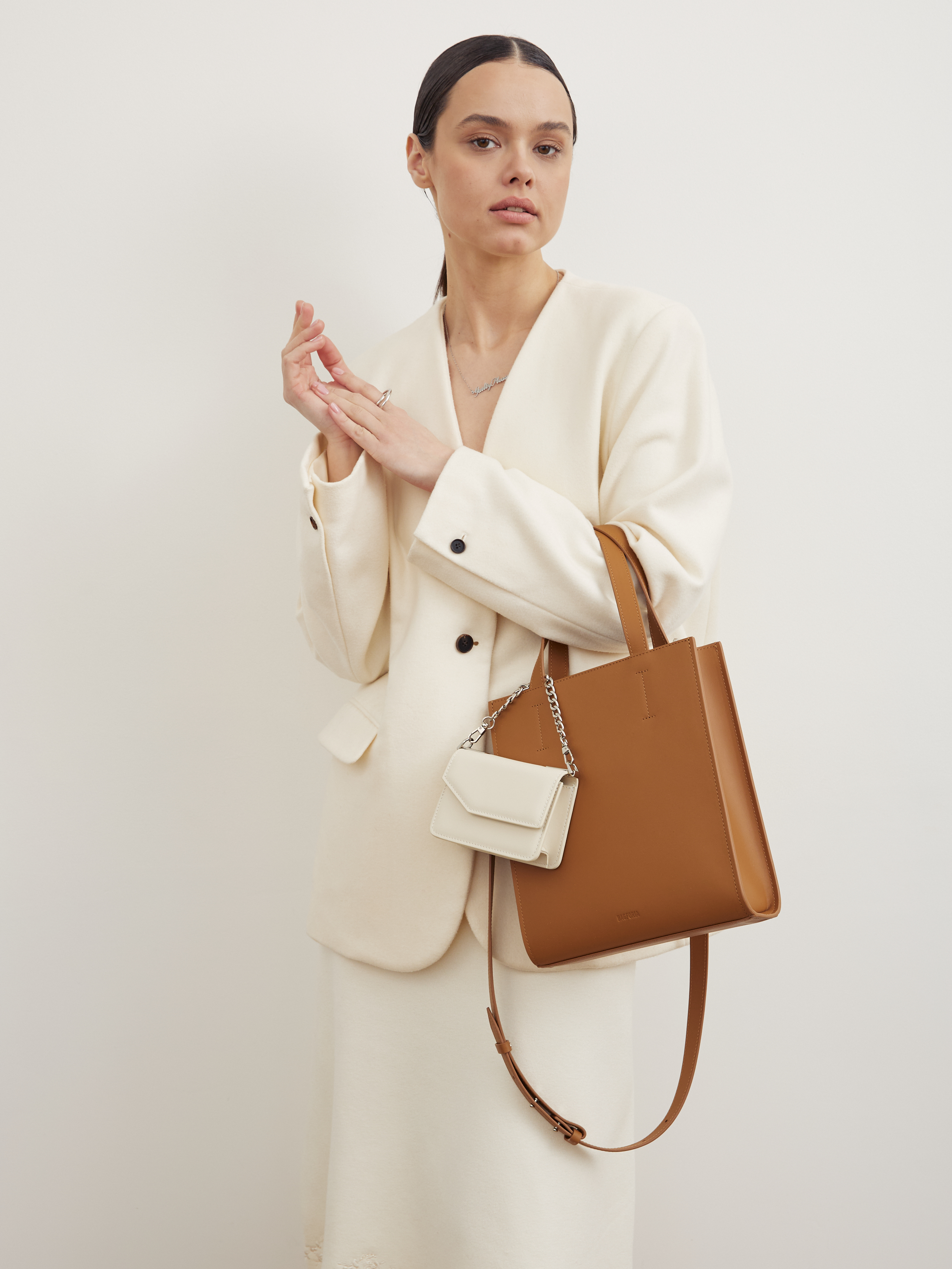 * при покупке шоппера на закрытом доступе вы получите в подарок мини-сумочку молочного цвета, которую можно носить отдельно, использовать как сумочный обвес или носить, пристегнув к кожаному ремню на талии.