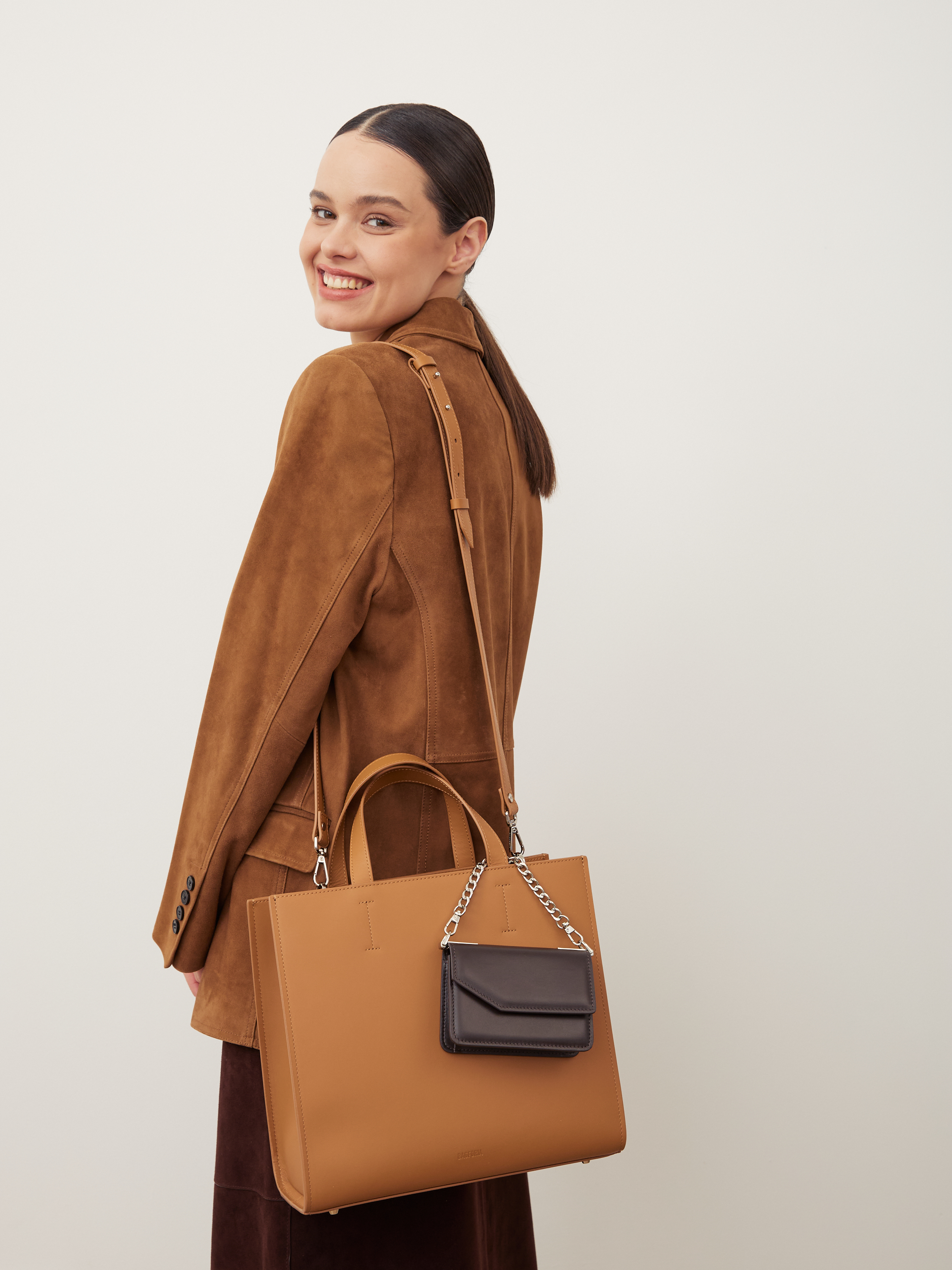 Цепочка на карабине, чтобы, отстегнув ее, вы смогли закрепить ее на сумке или даже на ремне на талии!