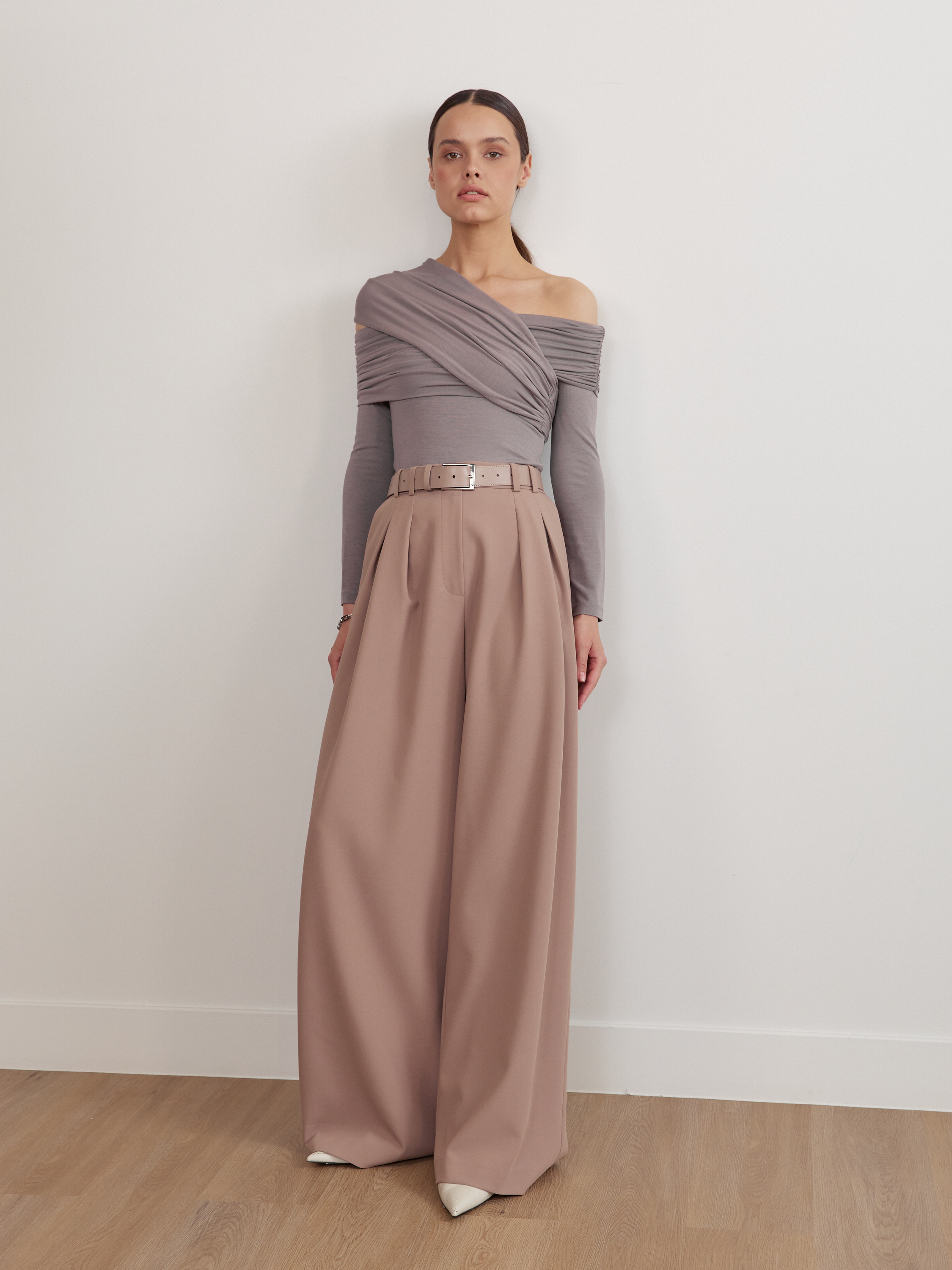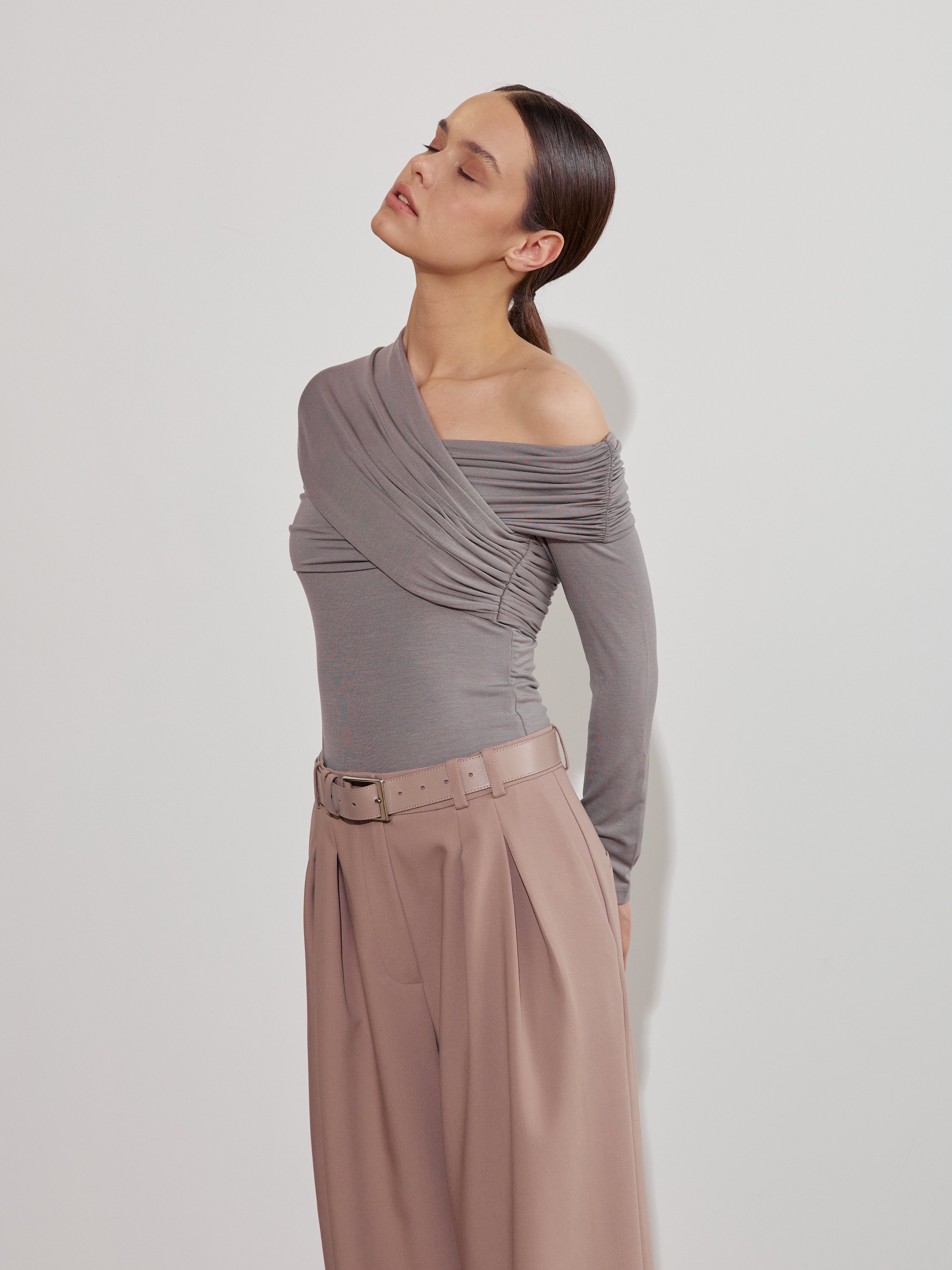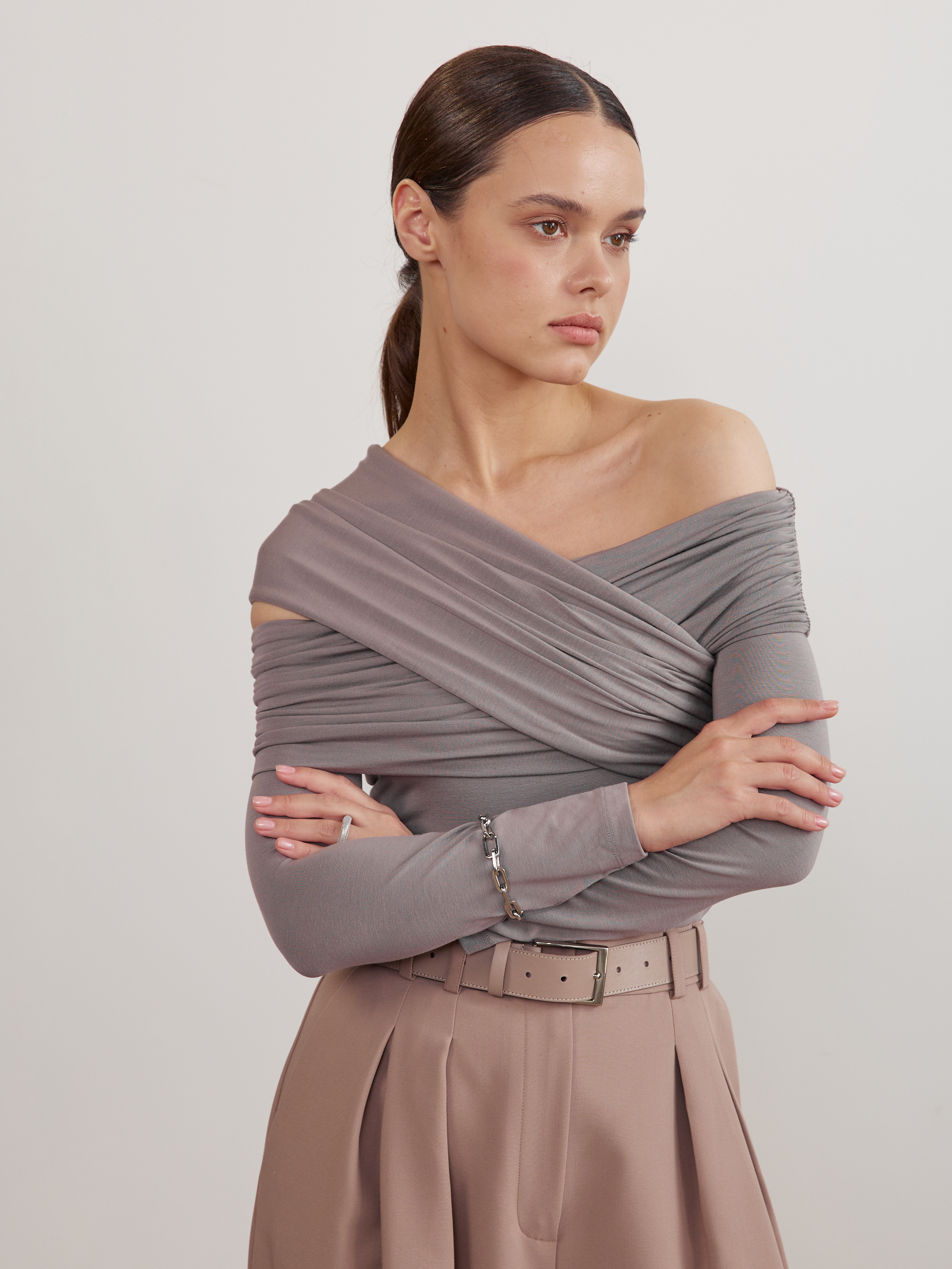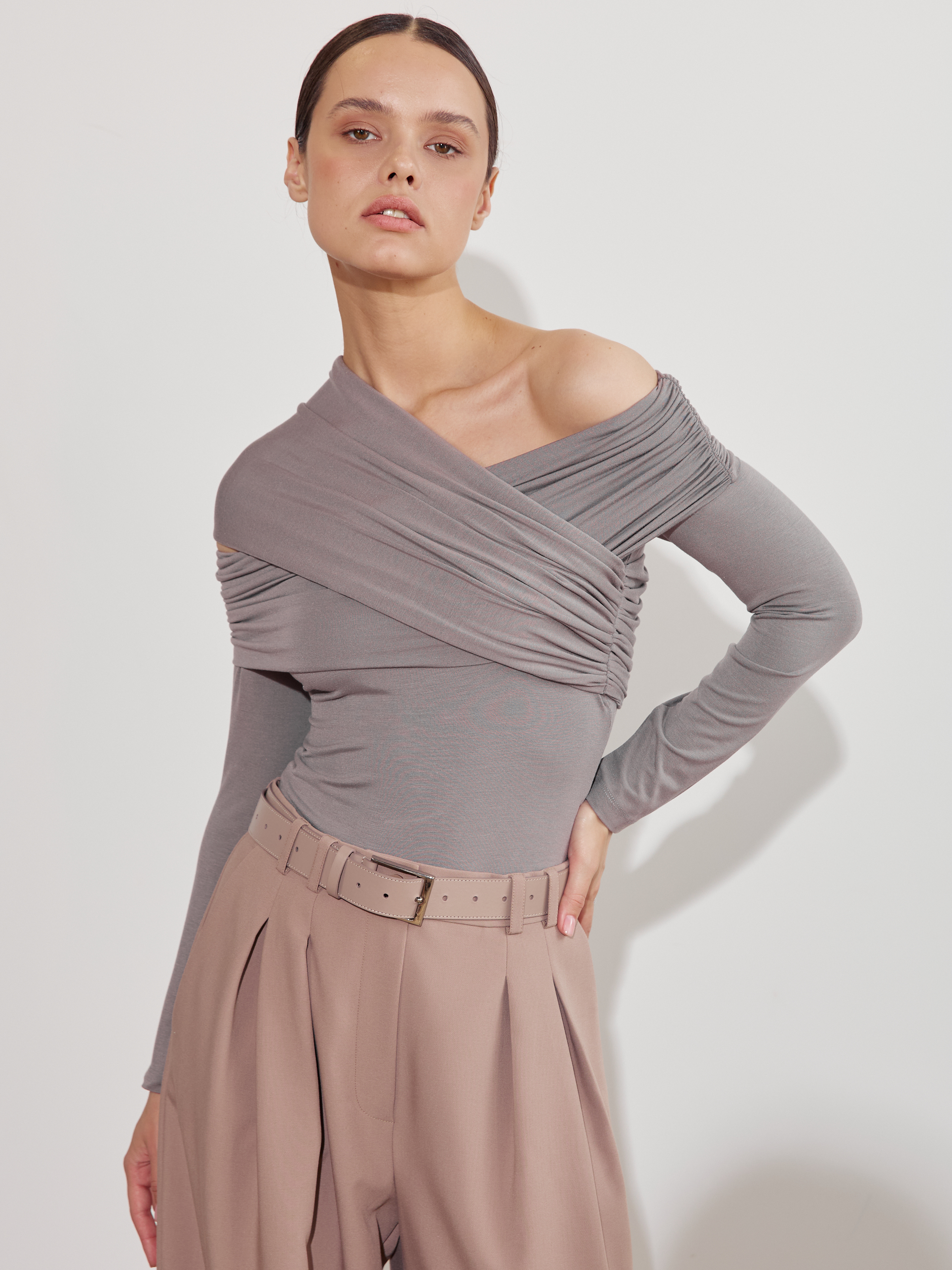Вы можете носить боди разными способами, вариативно пользуясь драпировками на плечах: можно прикрыть плечо, можно поднять на одно плечо, создав асимметричный минималистичный образ, либо спустить драпировки ниже, показав красивые плечи.