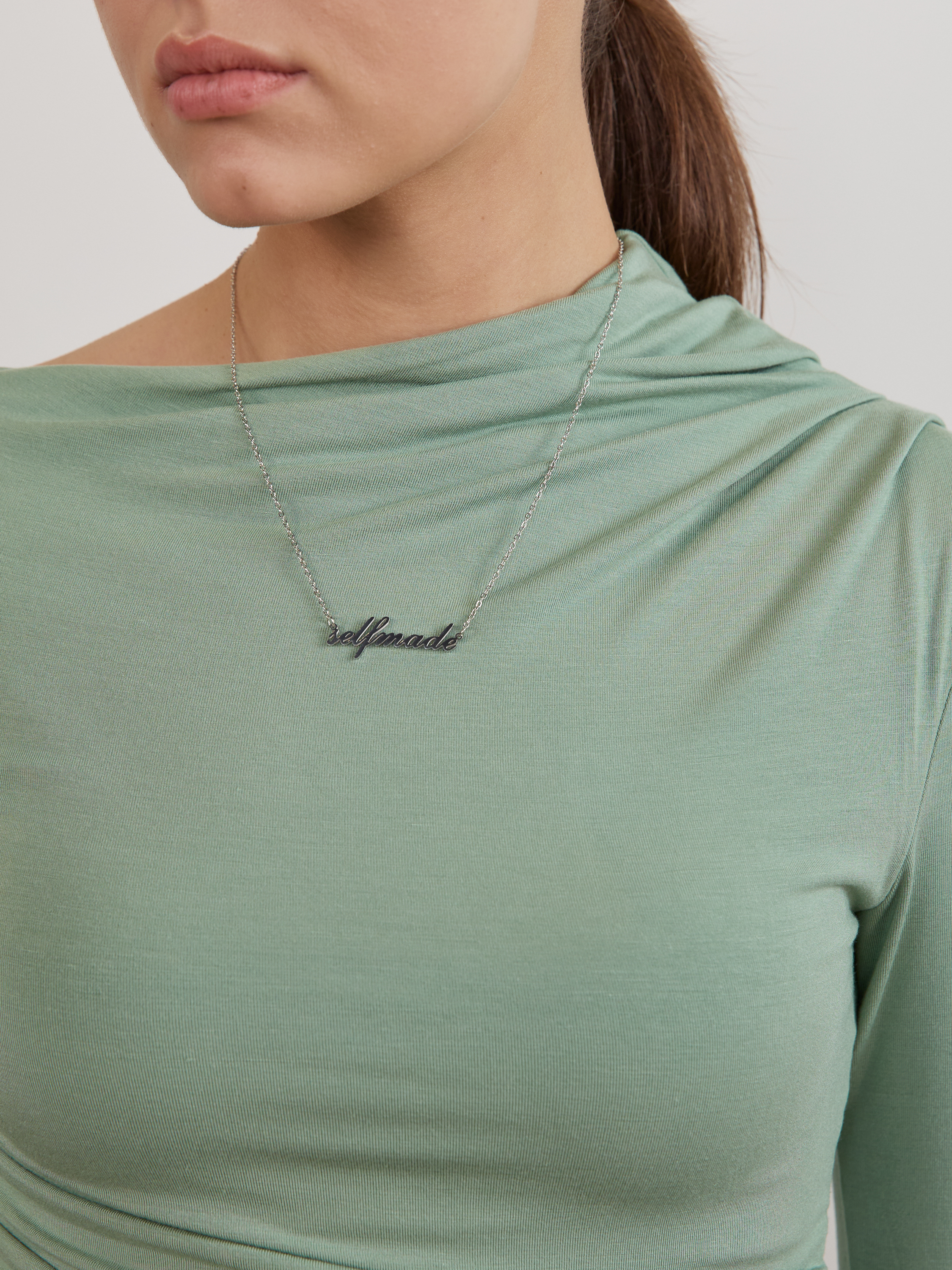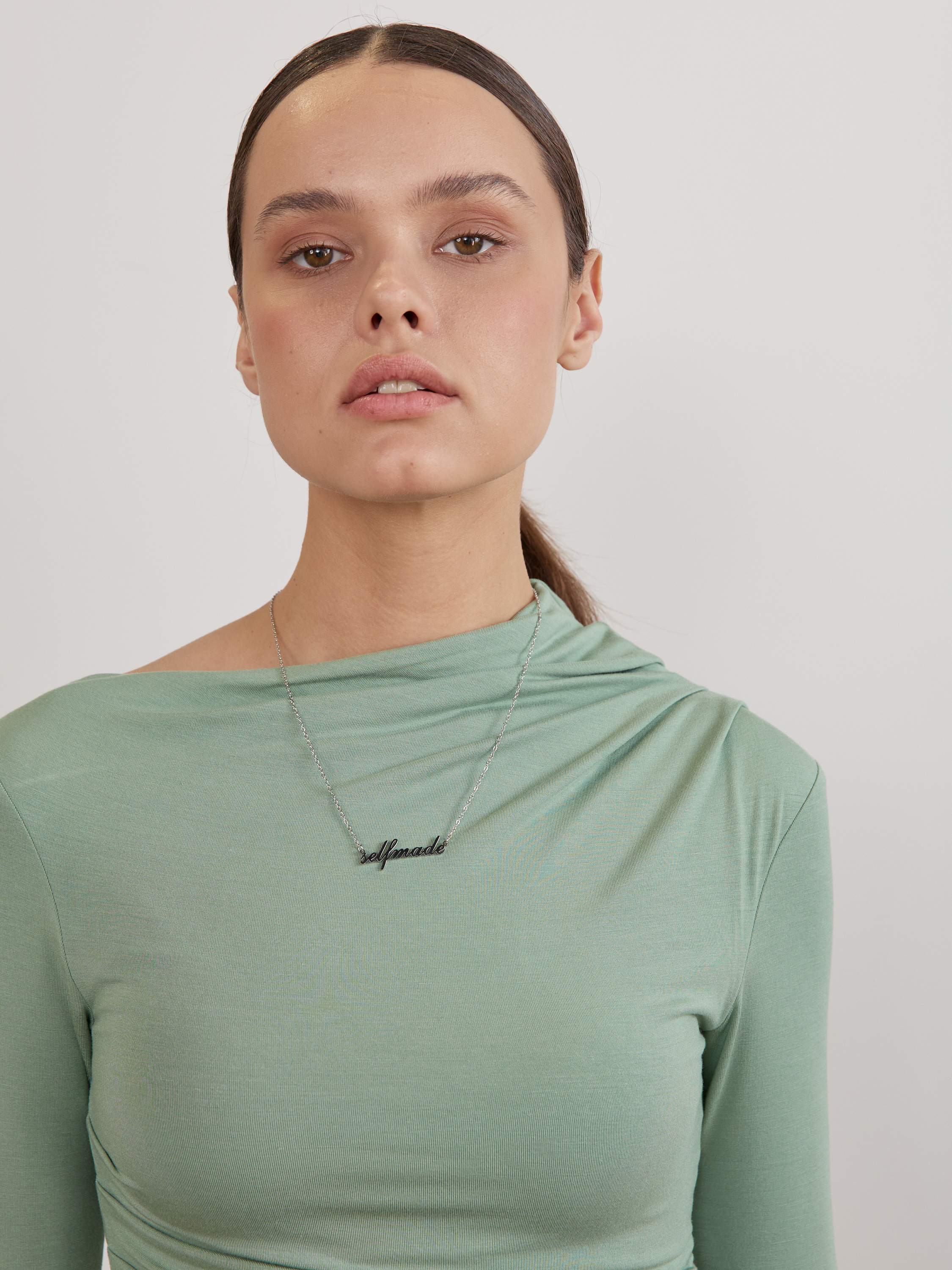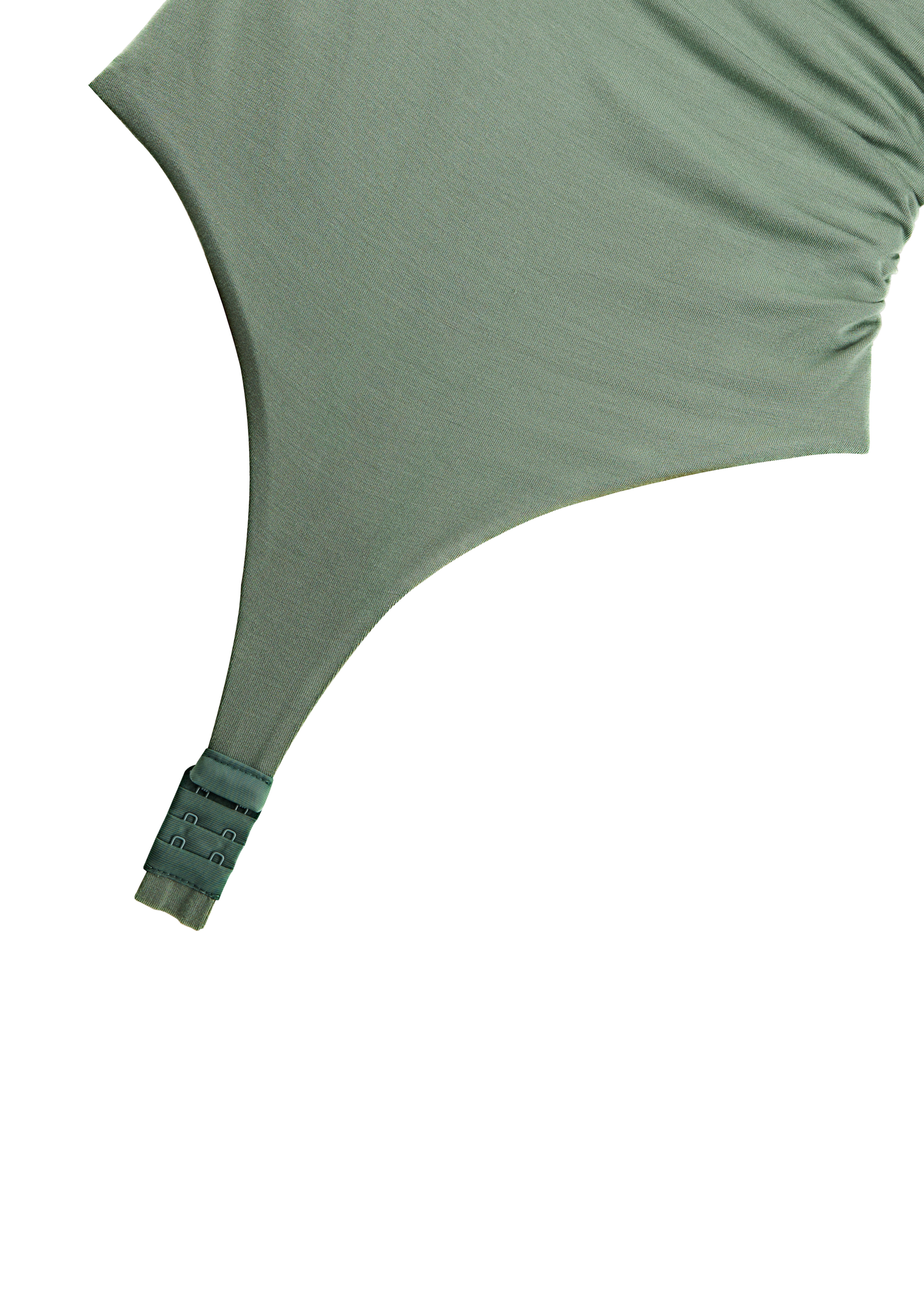Вы можете носить боди разными способами, вариативно пользуясь драпировками на плечах: можно прикрыть ими плечи, можно спустить на одно плечо, создав асимметричный минималистичный образ.