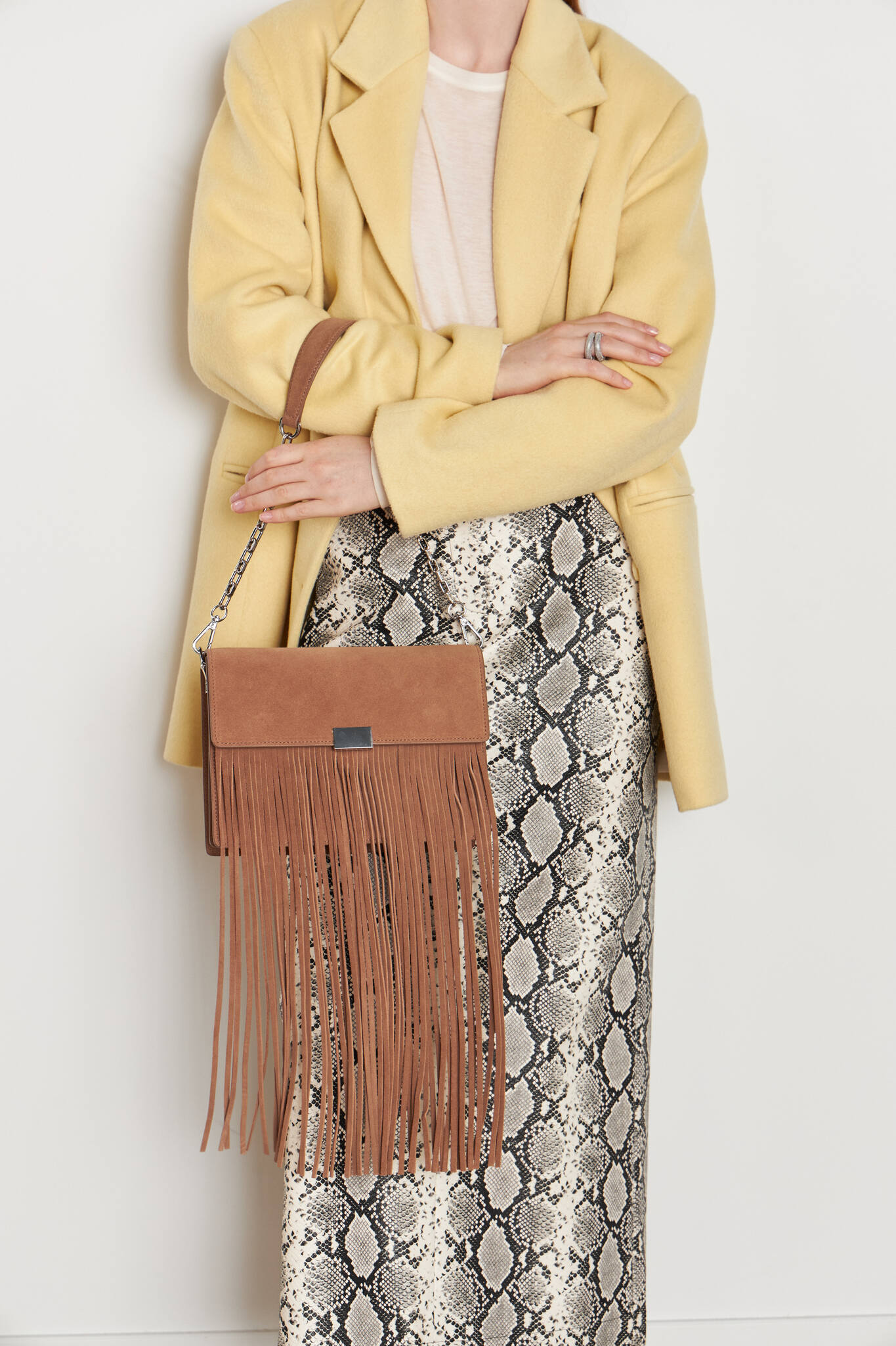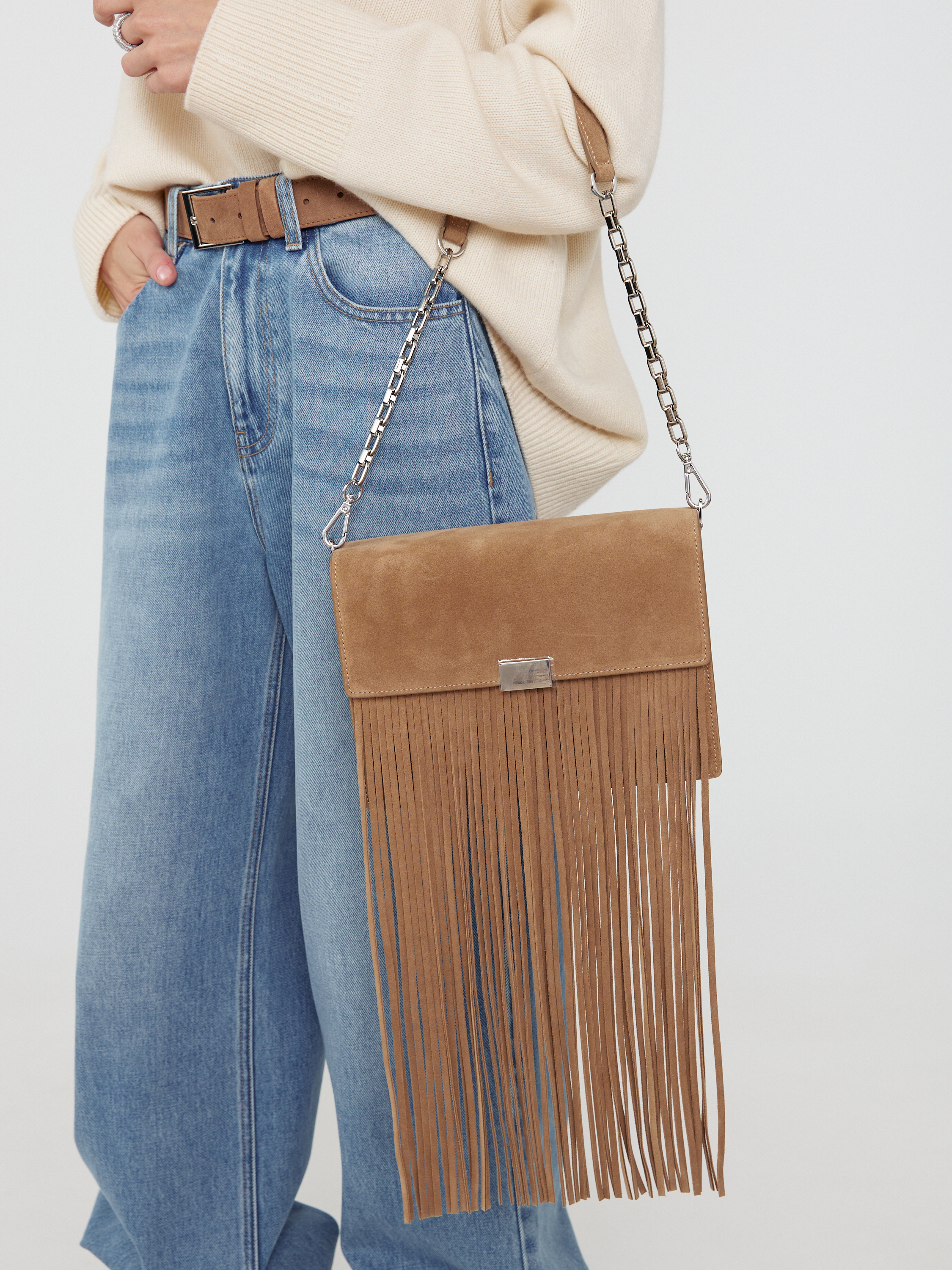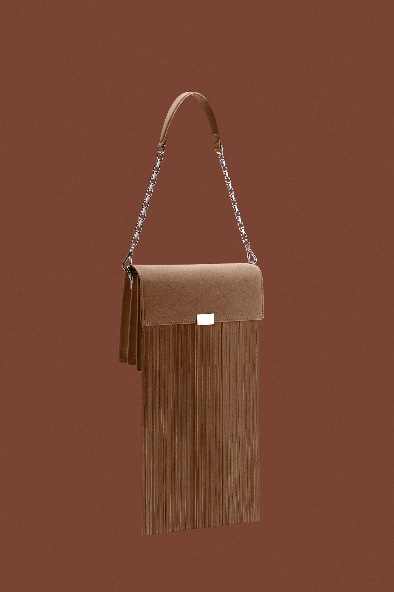 Потому что бахрома пристегивается легким движением руки, чтобы ваша базовая сумка превратилась в ультрамодную сумочку в стиле бохо и составила компанию вашим любимым казакам, платьям с воланами и рюшами, замшевым пиджакам или блузкам сложного кроя.