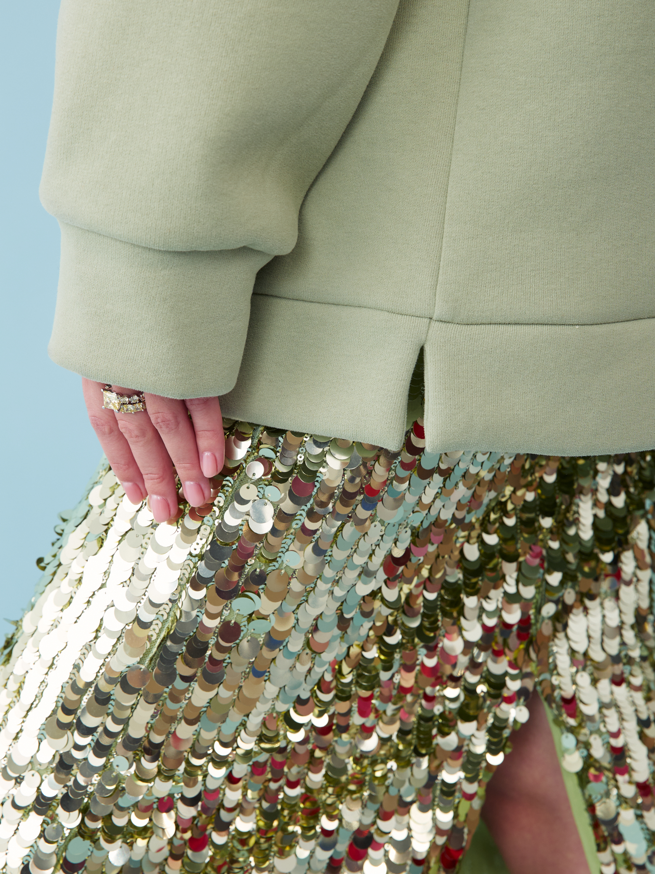 Длина свитшота: XS – 71 см, S – 72 см, M – 73 см, L – 74 см, XL – 75 см.