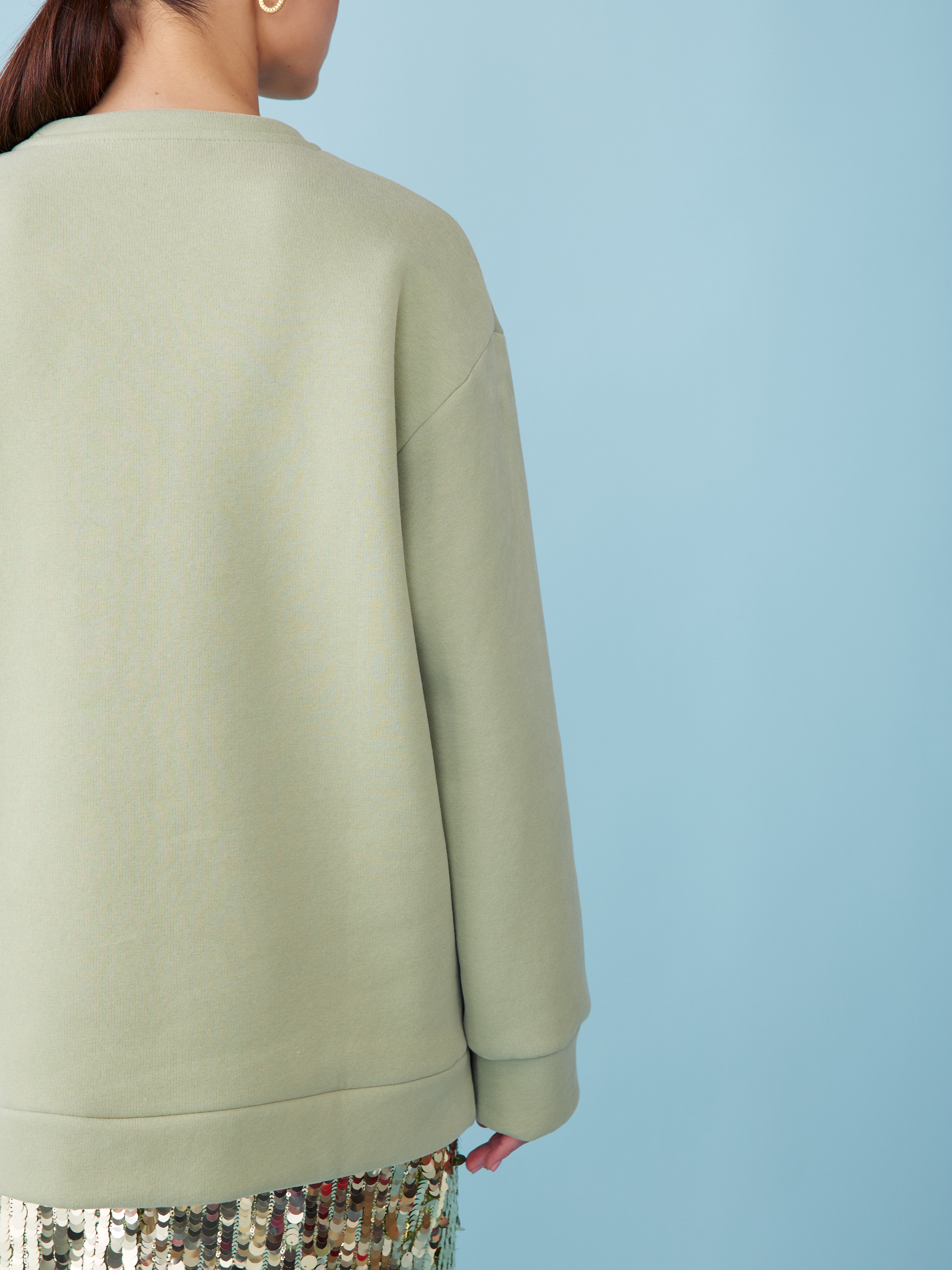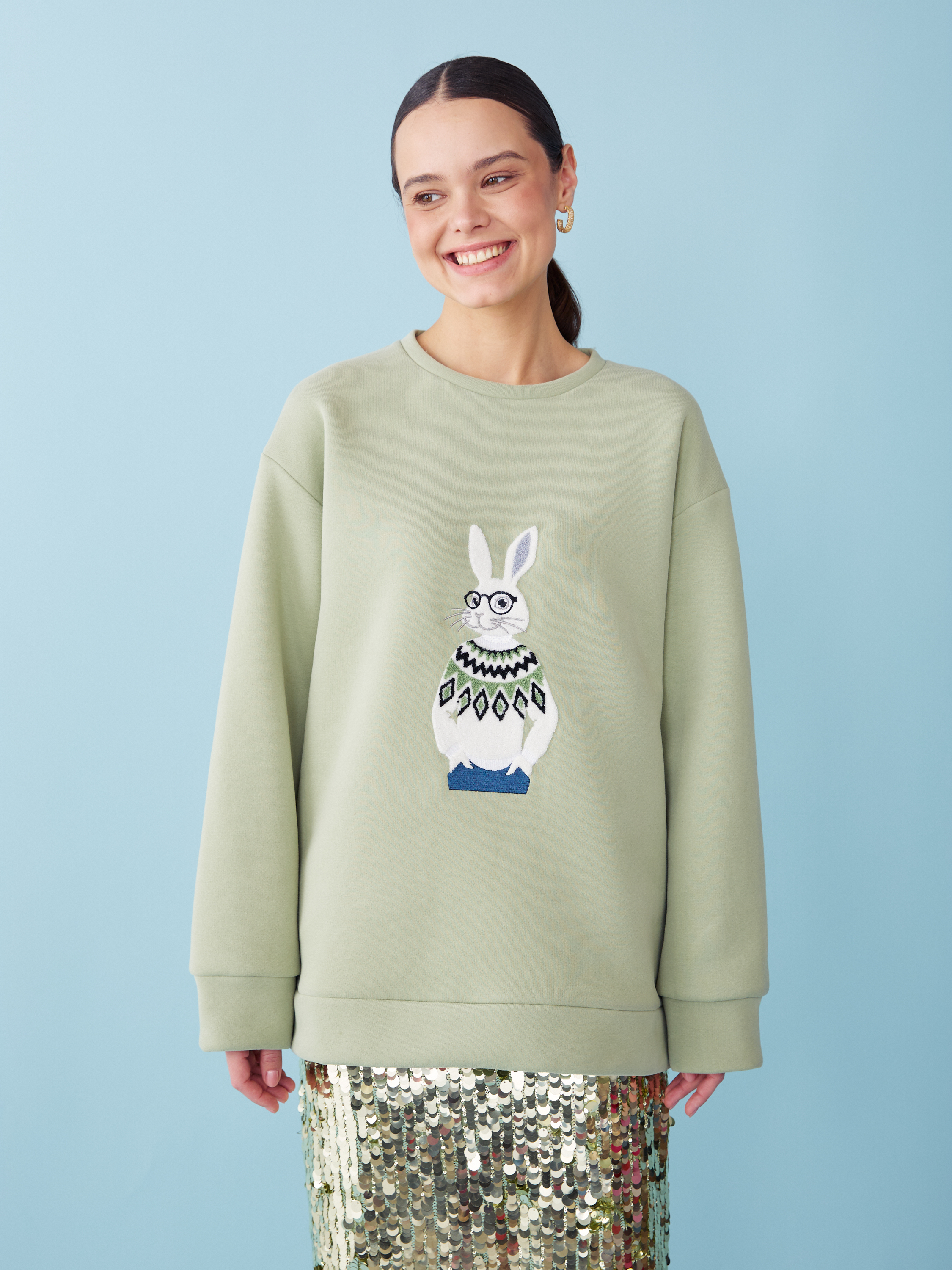 Свитшот сшит из нежного, супермягкого матового футера с начесом. Принт – вышивка.