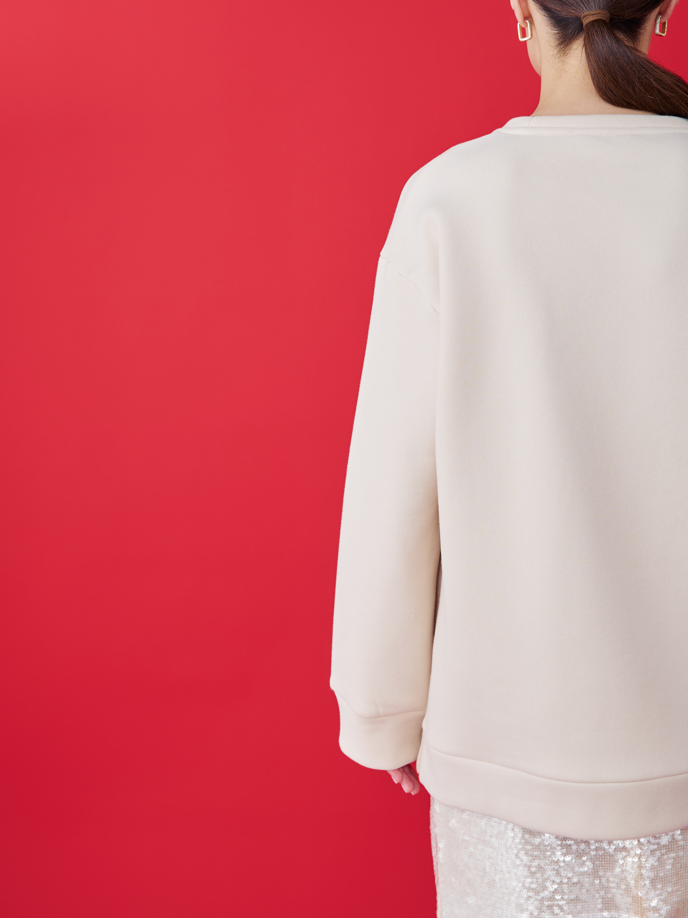 Свитшот сшит из нежного, супермягкого матового футера с начесом. Принт – вышивка.