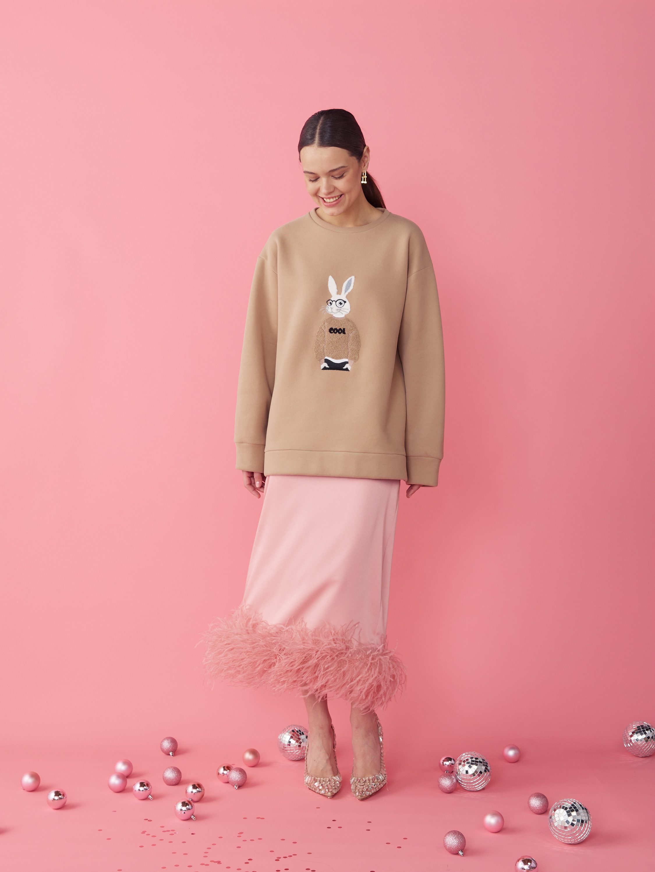 Свитшот сшит из нежного, супермягкого матового футера с начесом. Принт – вышивка.