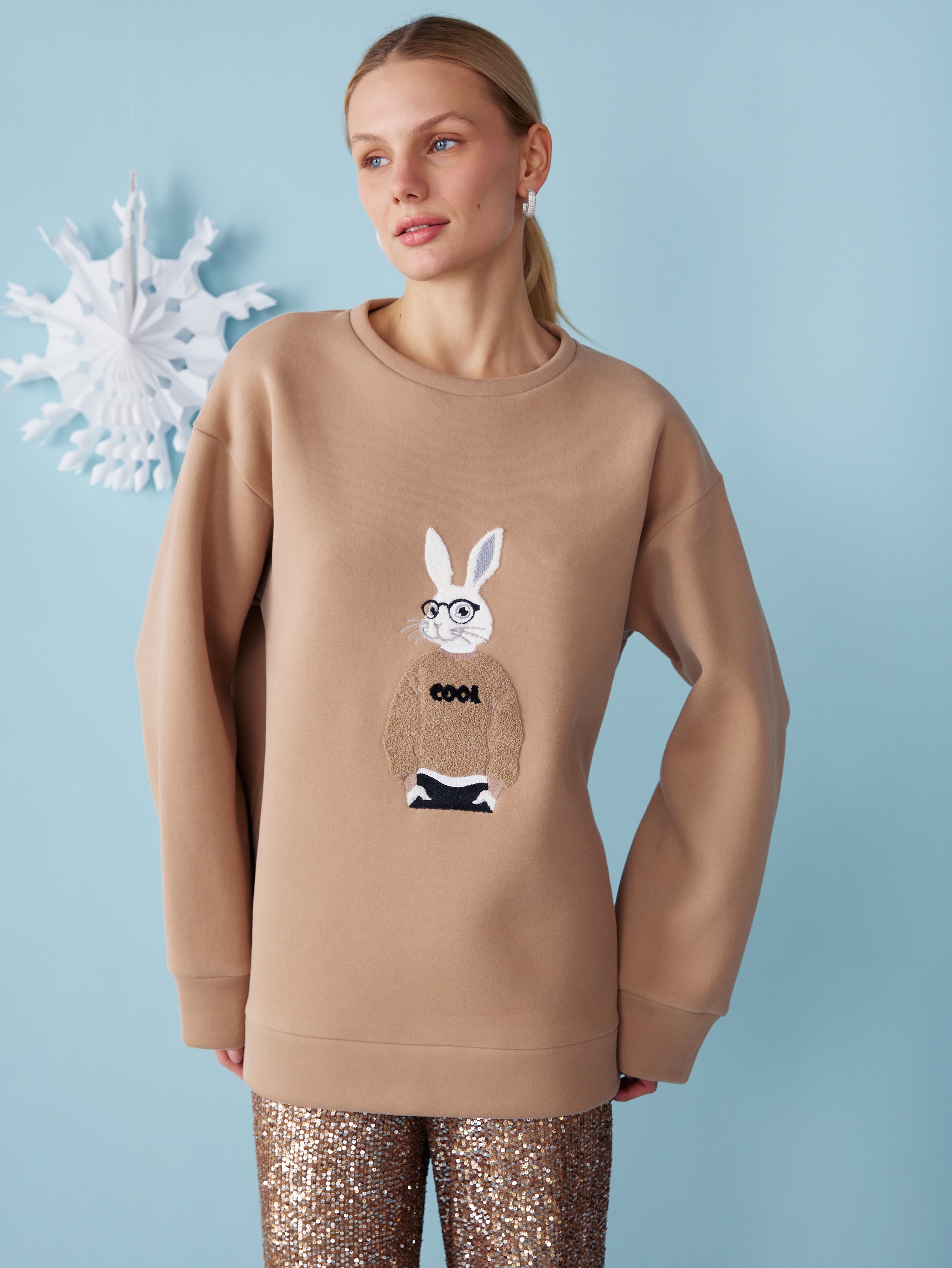Свитшот сшит из нежного, супермягкого матового футера с начесом. Принт – вышивка.