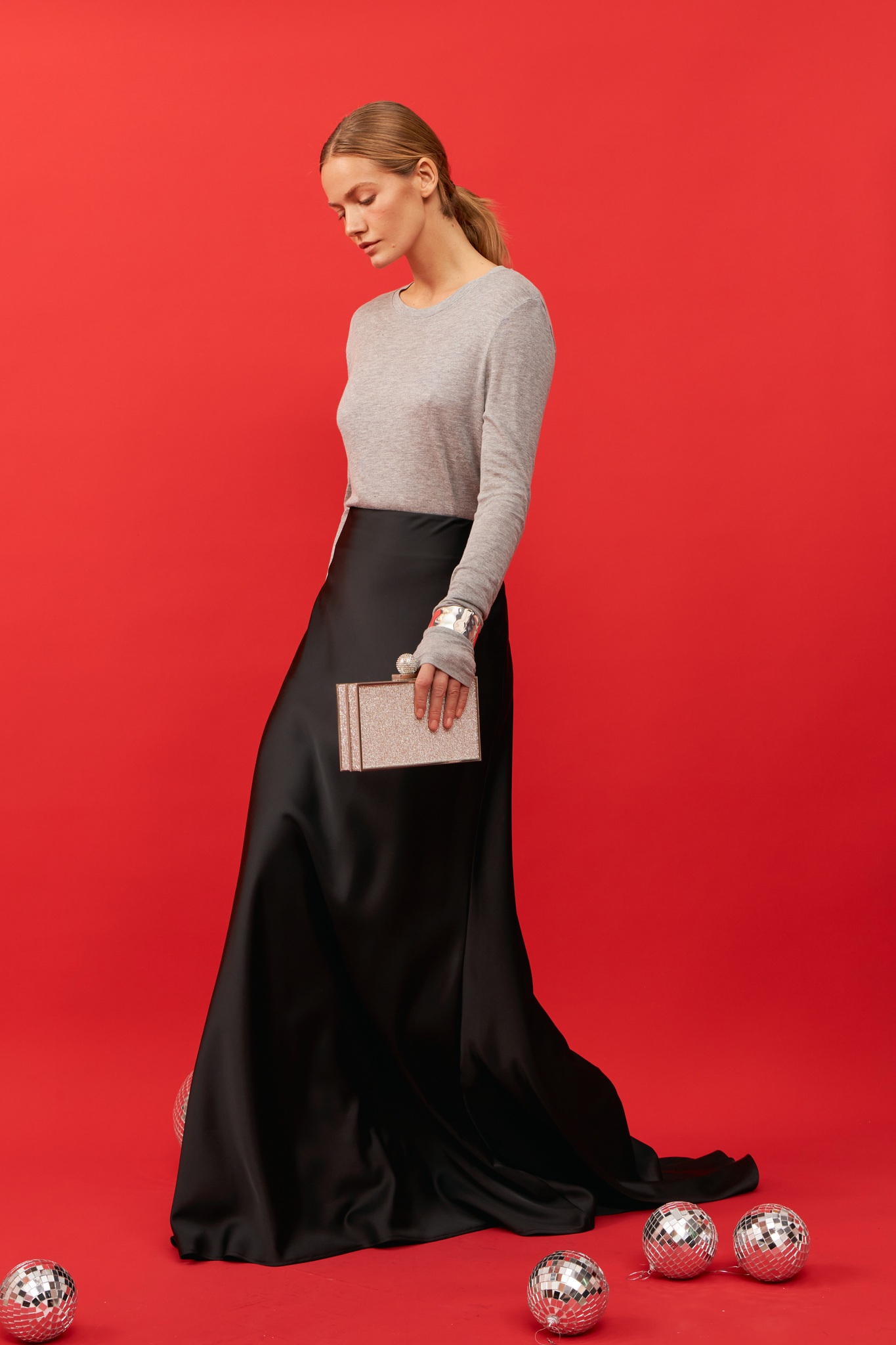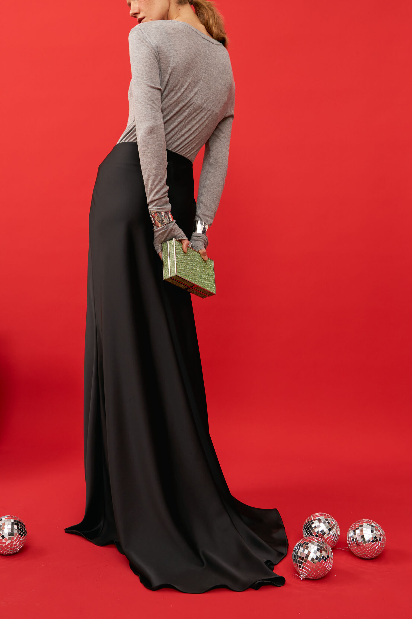 Юбка из благородного, тяжелого, струящегося и немнущегося сатина с роскошным шлейфом.