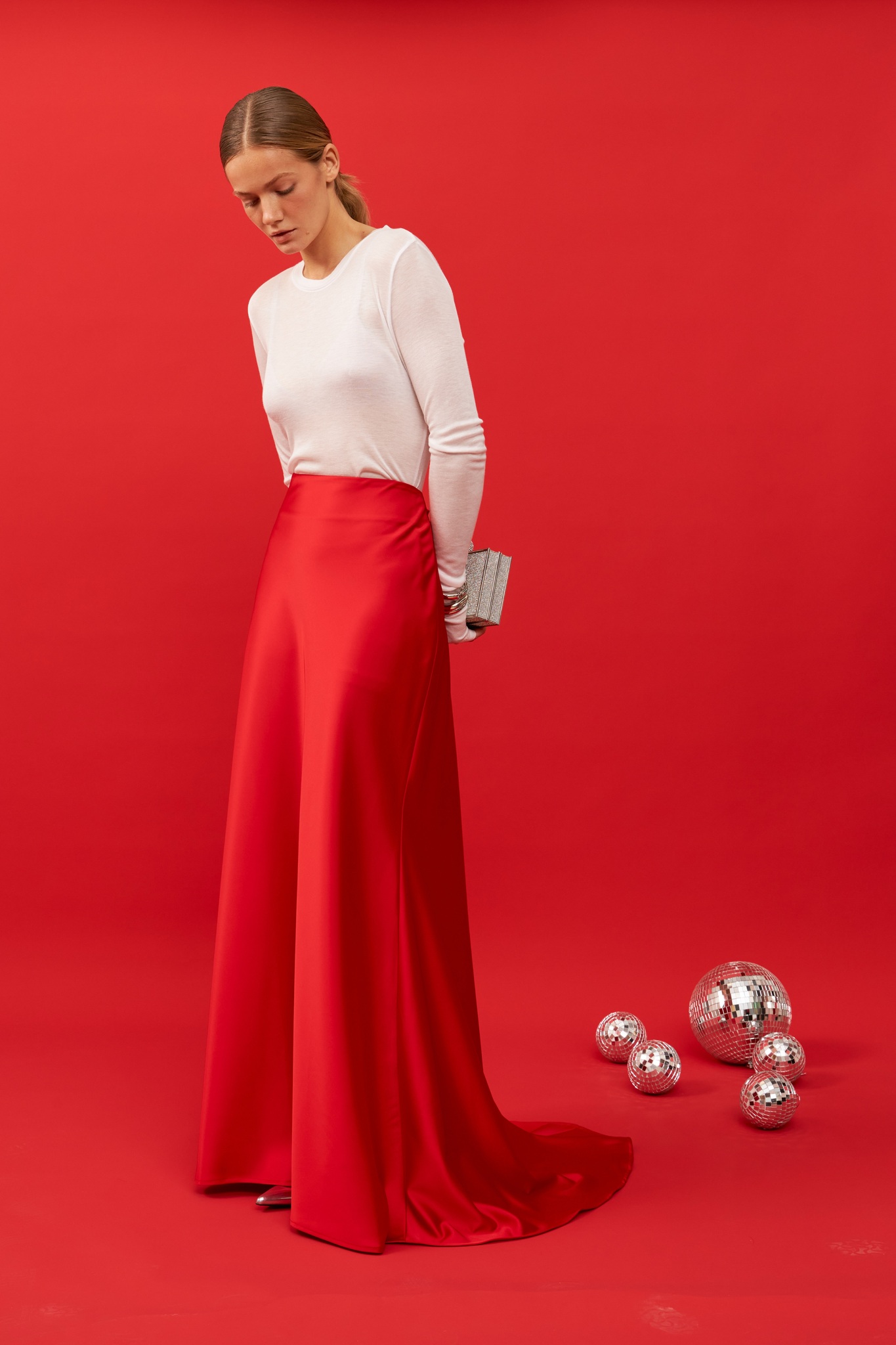 Юбка из благородного, тяжелого, струящегося и немнущегося сатина с роскошным шлейфом.