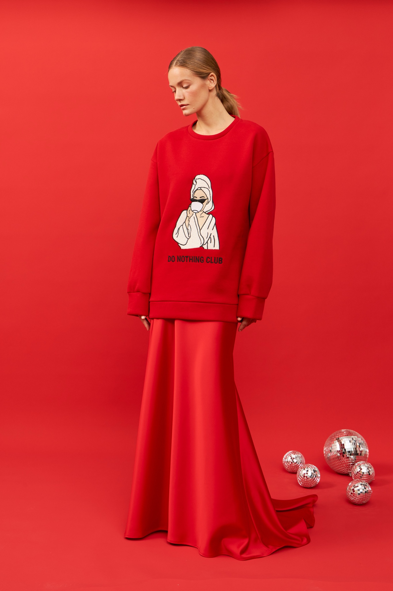Конструкция юбки продумана таким образом, чтобы ходить в ней было комфортно и безопасно за счет грамотного распределения перепада длины спереди и сзади :)