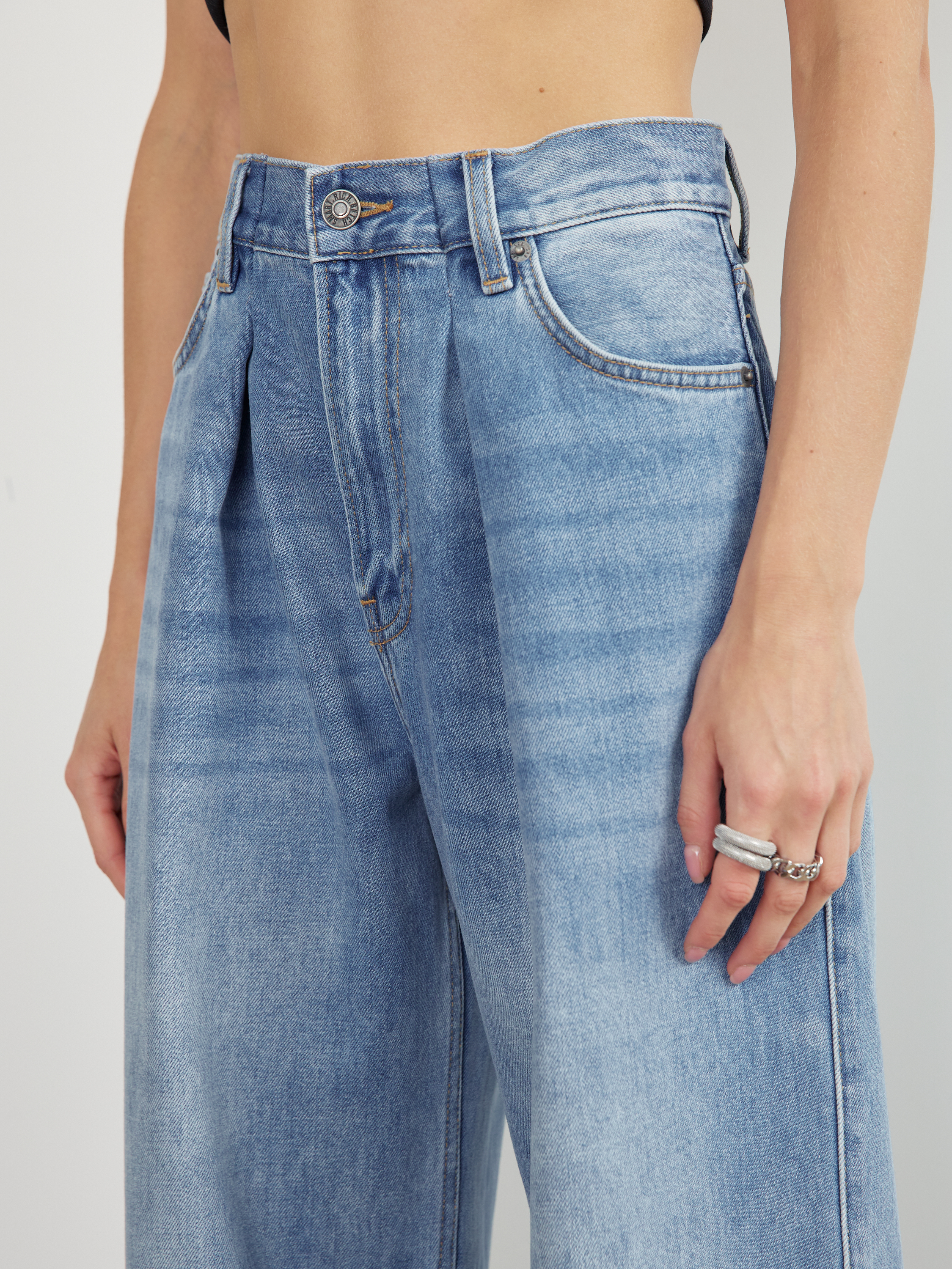 Джинсы SRB предполагают свободную струящуюся посадку от талии.