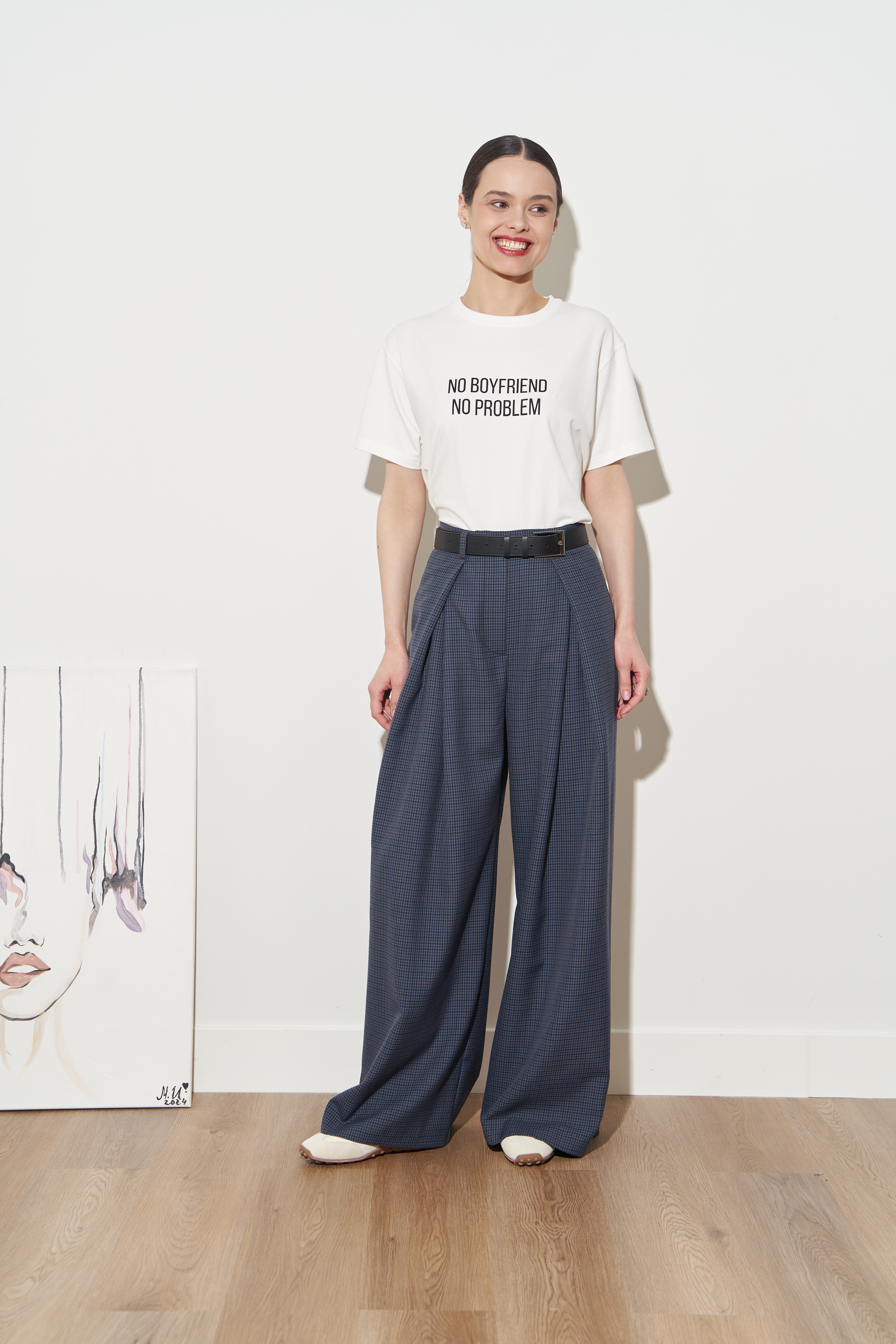 Благодаря специальному крою защипов в брюки можно незаметно и комфортно заправить любой верх.