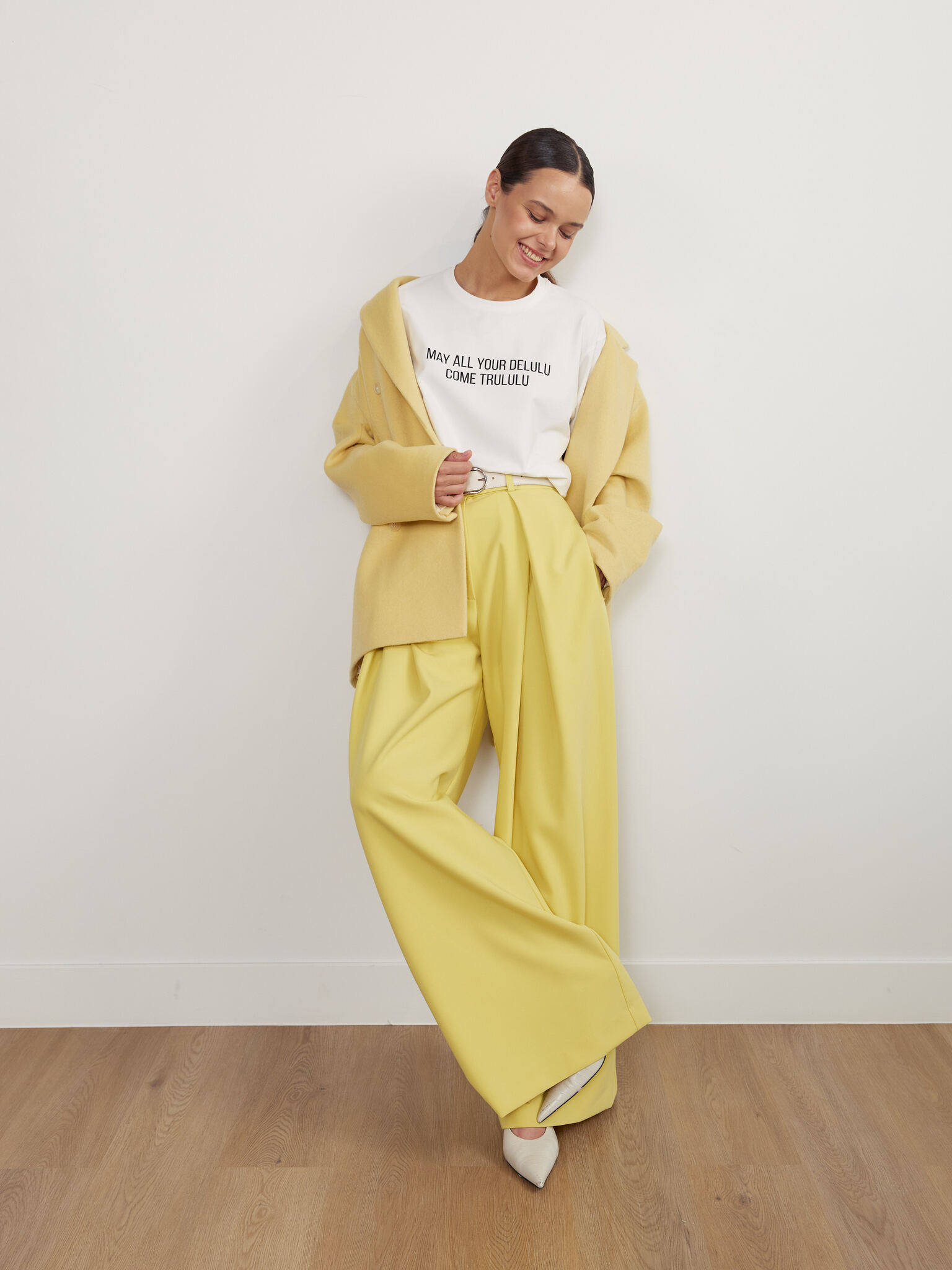 Базовая футболка сшита из нежнейшего, супермягкого премиального натурального хлопка с добавлением модала, благодаря чему футболка буквально умеет обниматься и дарить нежную-нежность!