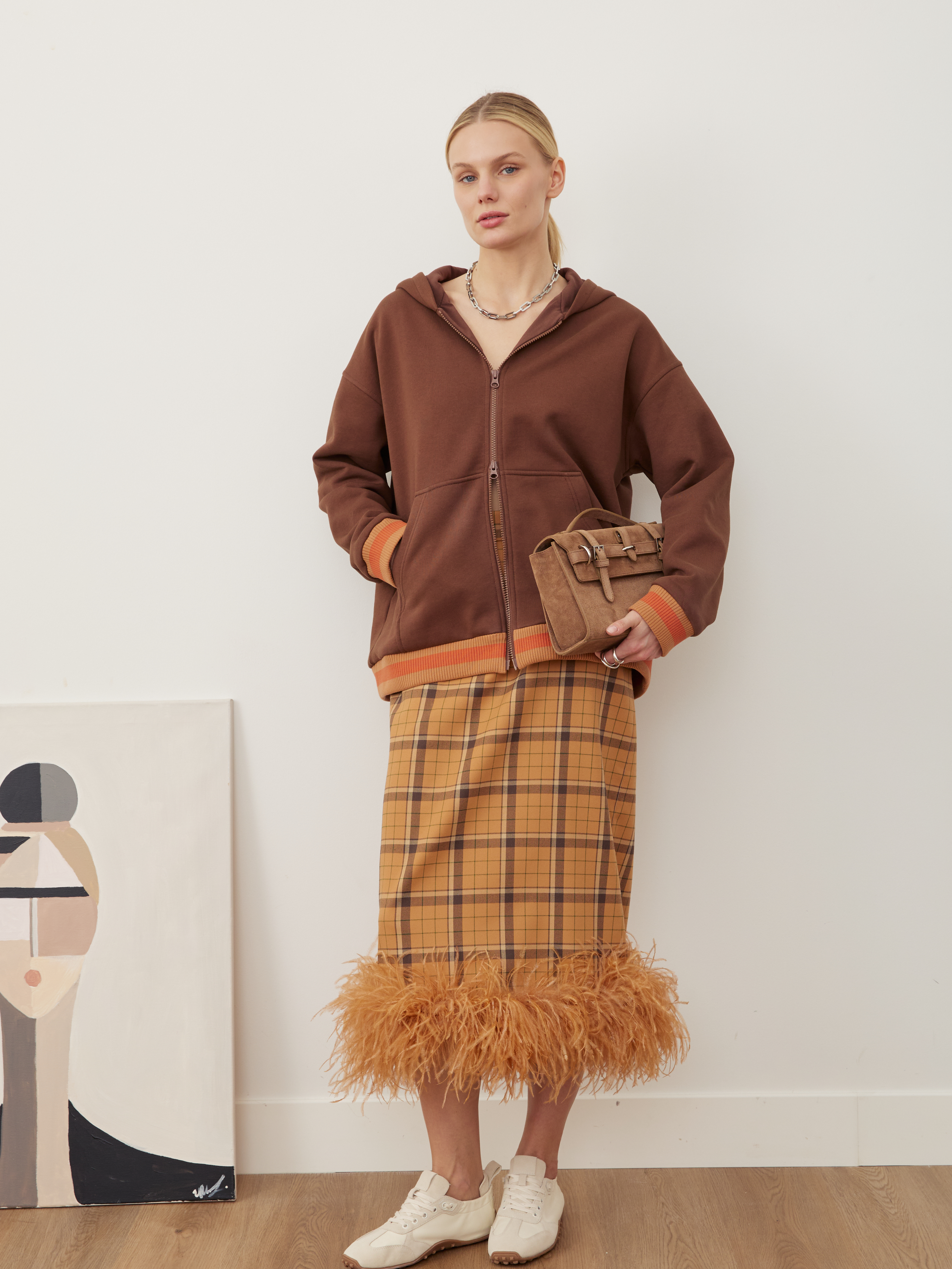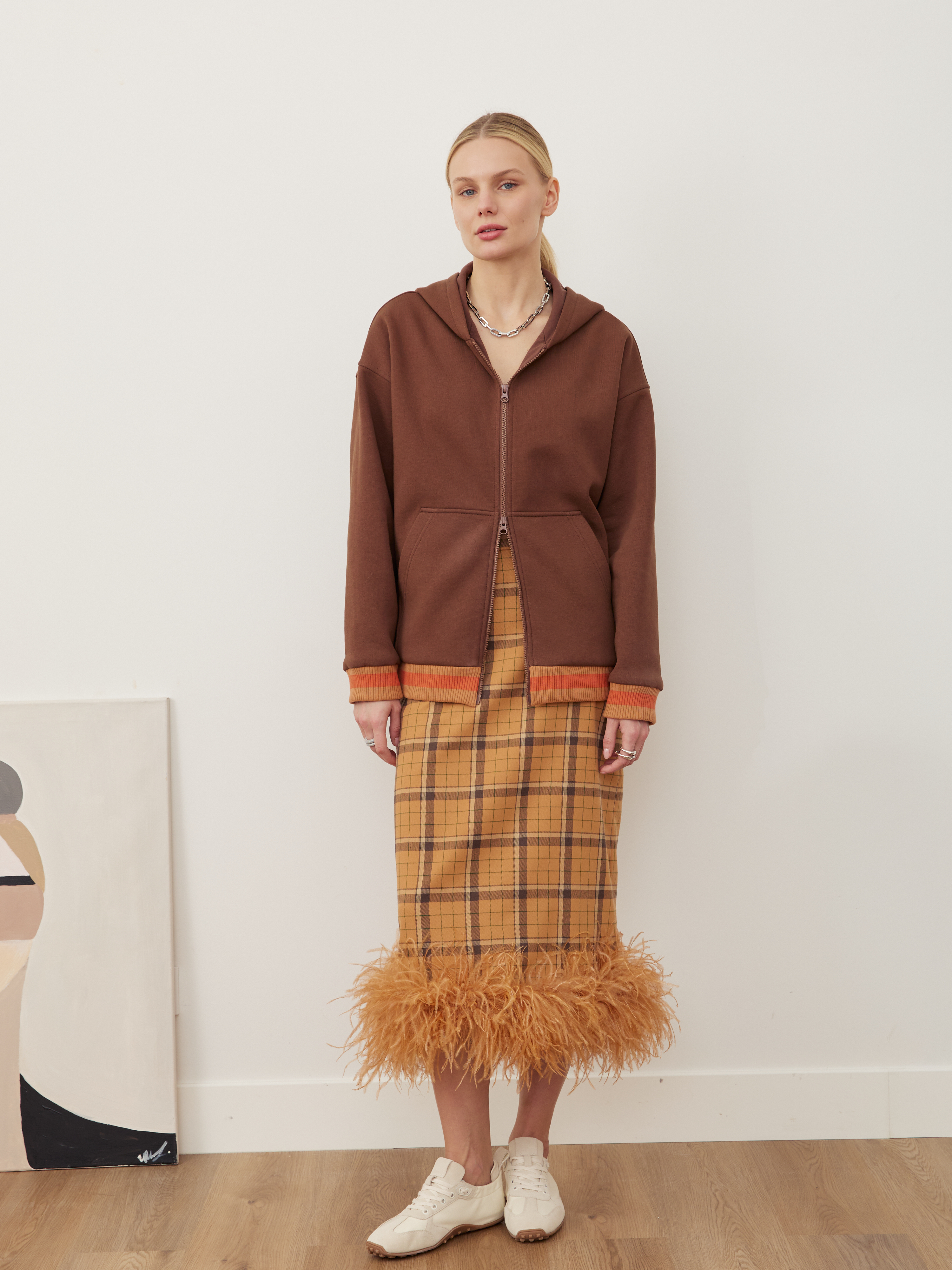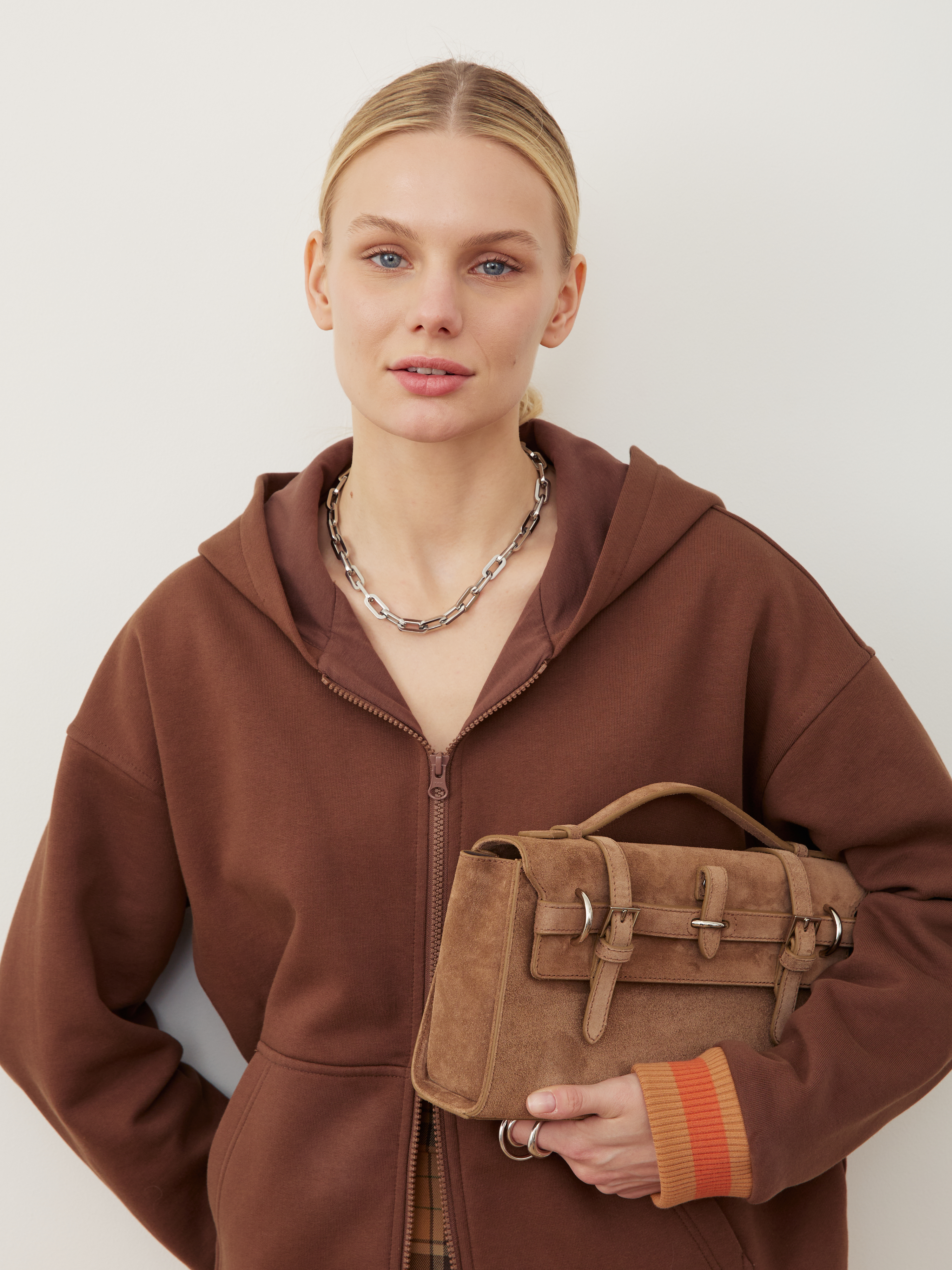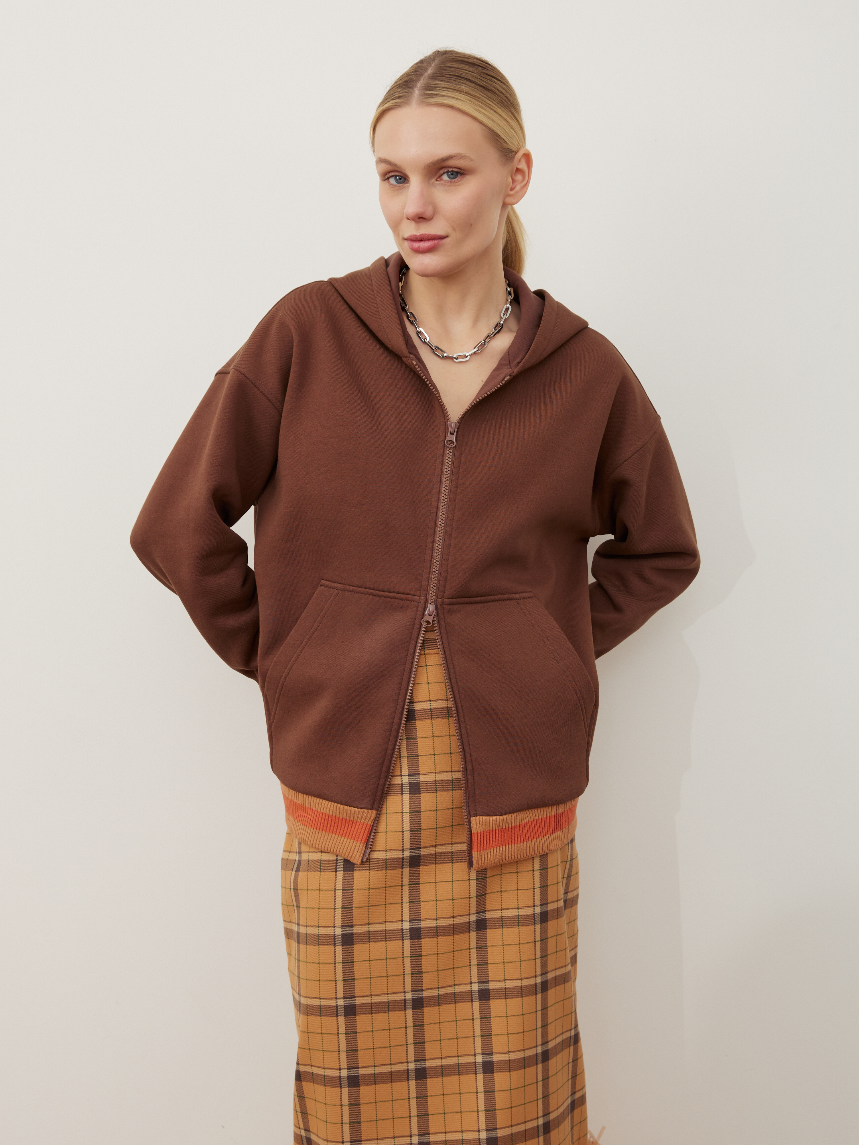 У олимпийки тонкая подкладка с натуральным составом, благодаря чему изнанка футера будет всегда выглядеть аккуратно.