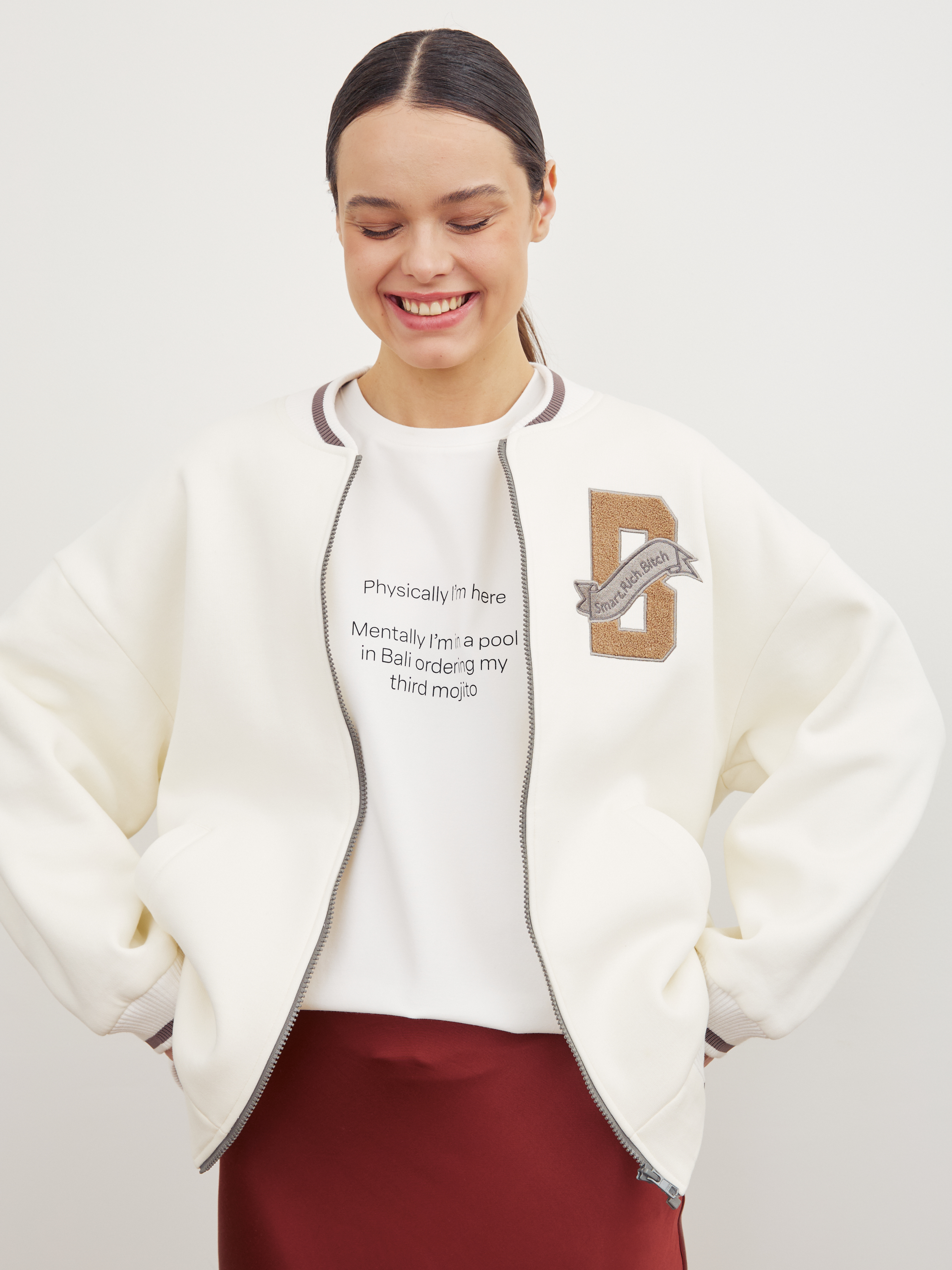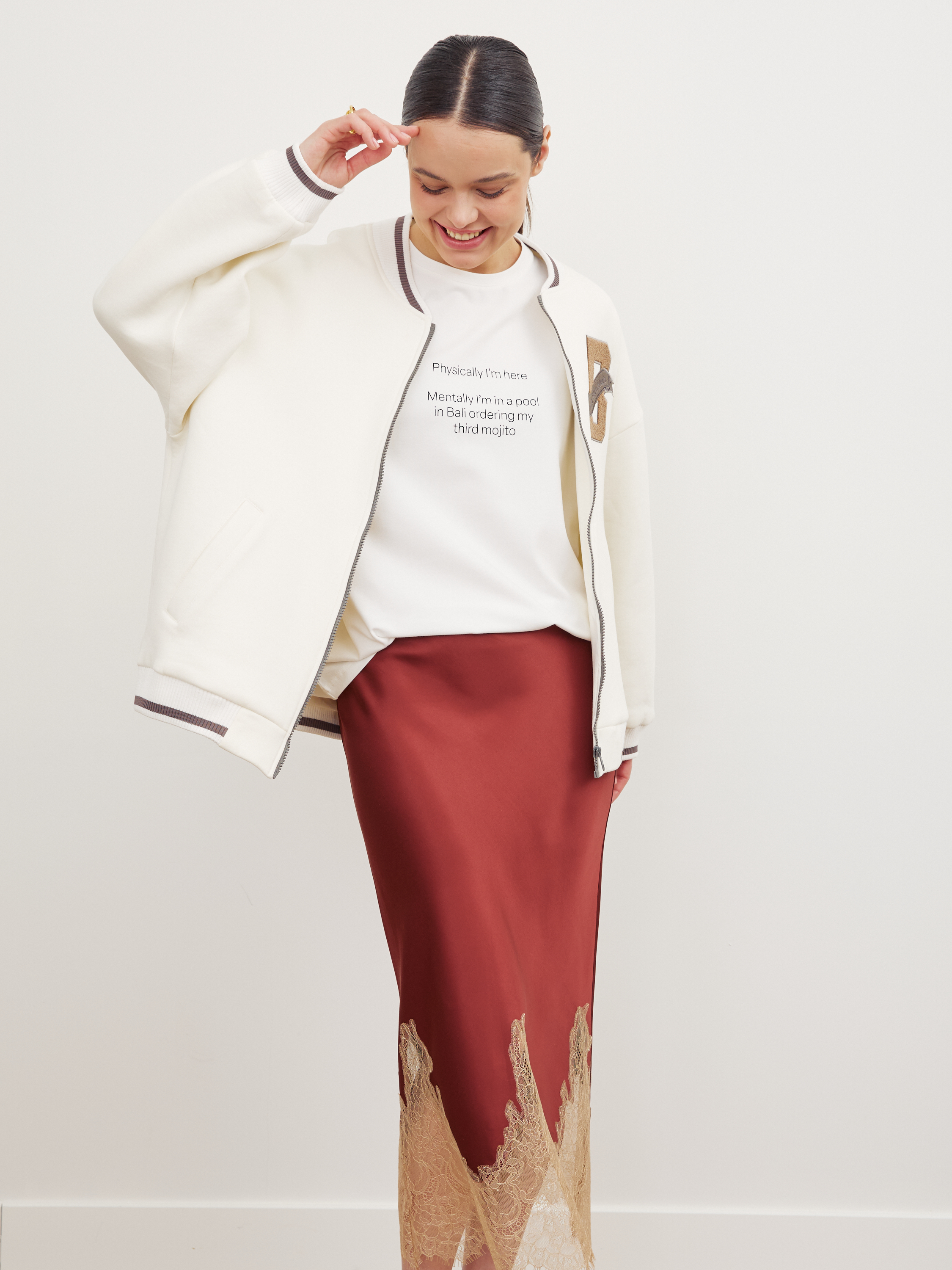 А также можете дополнить бомбером нарядную юбку или брюки🔥