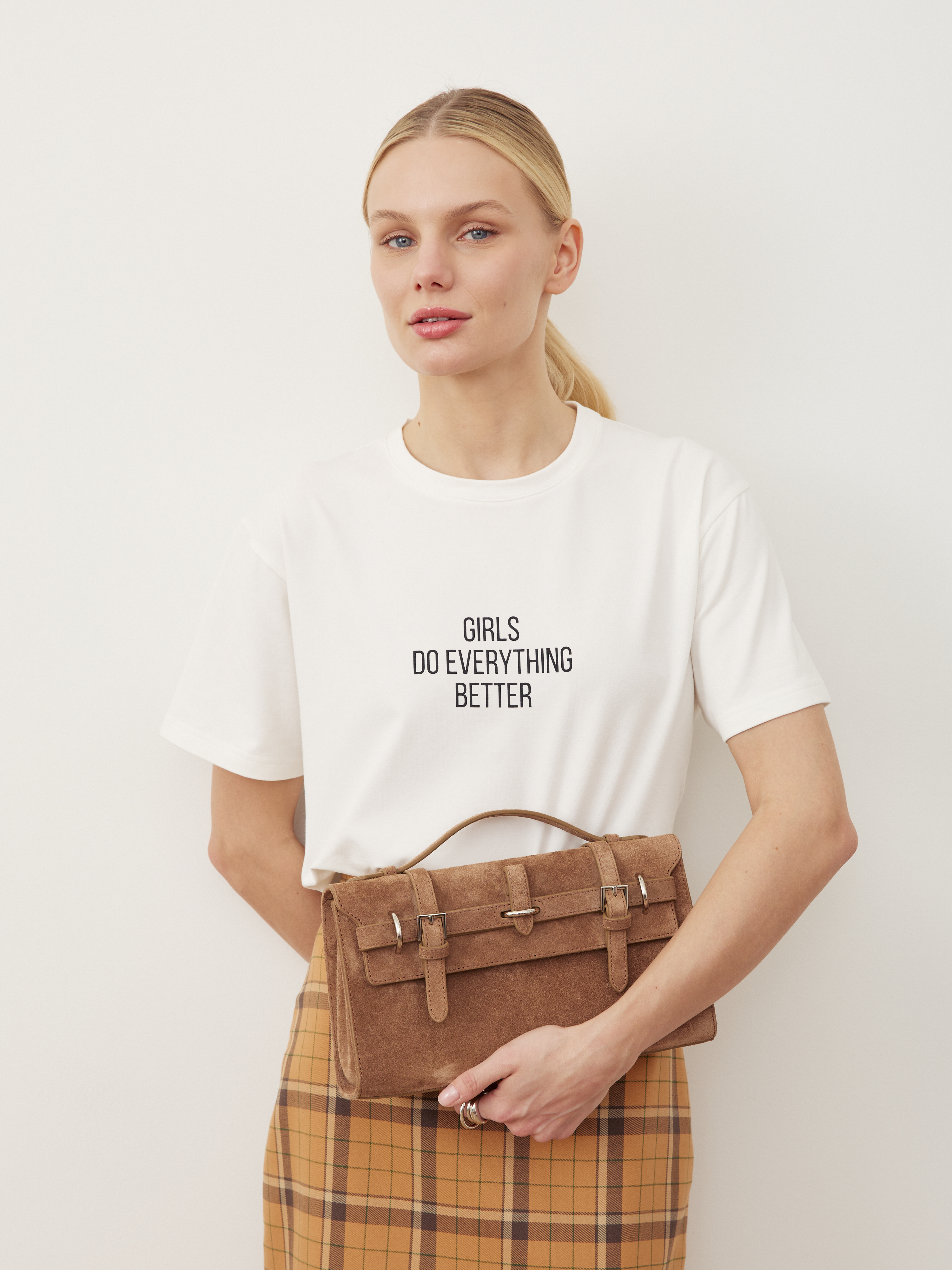 Базовая футболка сшита из нежнейшего, супермягкого премиального натурального хлопка с добавлением модала, благодаря чему футболка буквально умеет обниматься и дарить нежную-нежность!