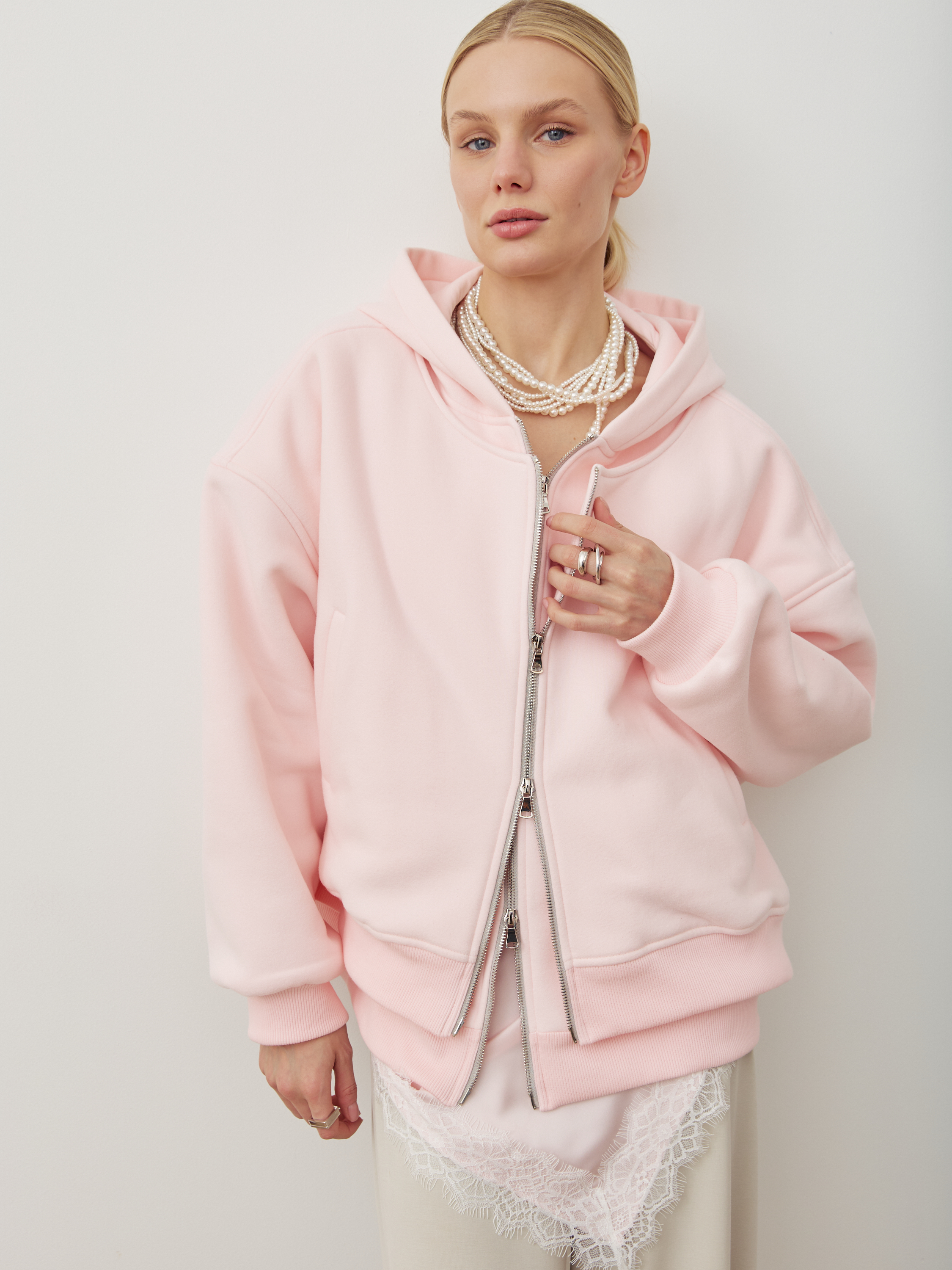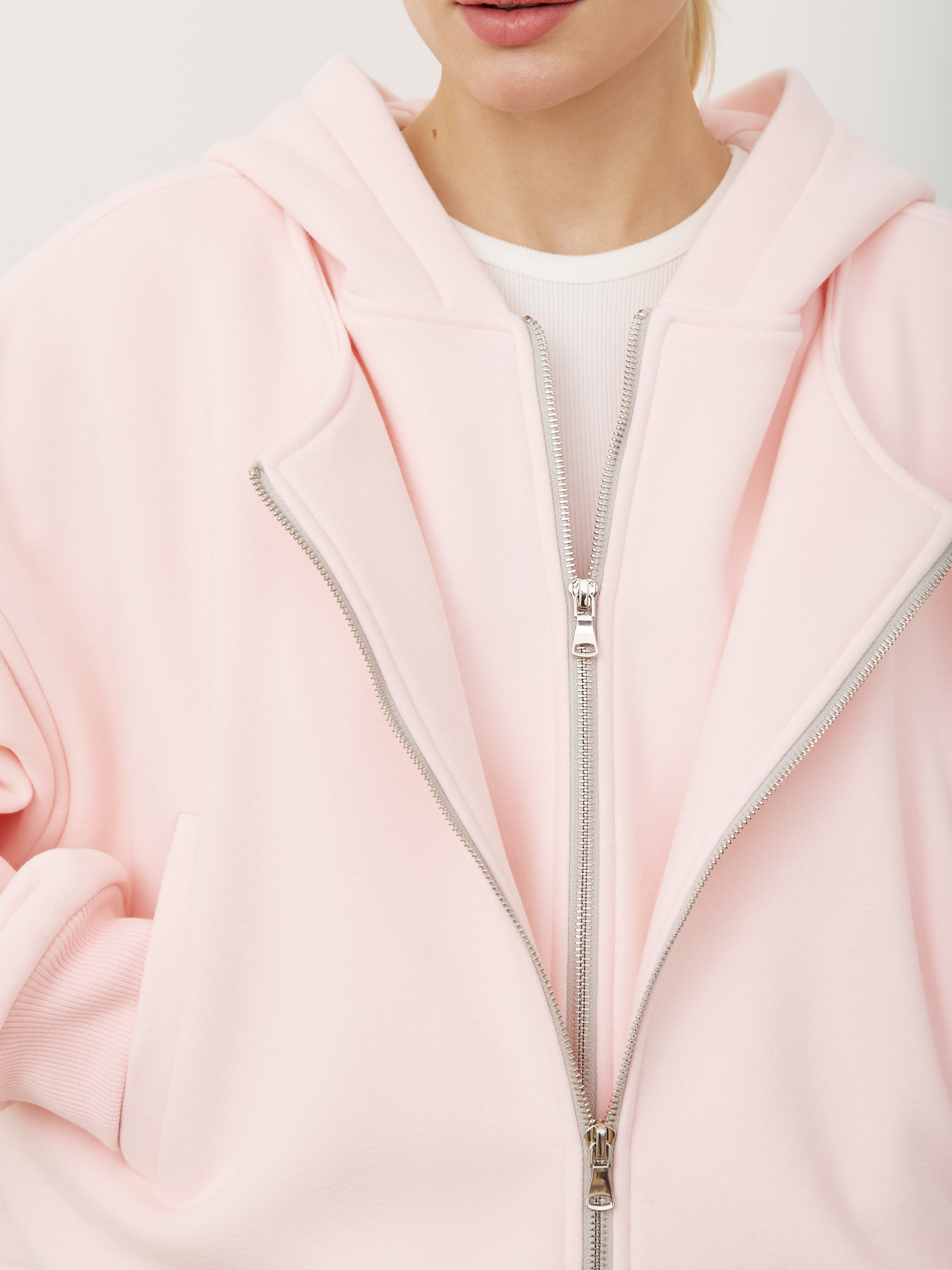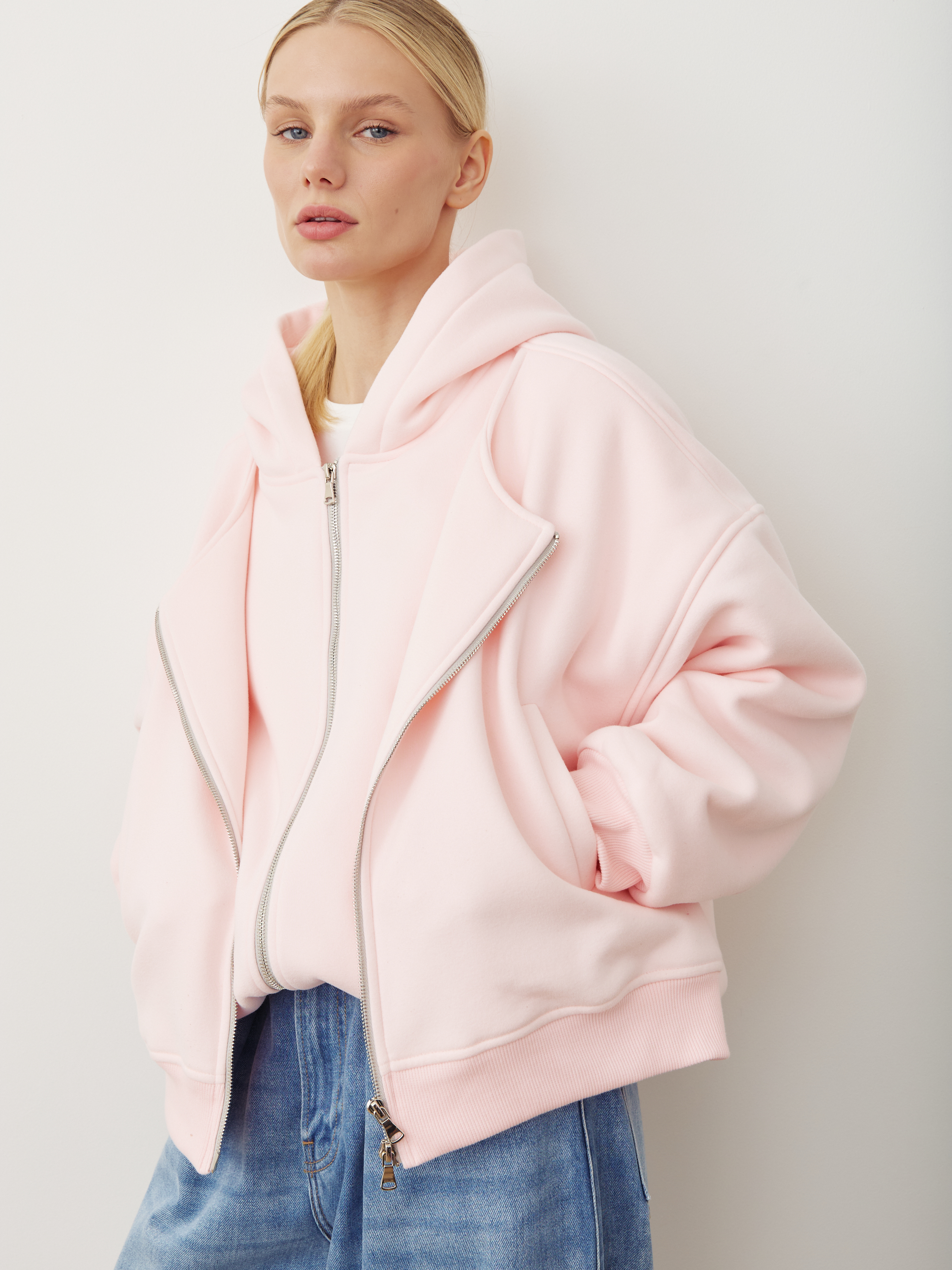 Передняя полочка куртки – двойная, а молнию можно расстегивать разными способами, создавая самые разные образы и варианты стилизации.