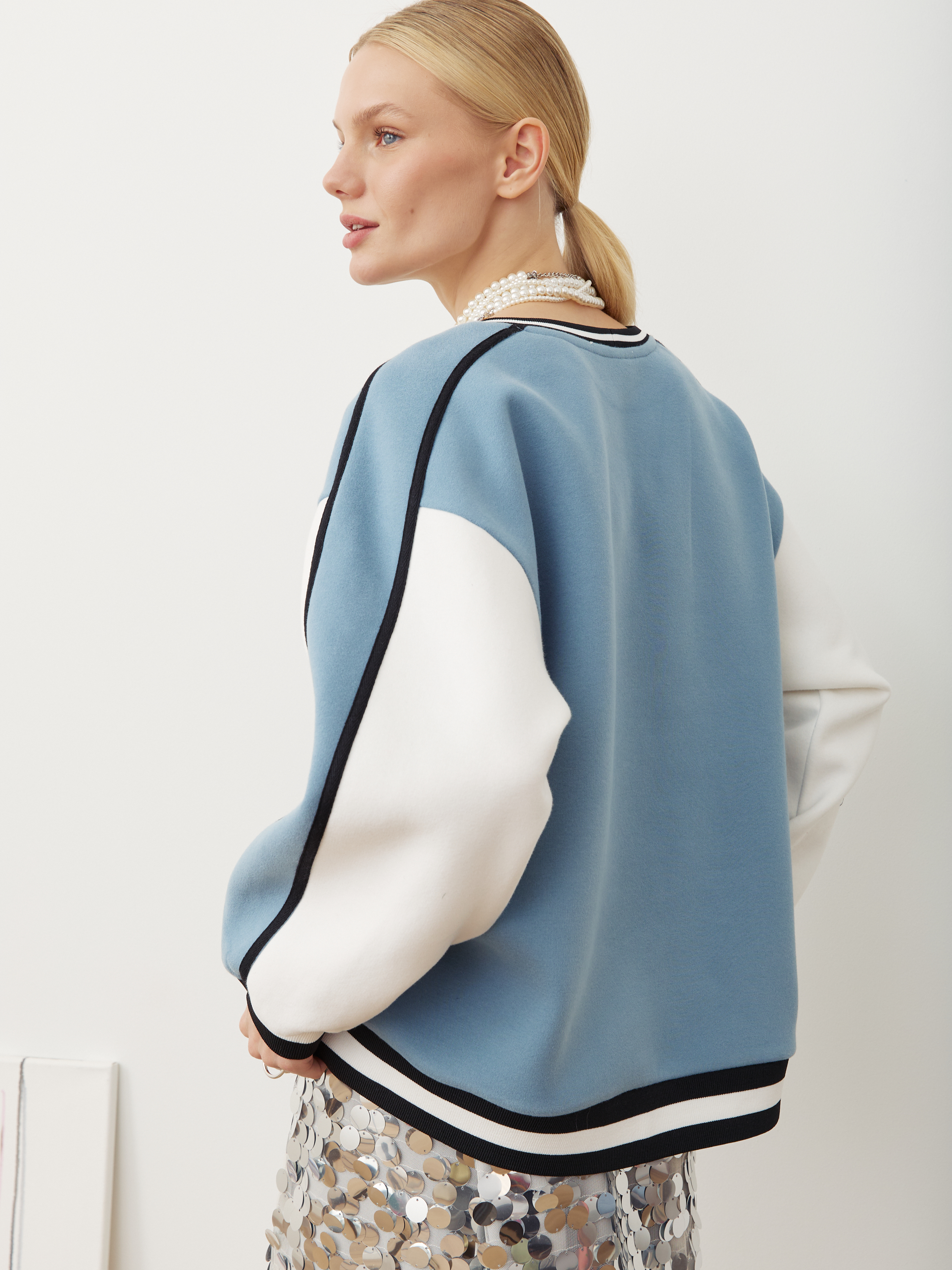 Длина свитшота: XS – 71 см, S – 72 см, M – 73 см, L – 74 см, XL – 75 см.
