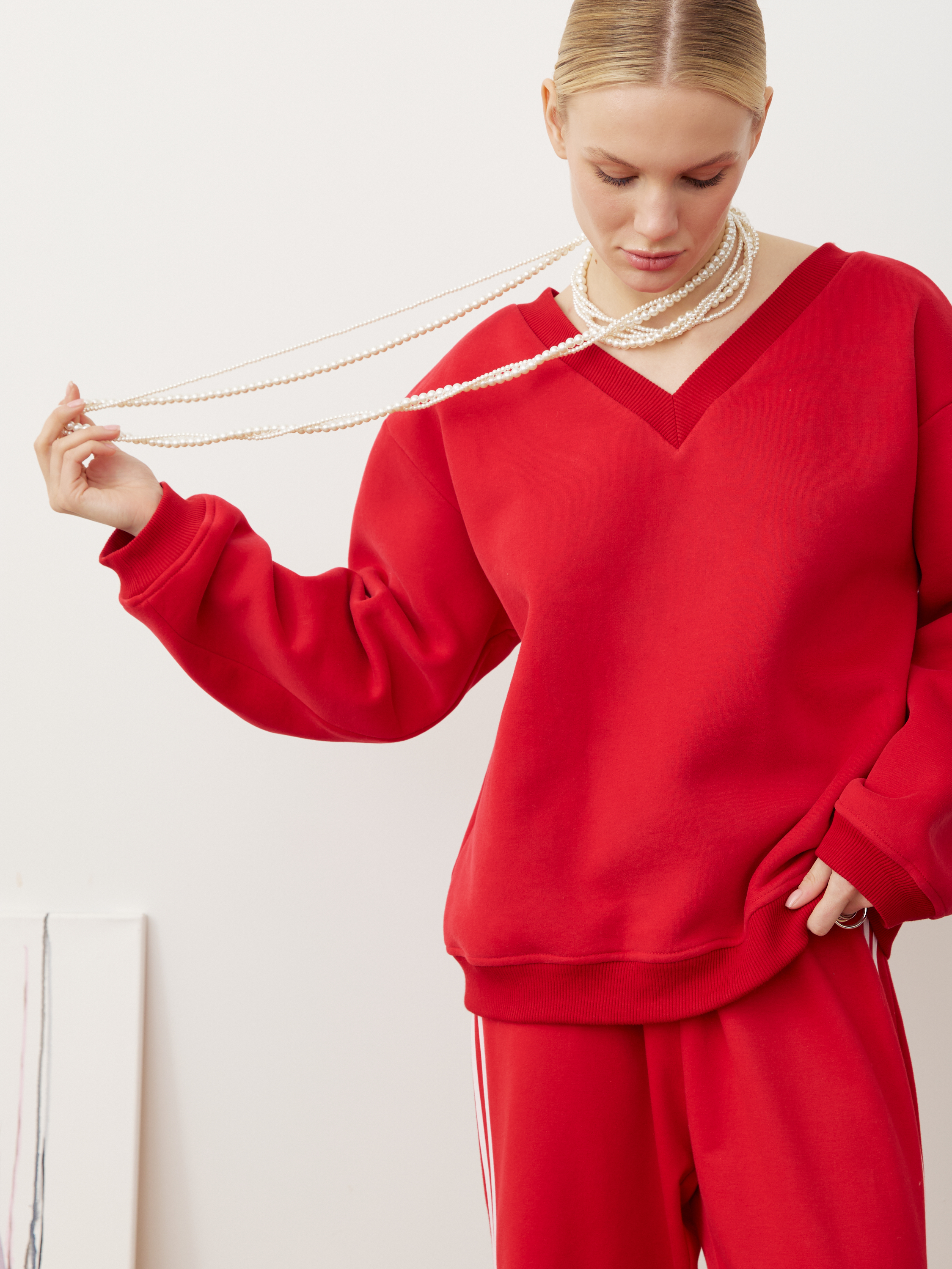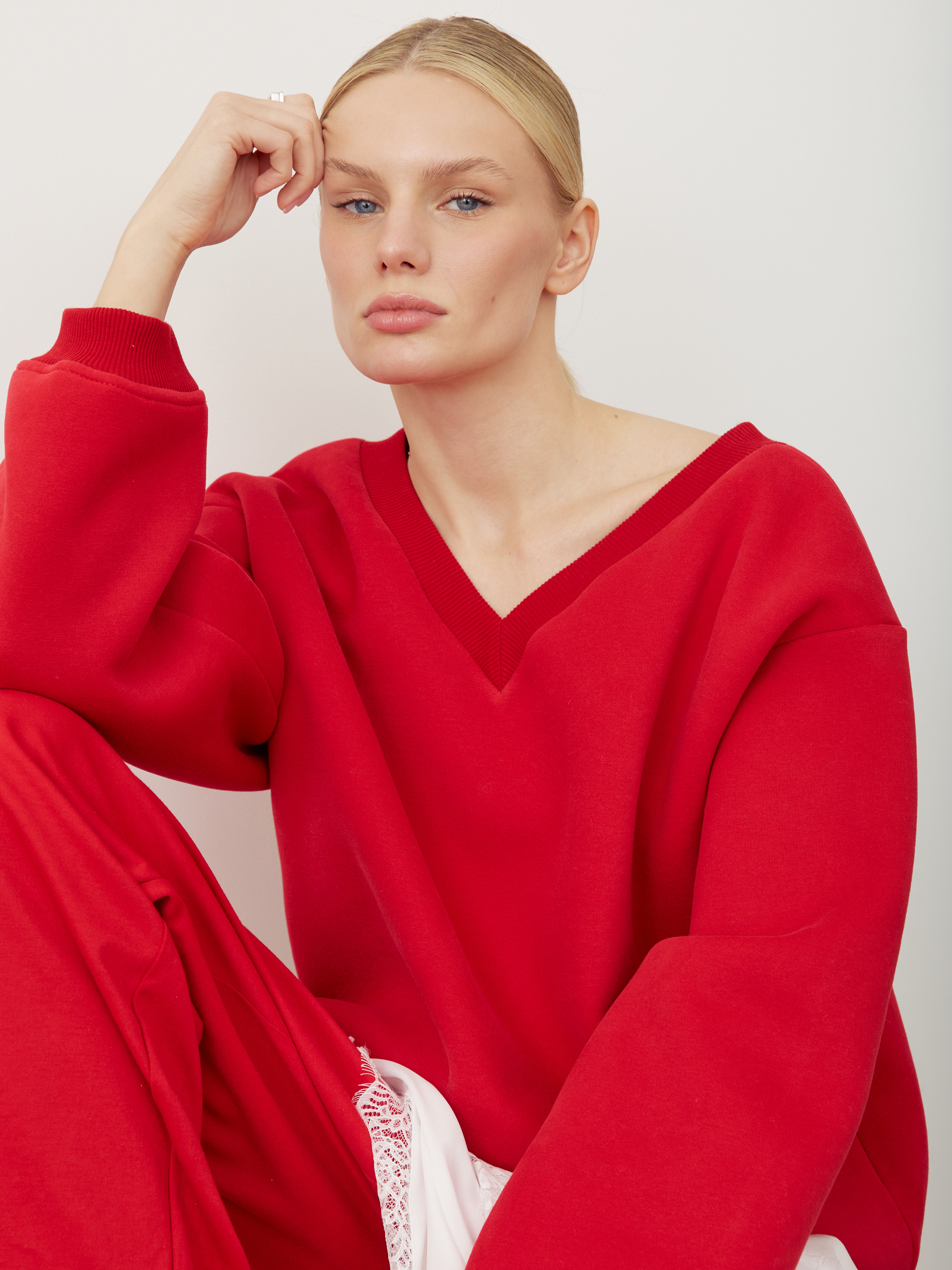 СВИТШОТ С V-ВЫРЕЗОМ КРАСНЫЙ
