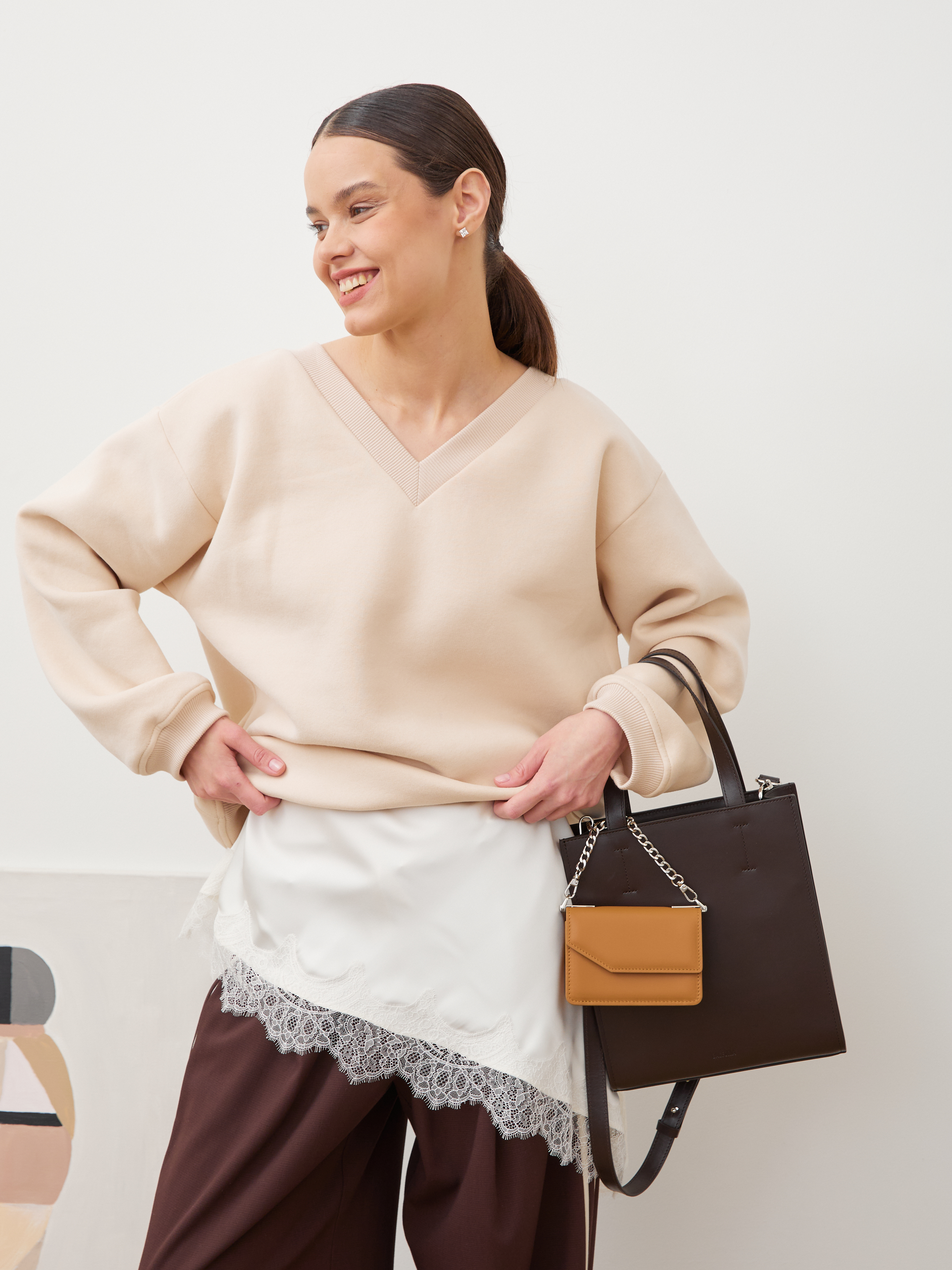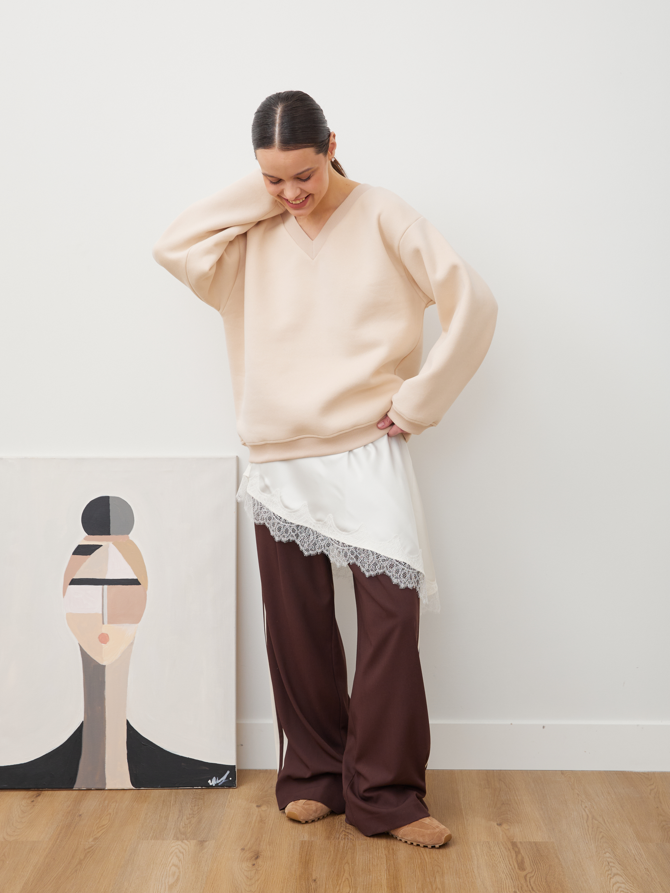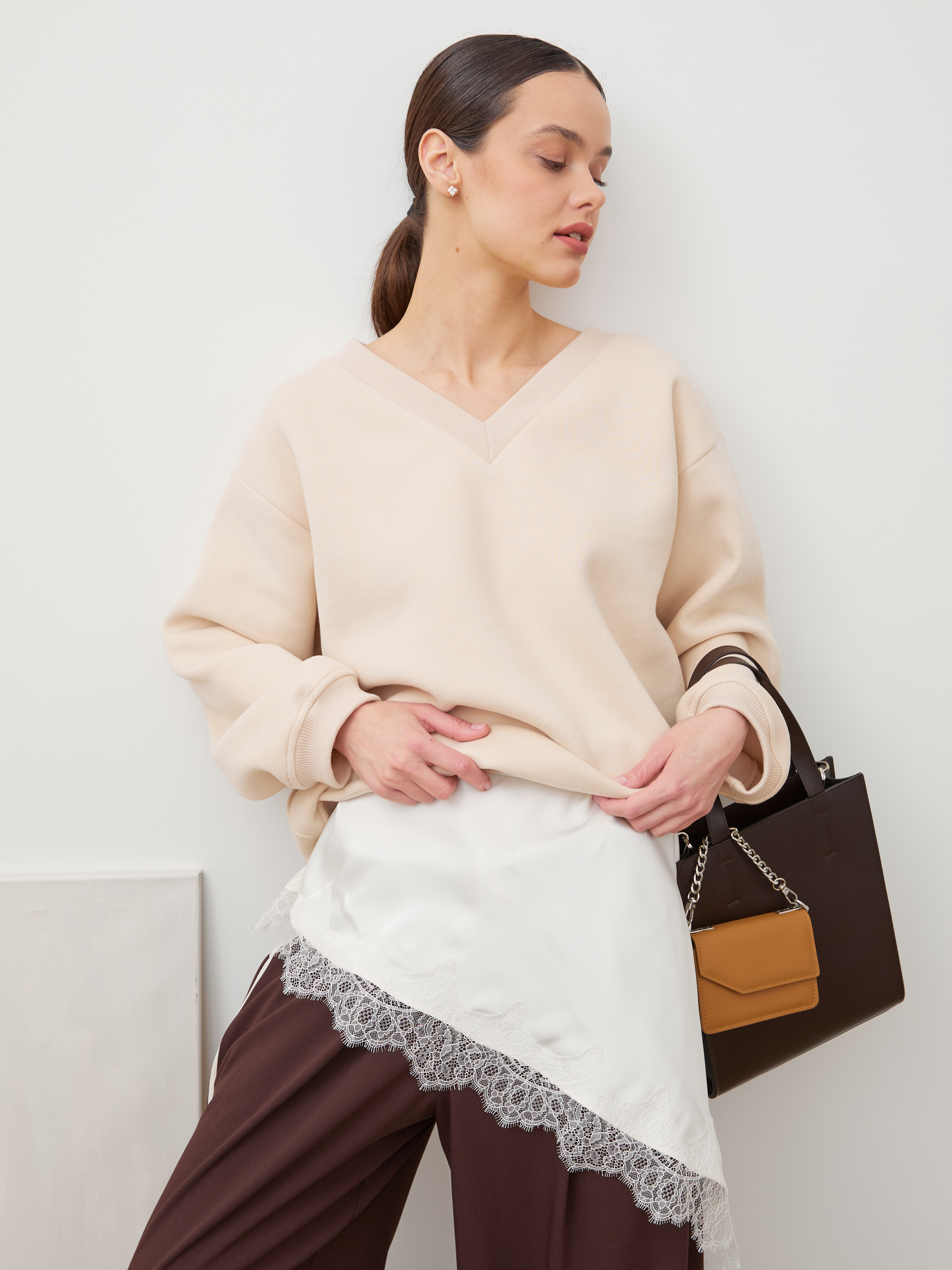 СВИТШОТ С V-ВЫРЕЗОМ КРЕМ-БРЮЛЕ