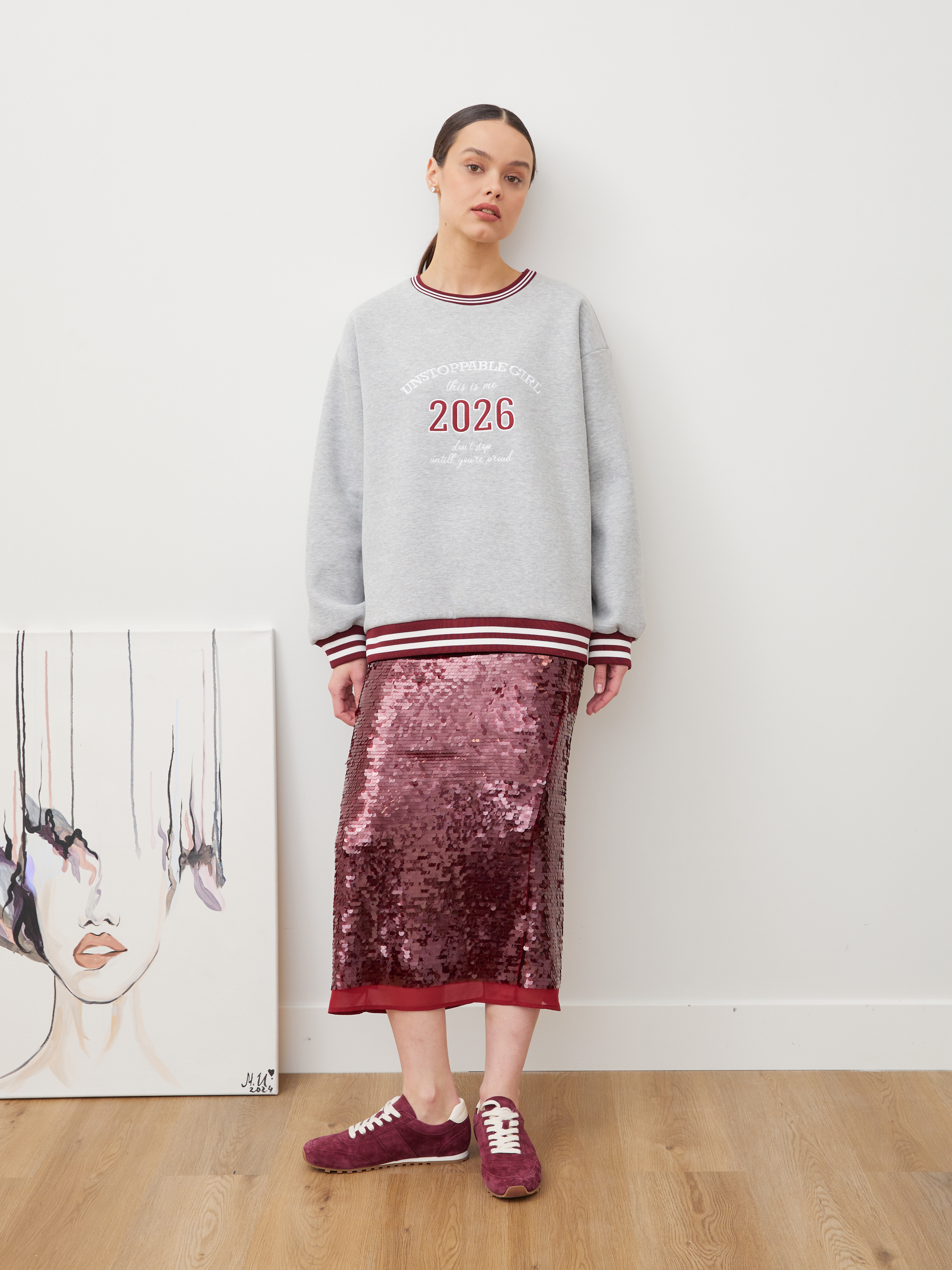 Длина свитшота: XS – 62 см, S – 64 см, M – 64 см, L – 64 см, XL – 65 см.