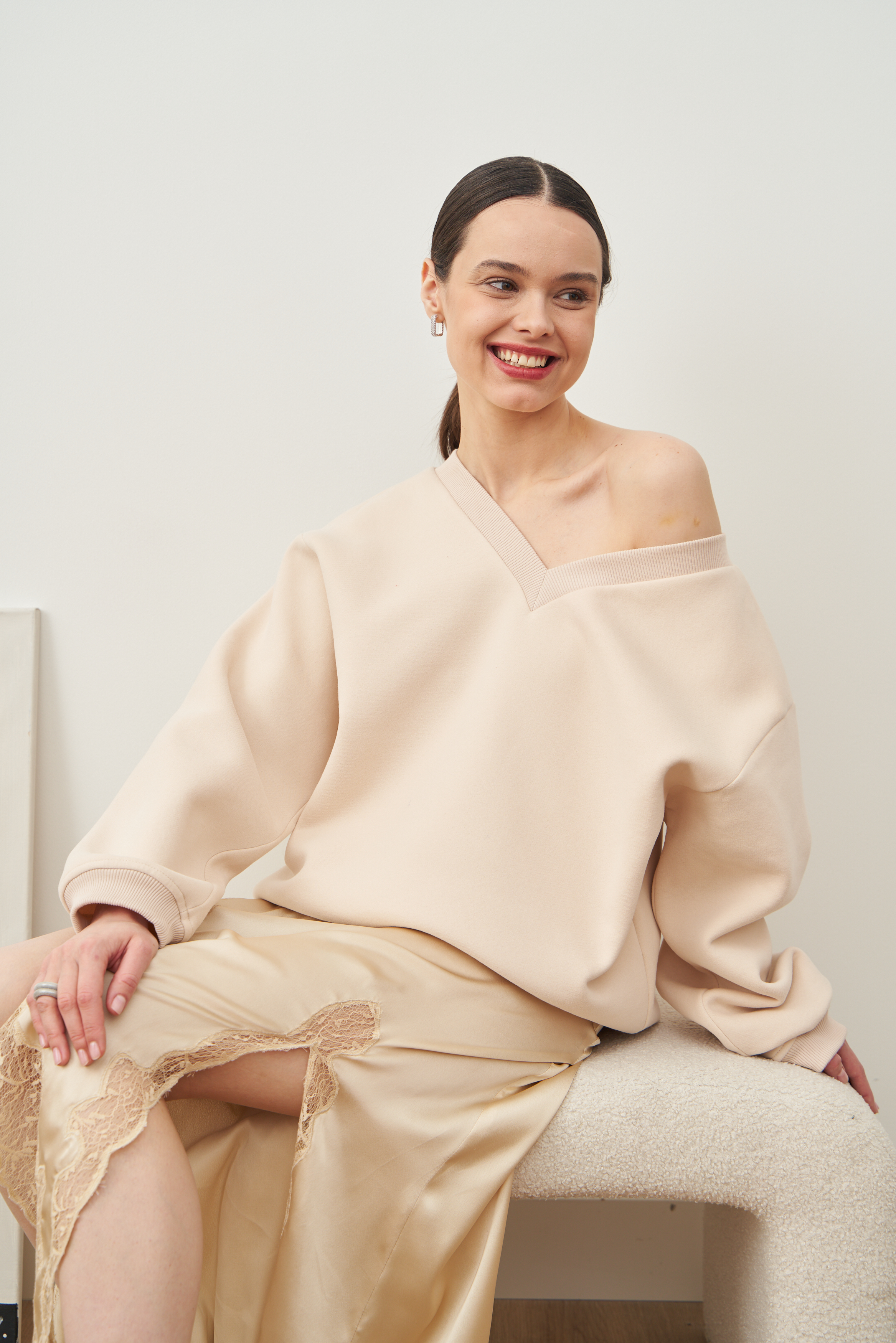 Длина свитшота: XS – 65 см, S – 65 см, M – 66 см, L – 67 см, XL – 68 см.
