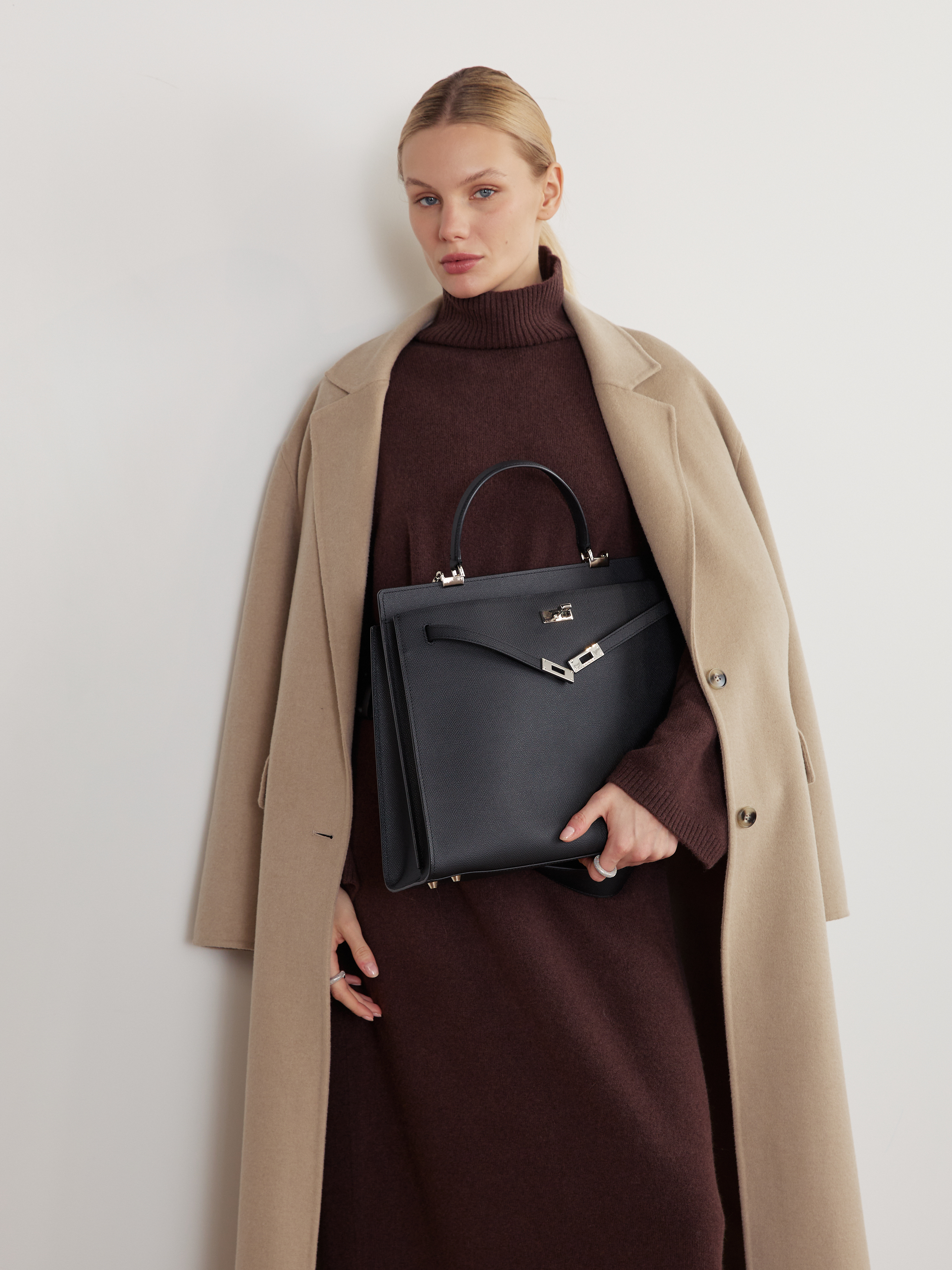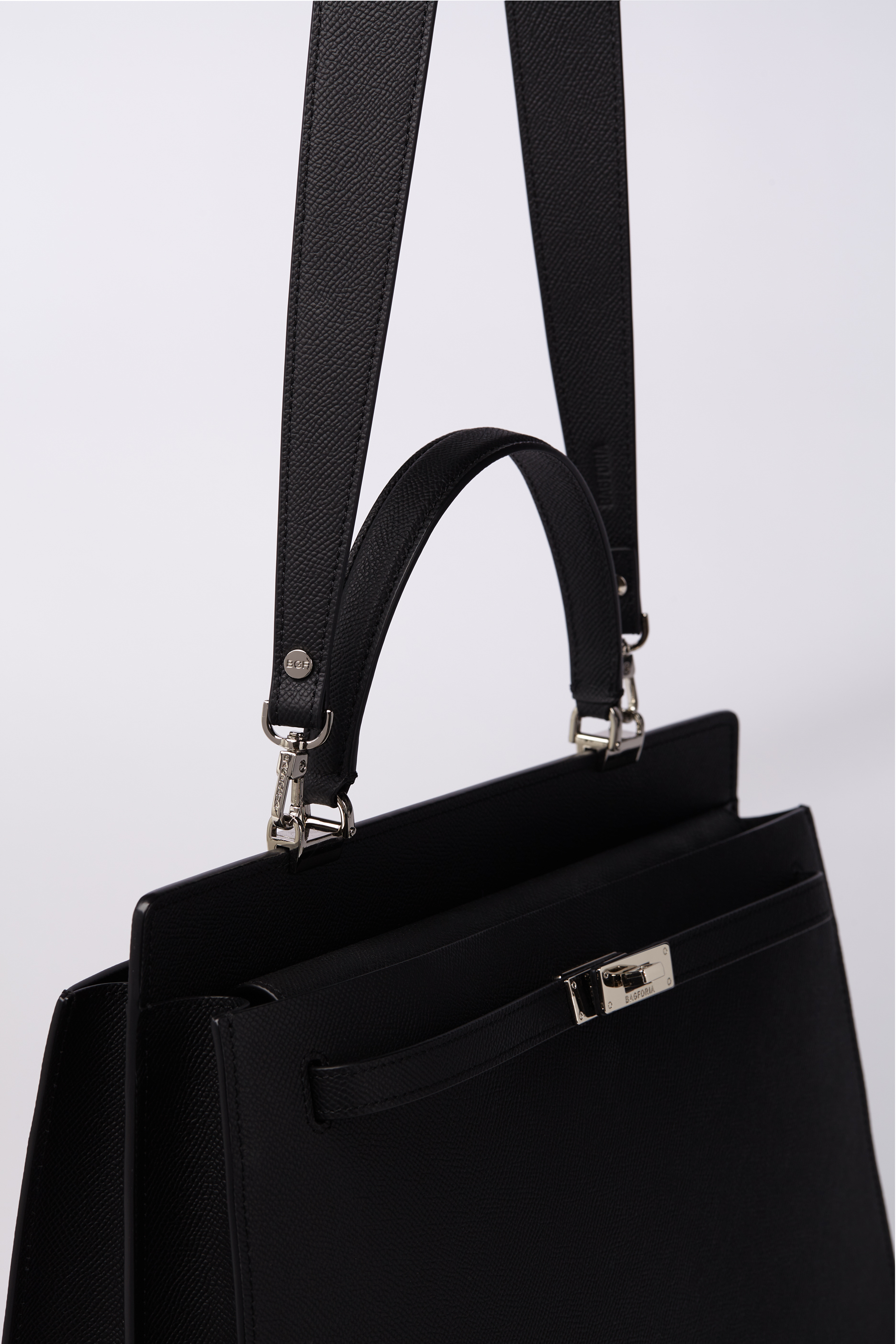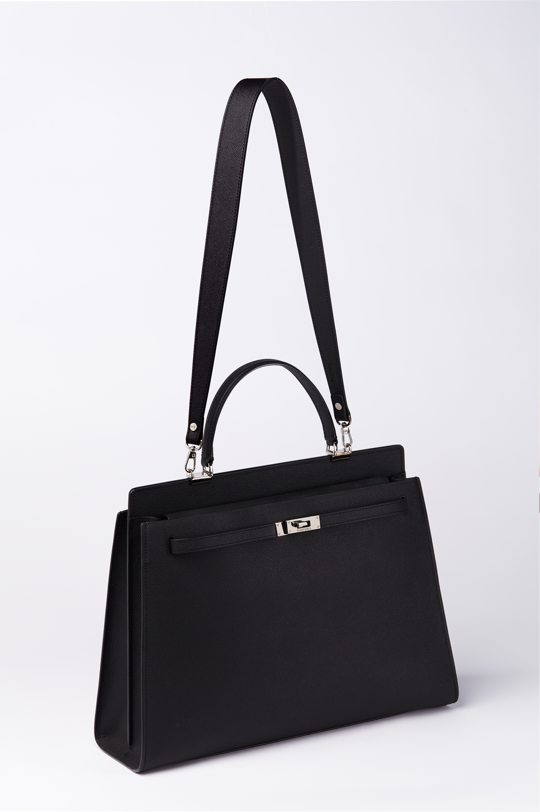 Сумка выполнена из кожи с тиснением эпсом, что делает ее поверхность устойчивой к царапинам.