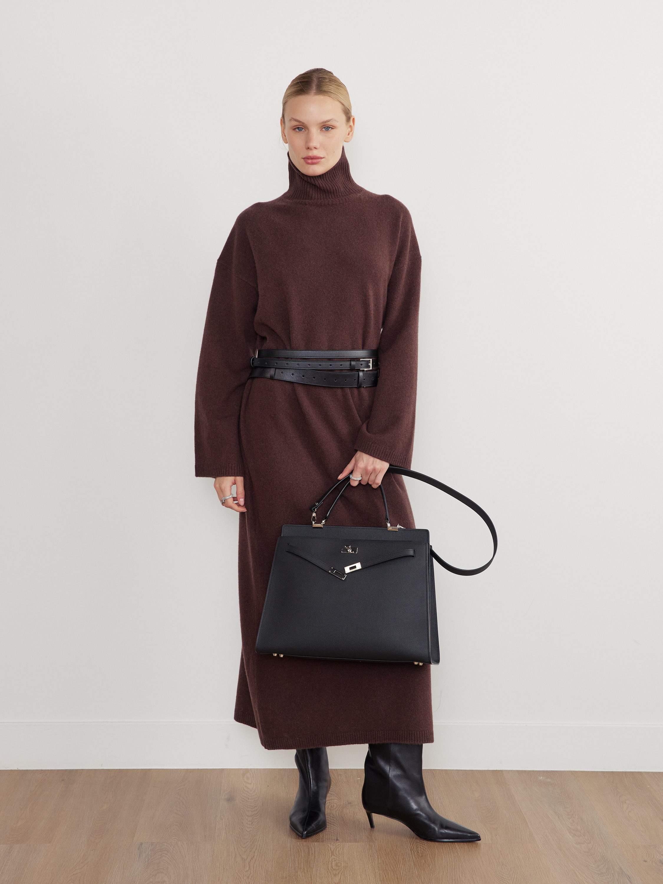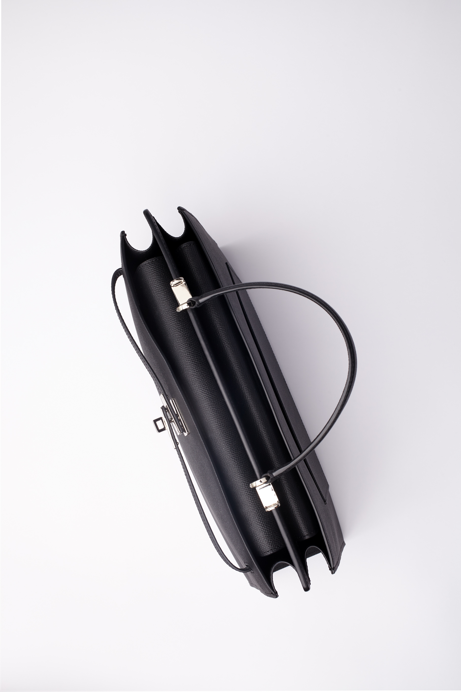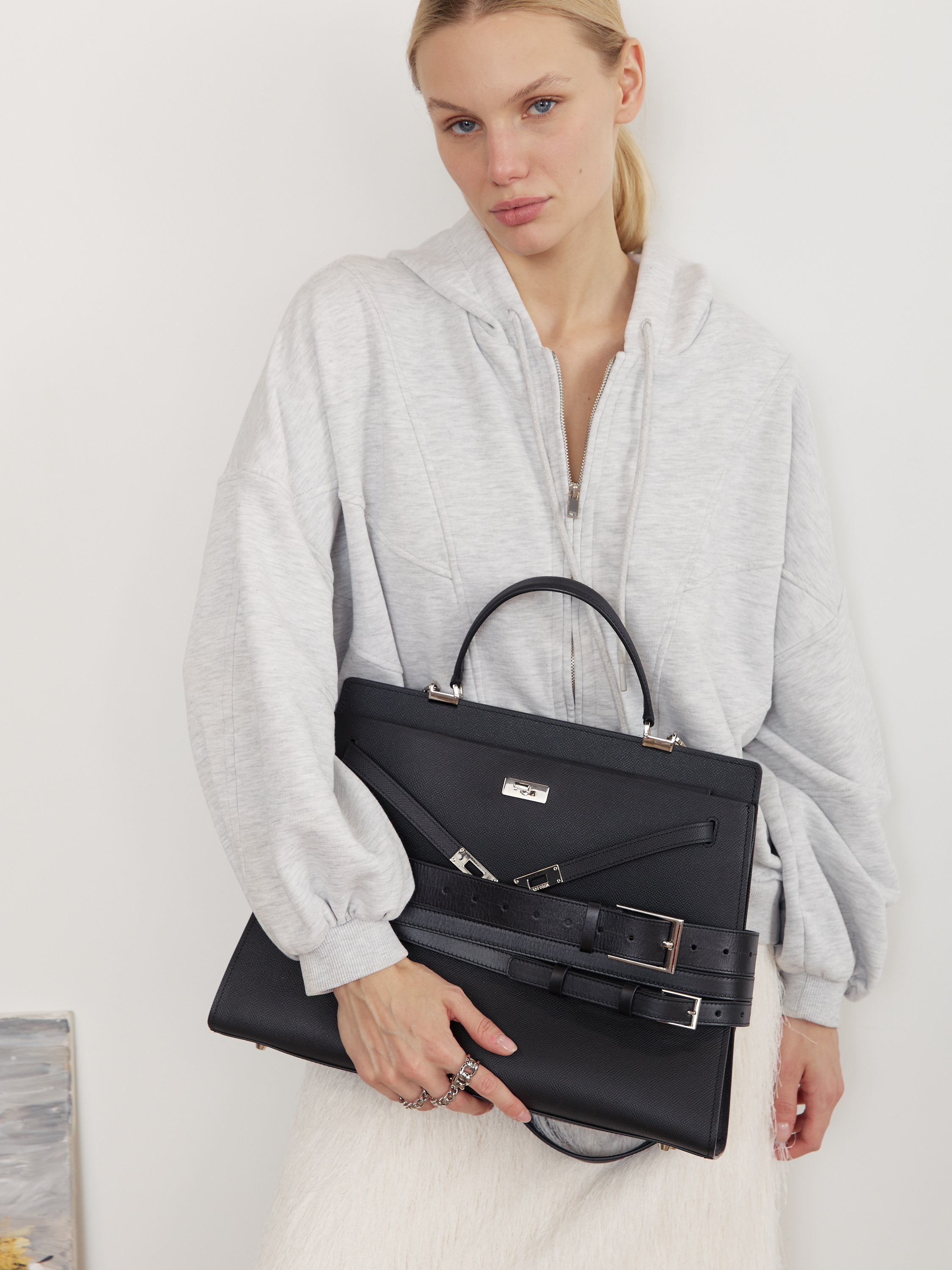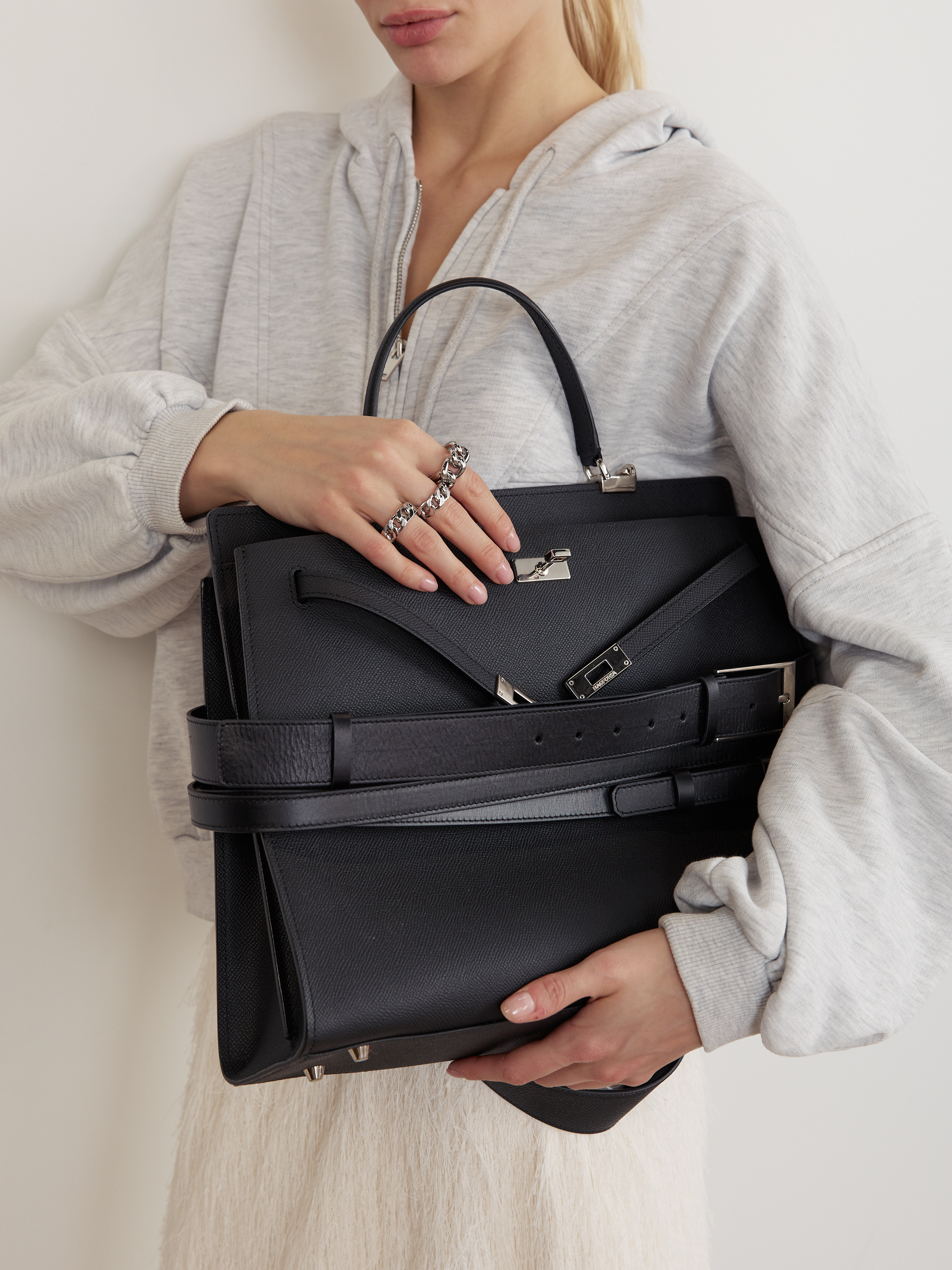 Сумка выполнена из кожи с тиснением эпсом, что делает ее поверхность устойчивой к царапинам.
