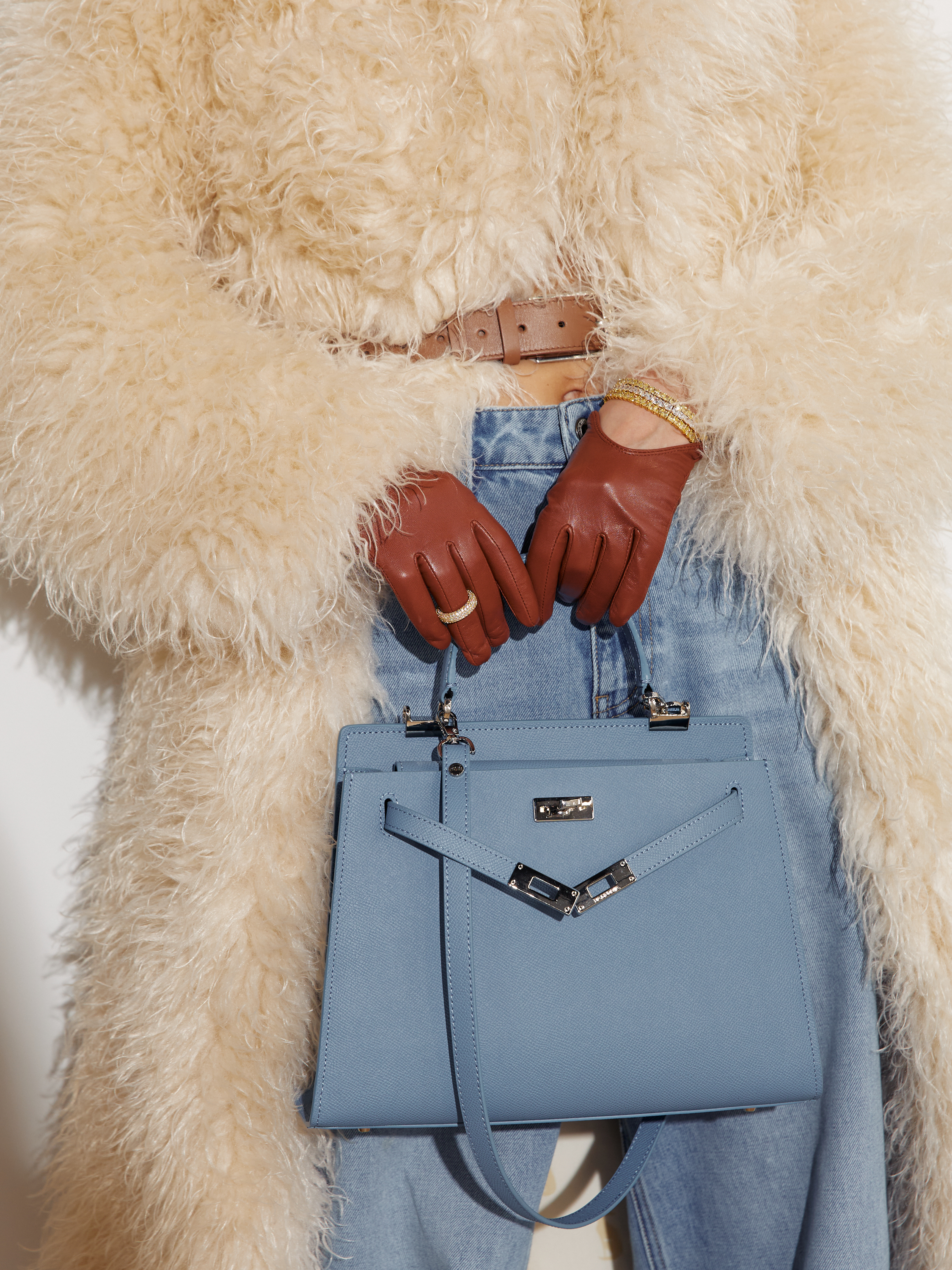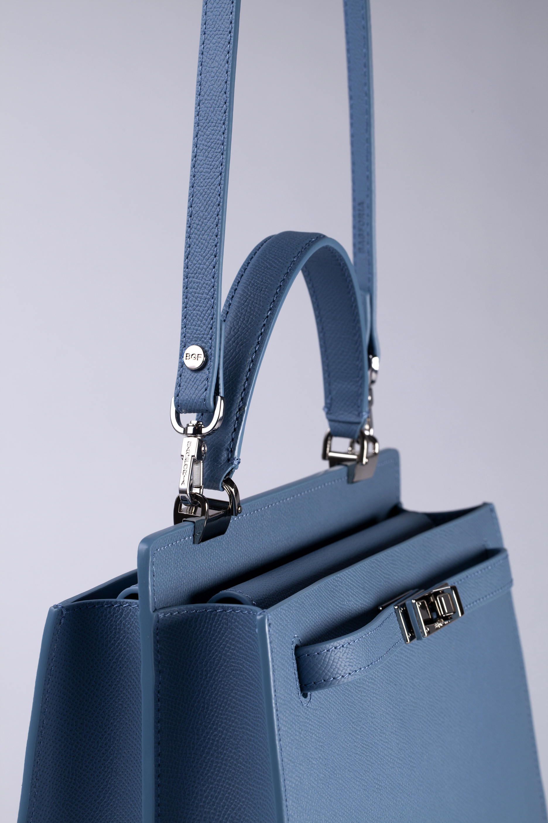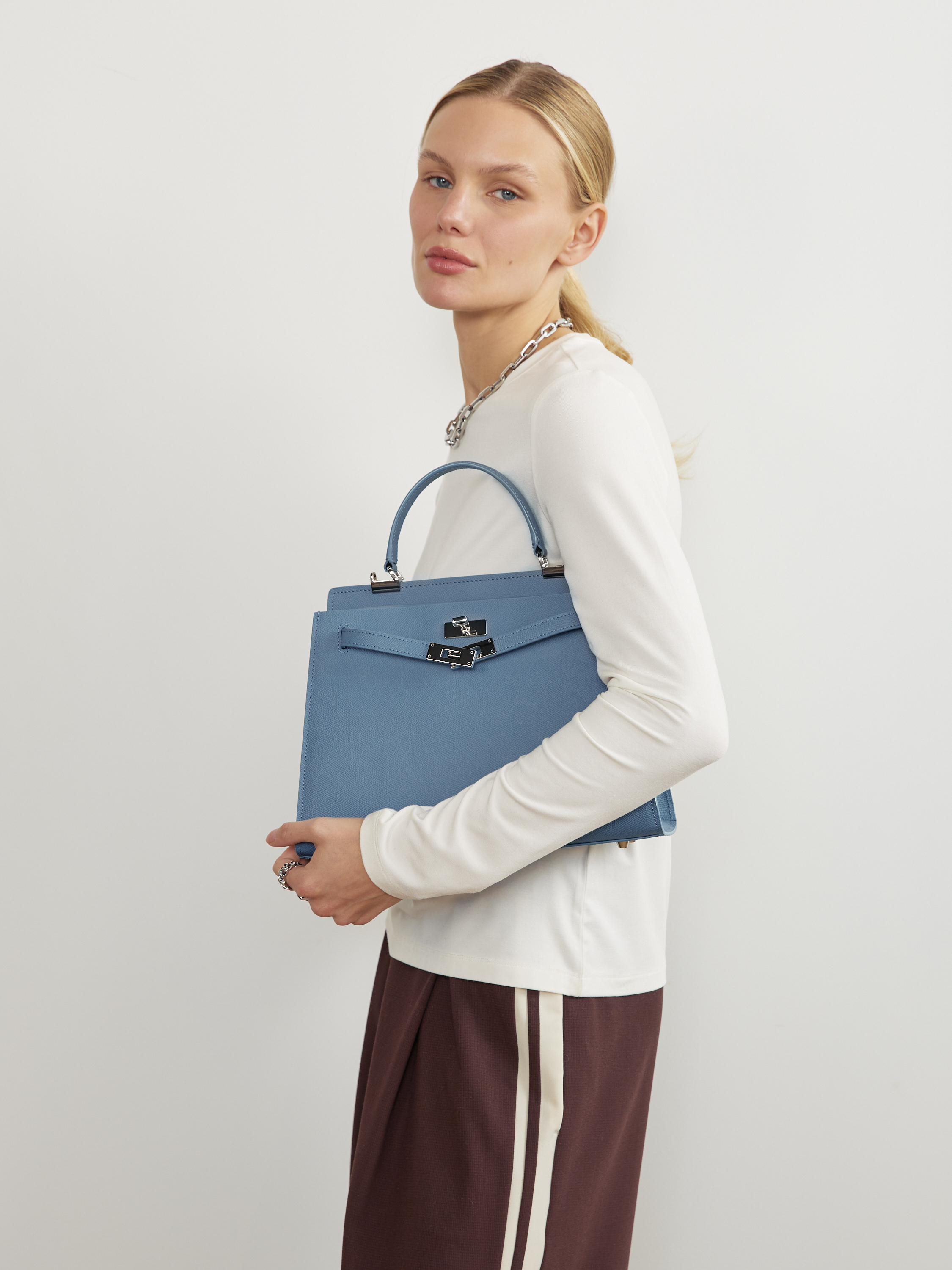 Сумка выполнена из кожи с тиснением эпсом, что делает ее поверхность устойчивой к царапинам.