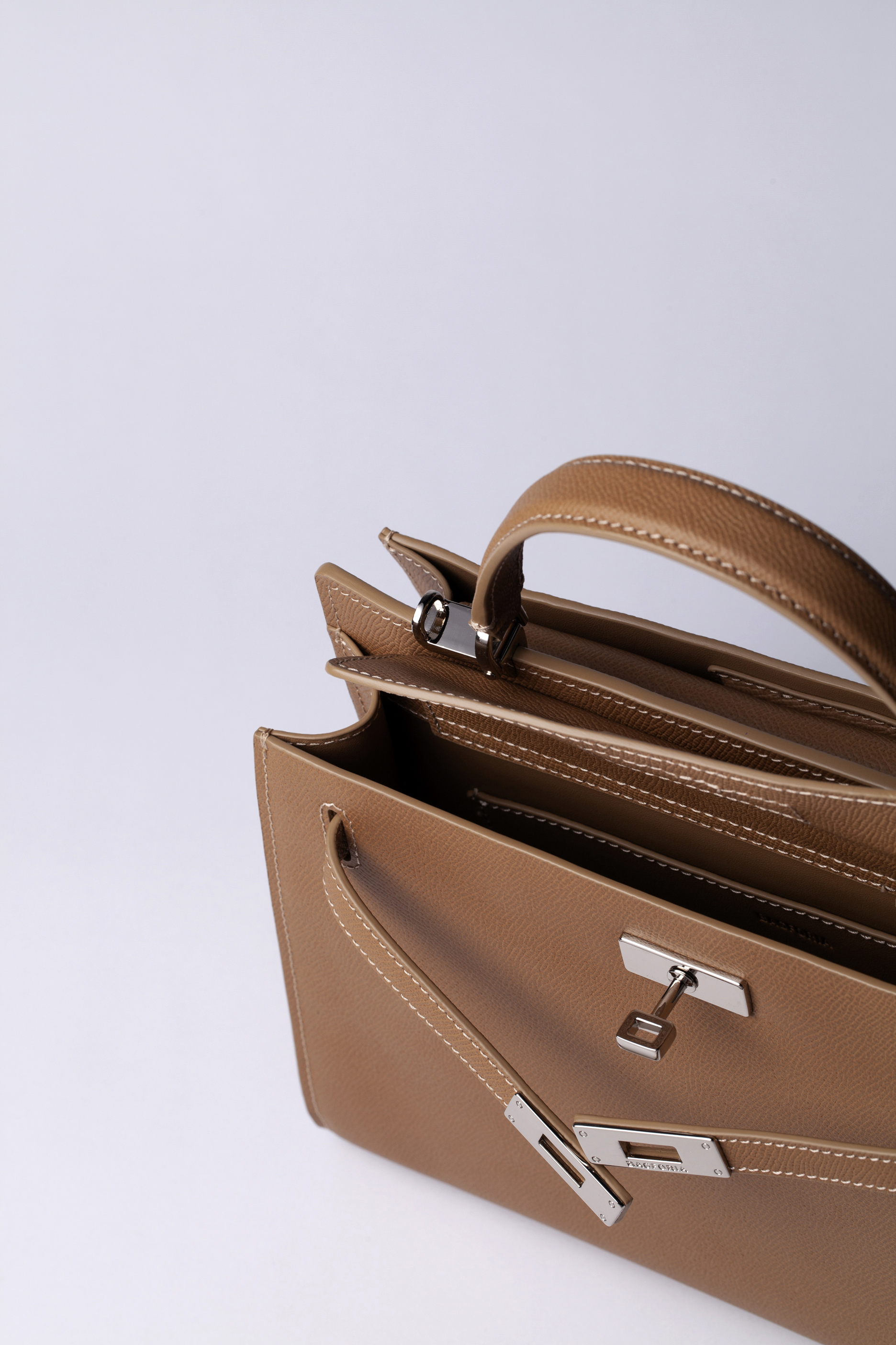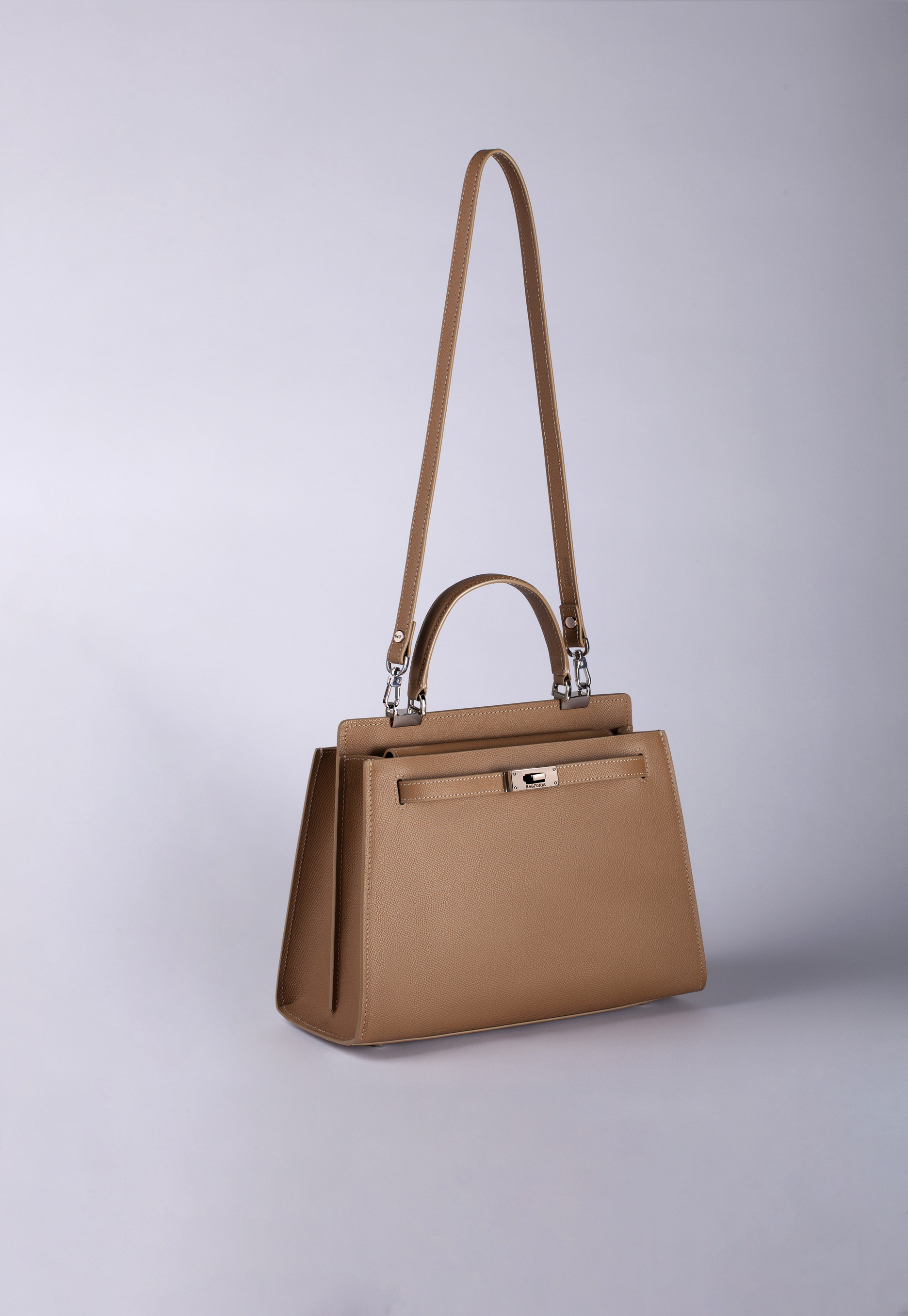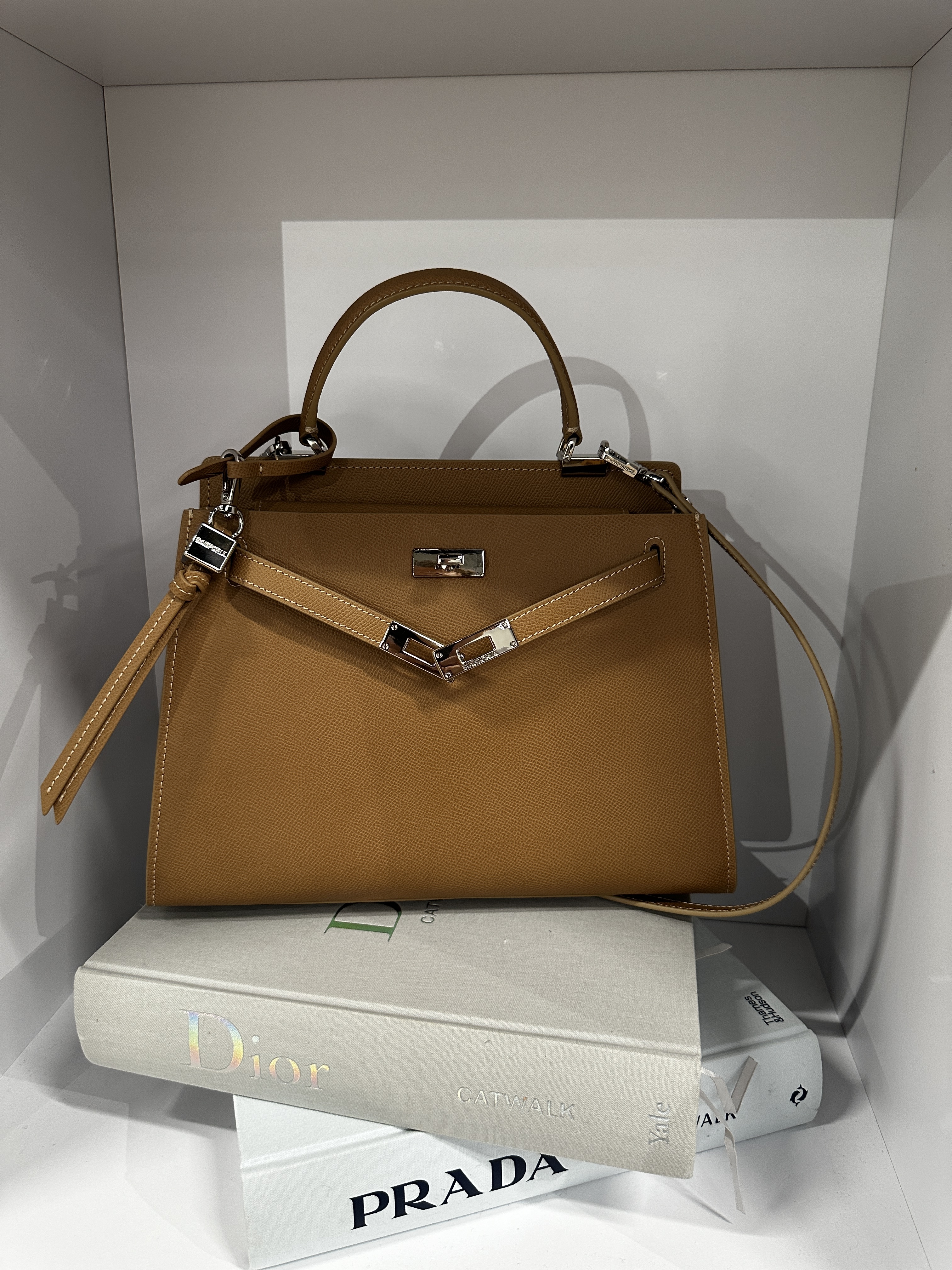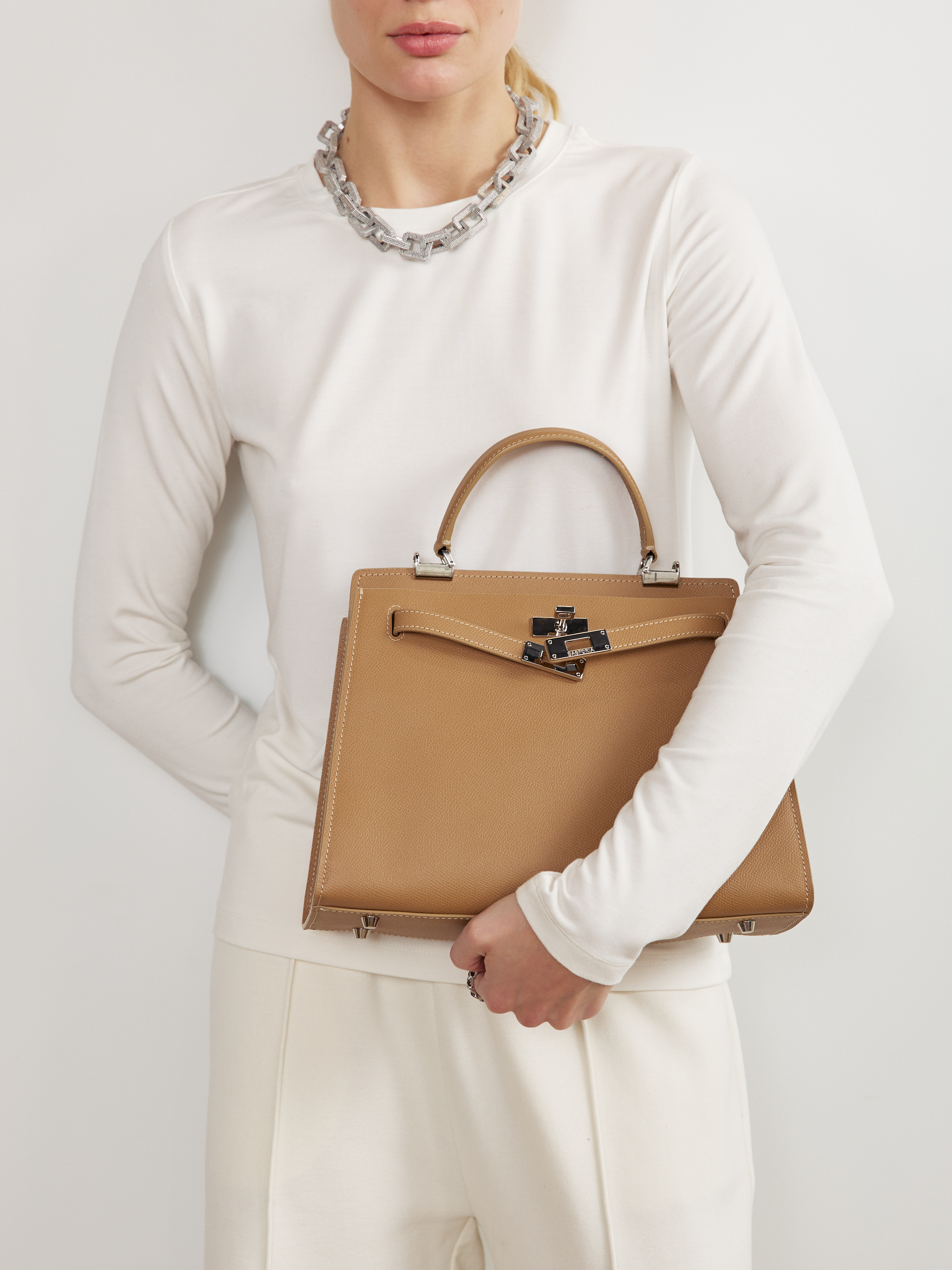 Сумка выполнена из кожи с тиснением эпсом, что делает ее поверхность устойчивой к царапинам.