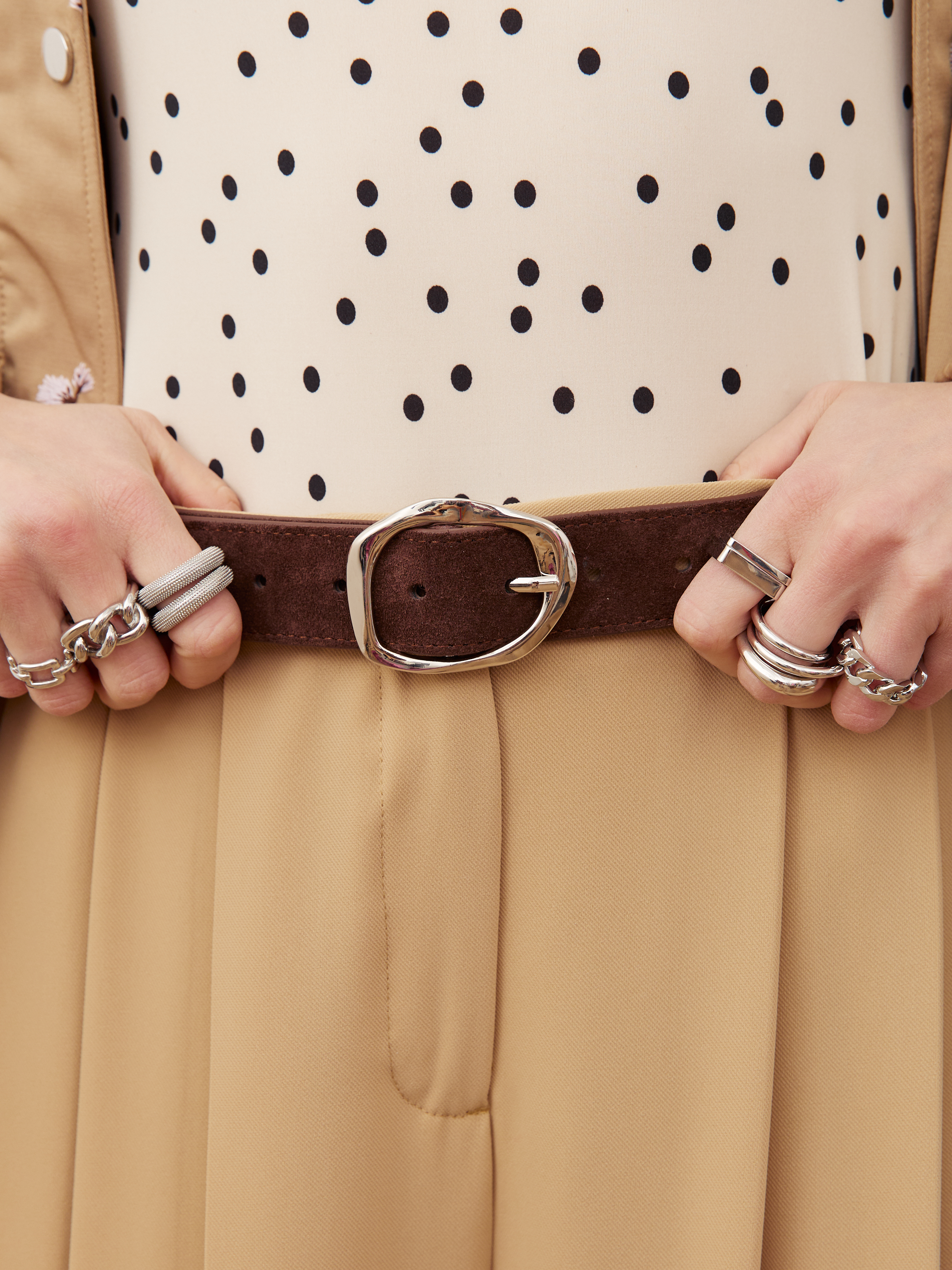 Изделия из замши могут незначительно окрашивать соприкасающиеся поверхности, что является нормальной особенностью материала.