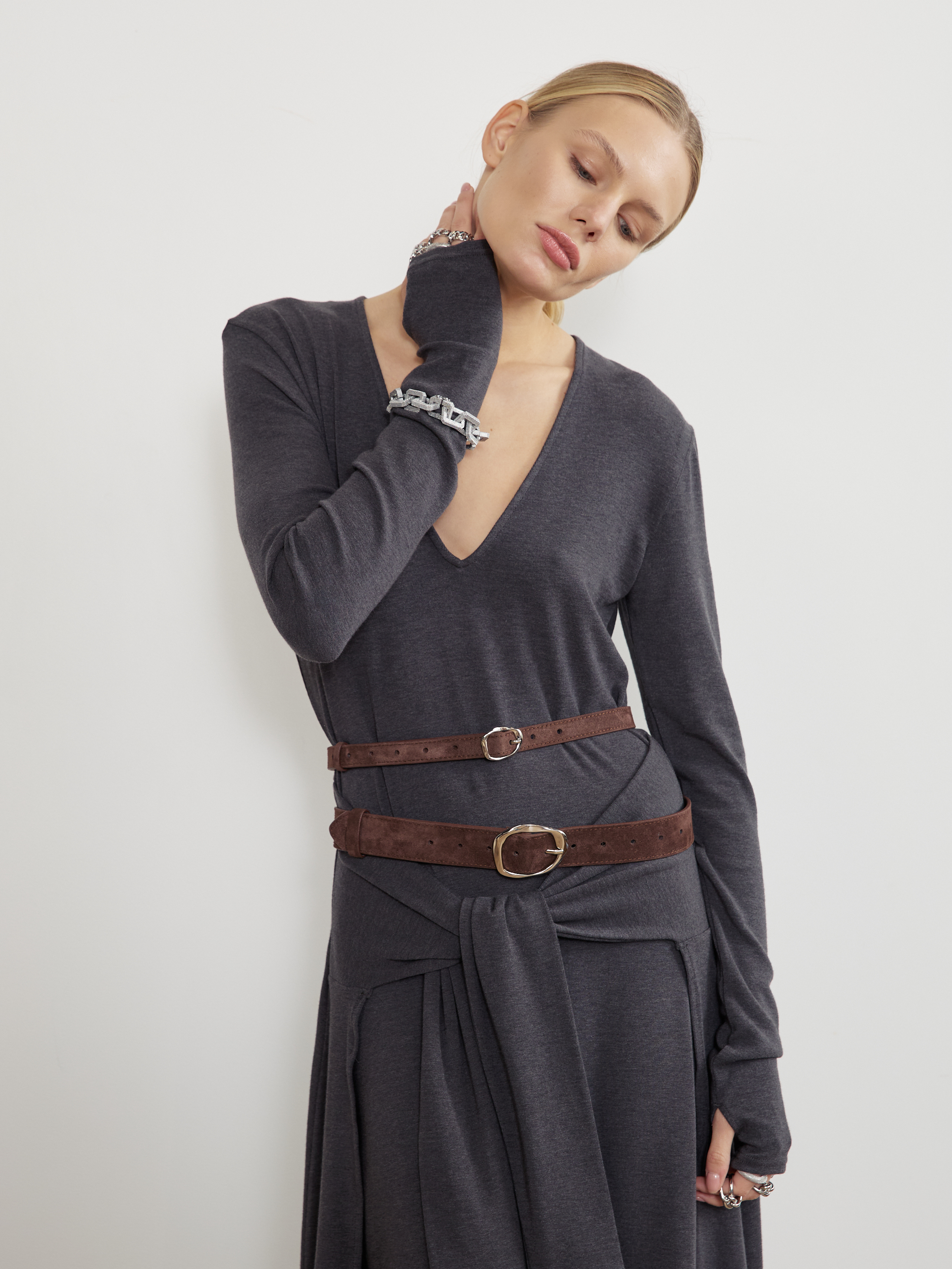 Базовый ремень из натуральной замши с минималистичной пряжкой. С обратной стороны натуральная кожа.