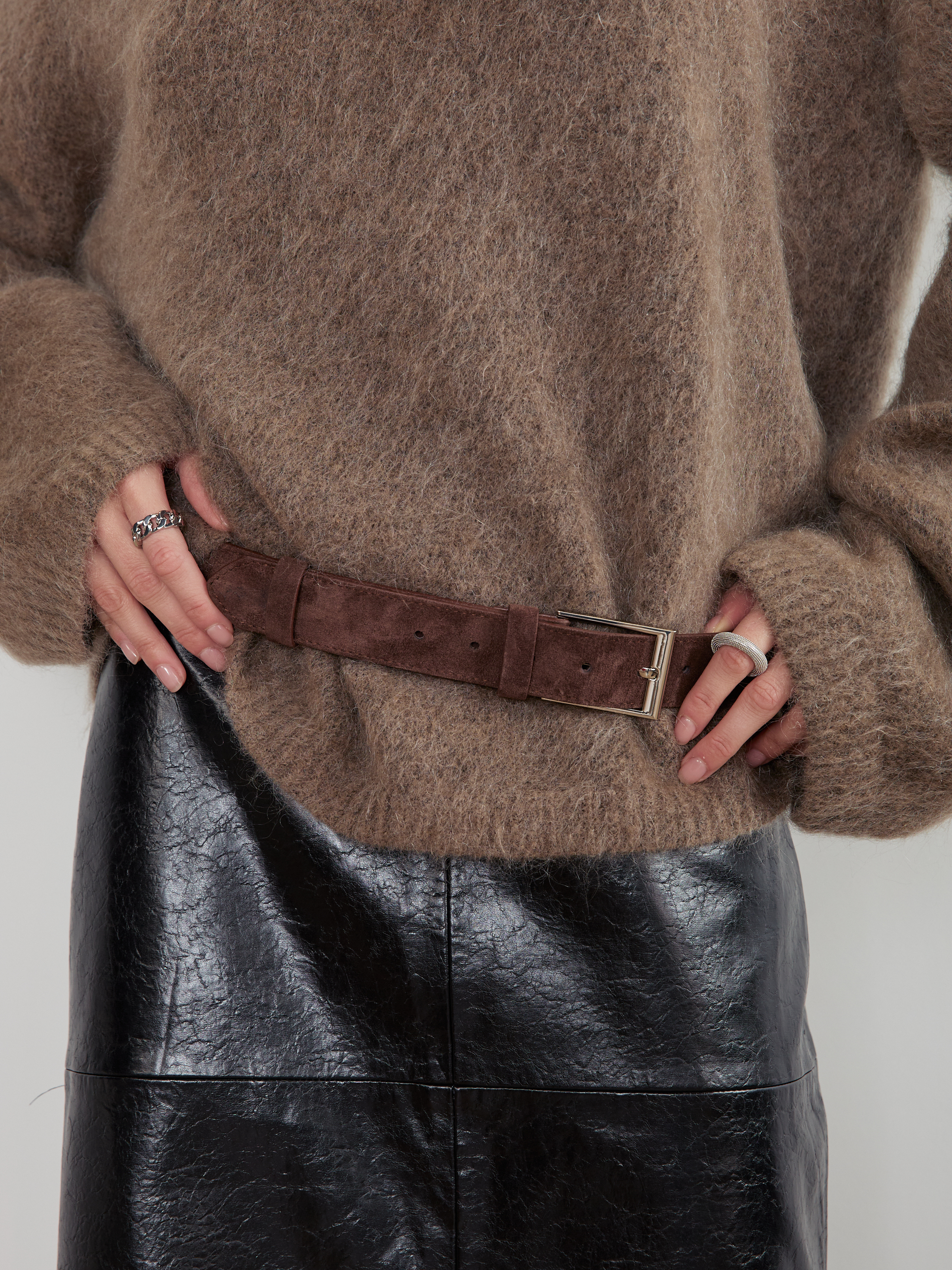 Изделия из замши могут незначительно окрашивать соприкасающиеся поверхности, что является нормальной особенностью материала.