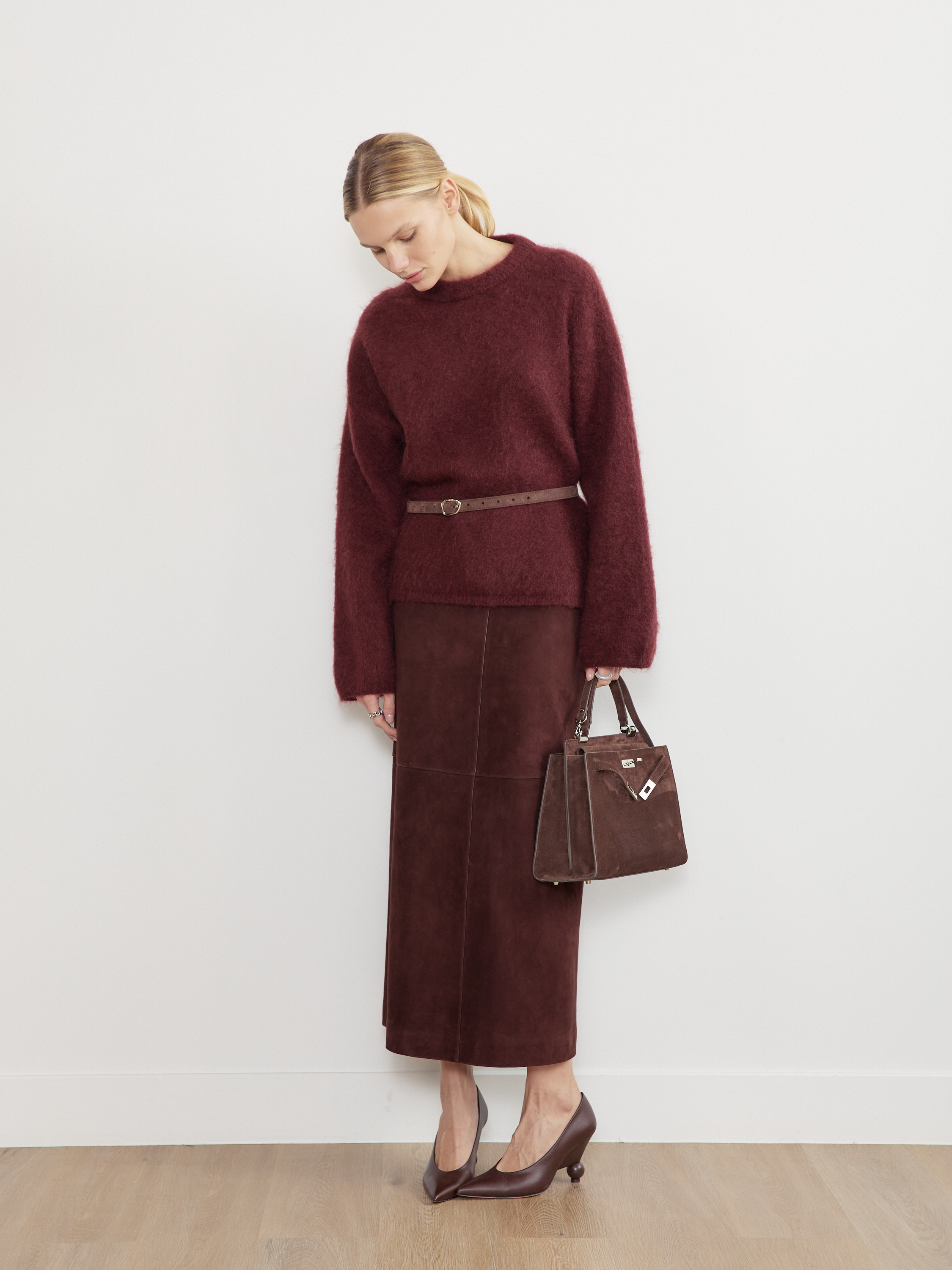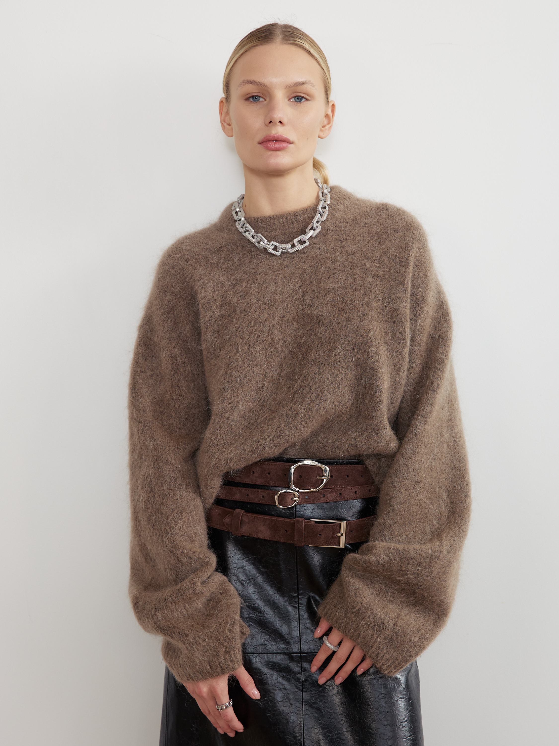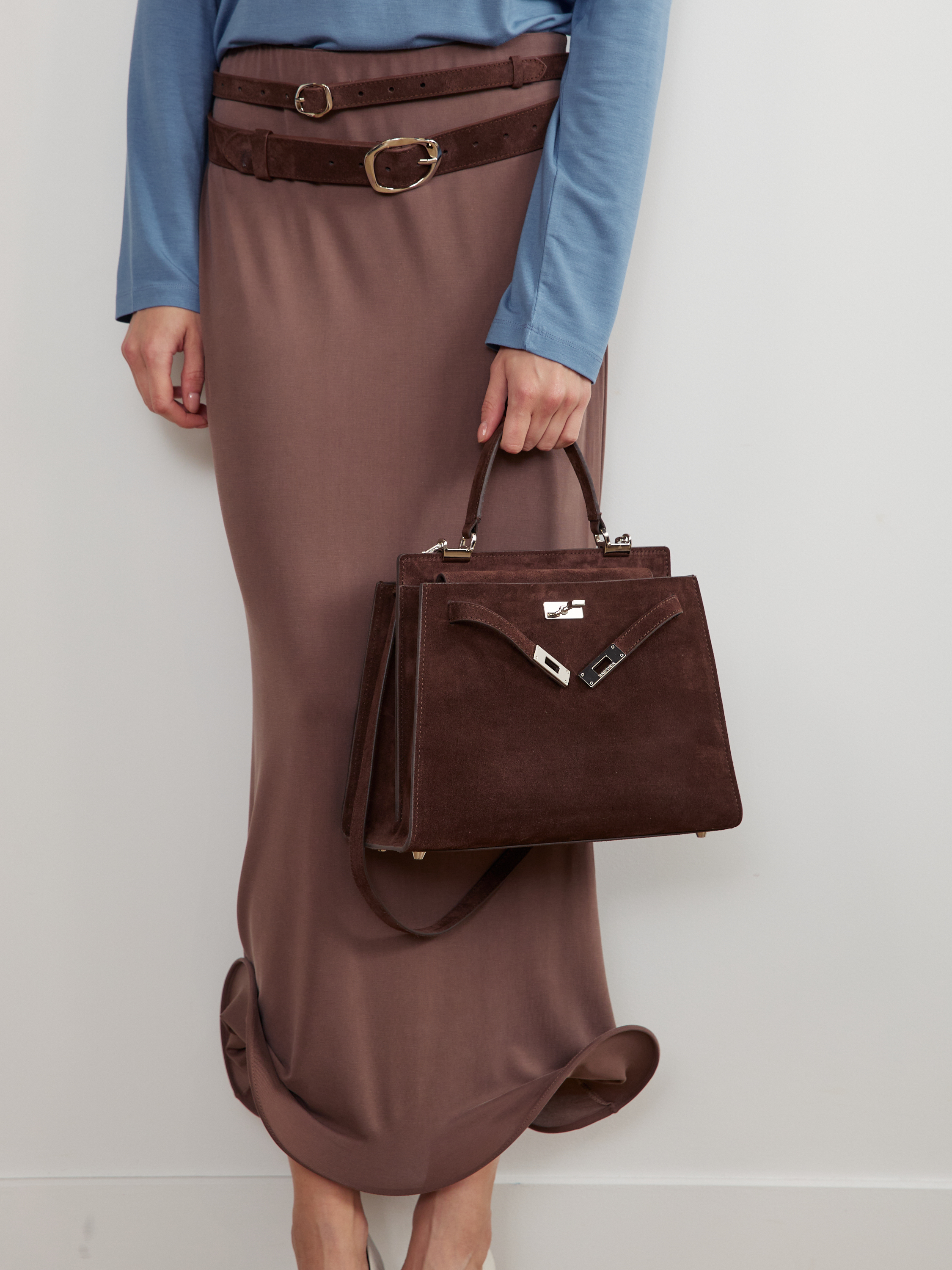 Базовый тонкий ремень в два оборота из натуральной замши с минималистичной пряжкой. С обратной стороны натуральная кожа.