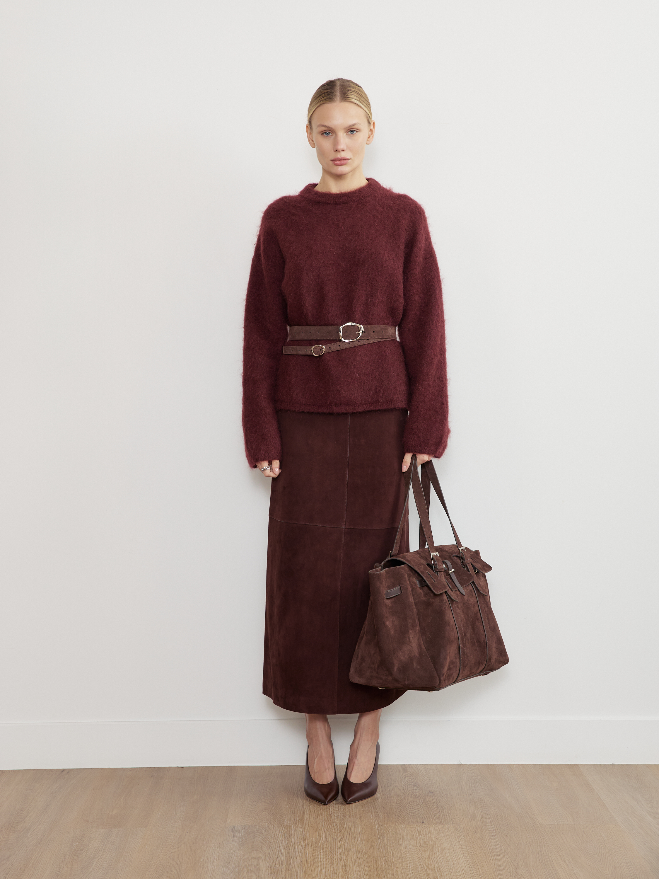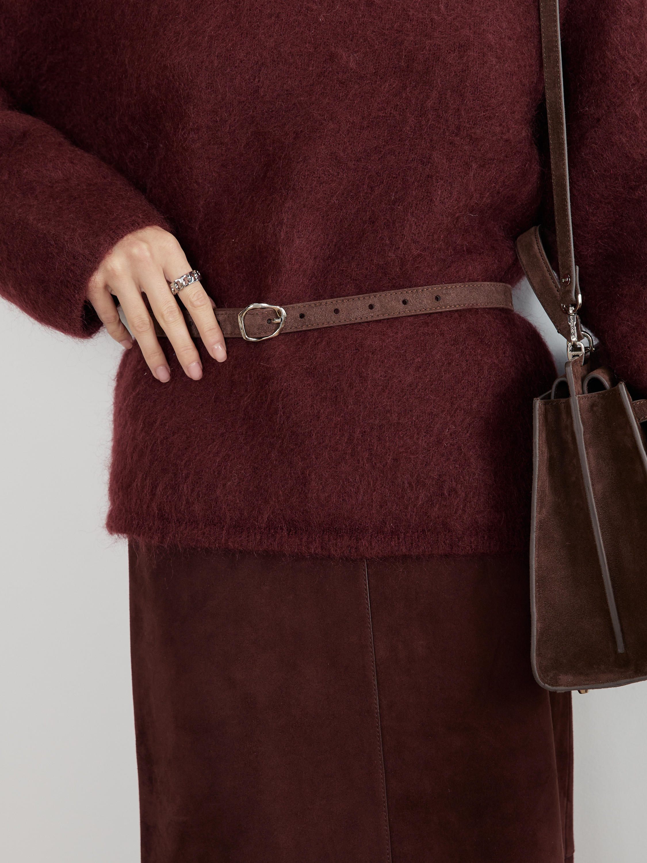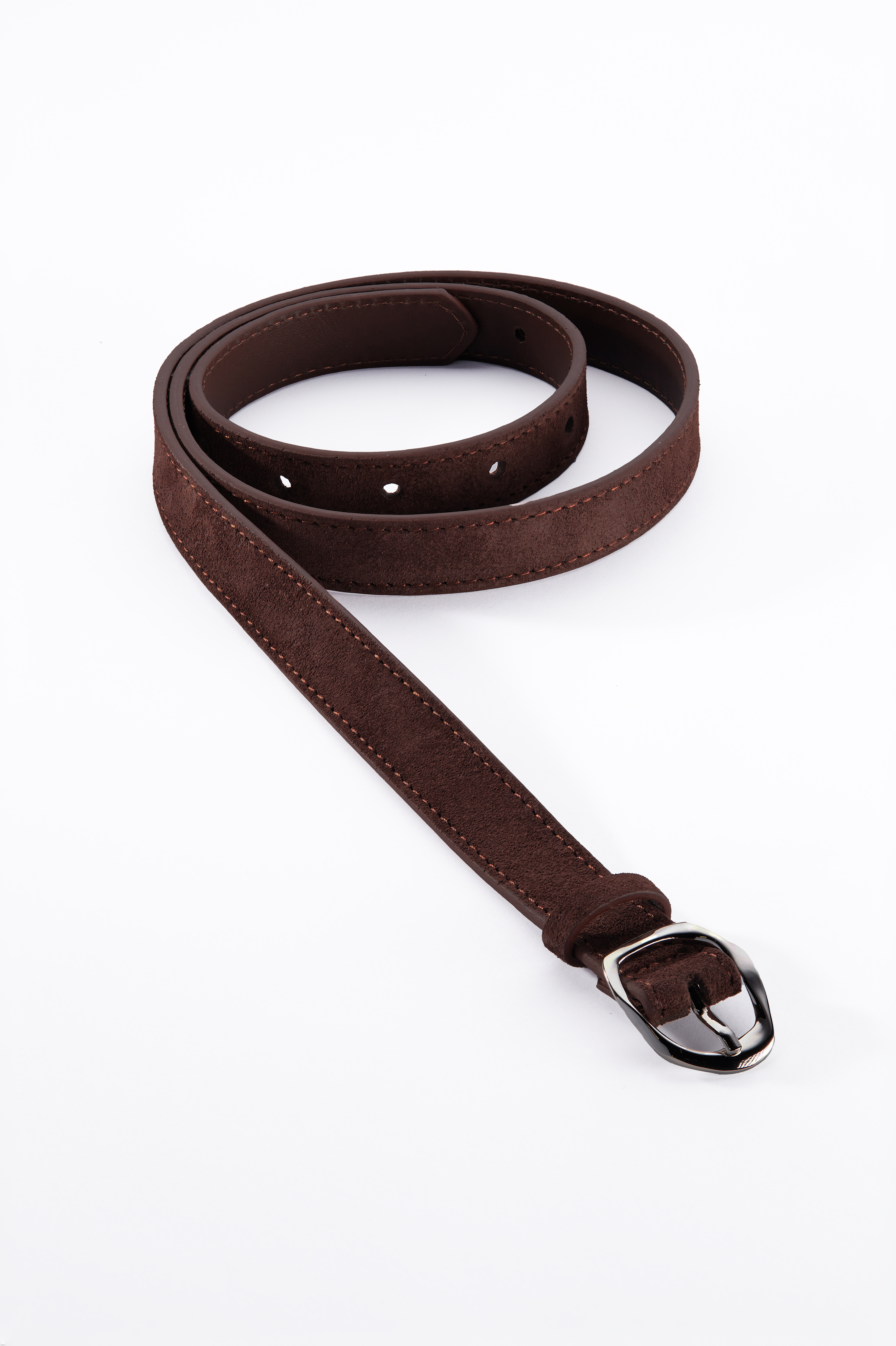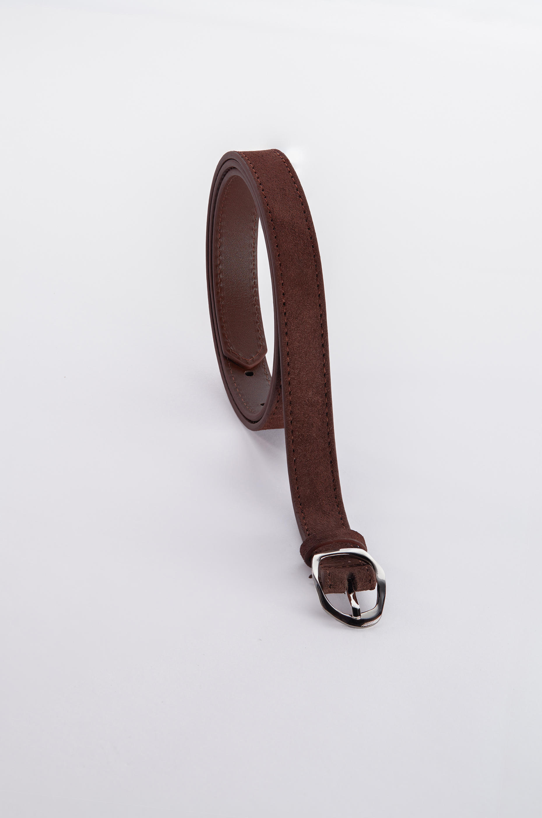БАЗОВЫЙ ТОНКИЙ РЕМЕНЬ С МЯТОЙ ПРЯЖКОЙ ЗАМША ТЕМНЫЙ ШОКОЛАД - SRB