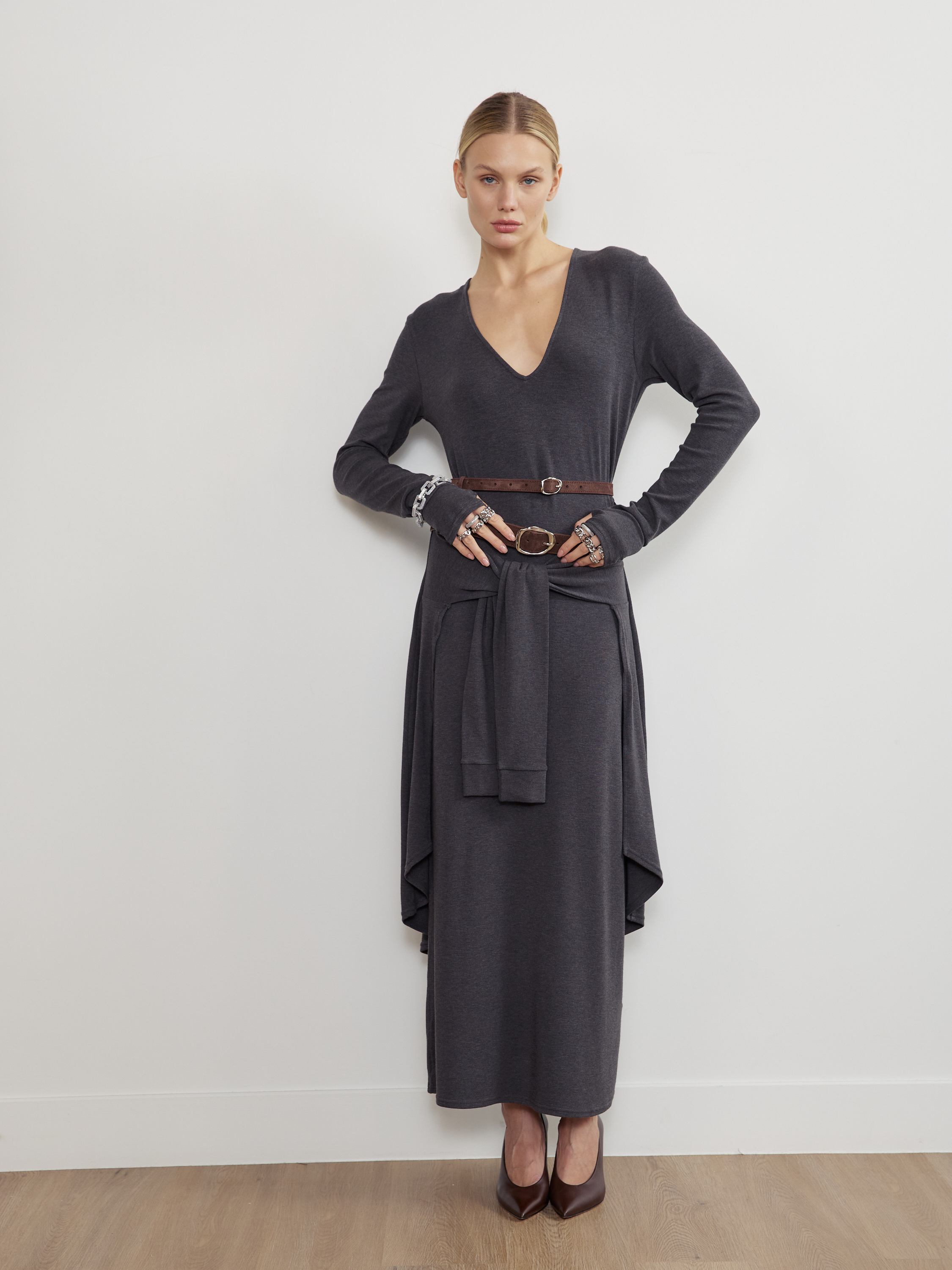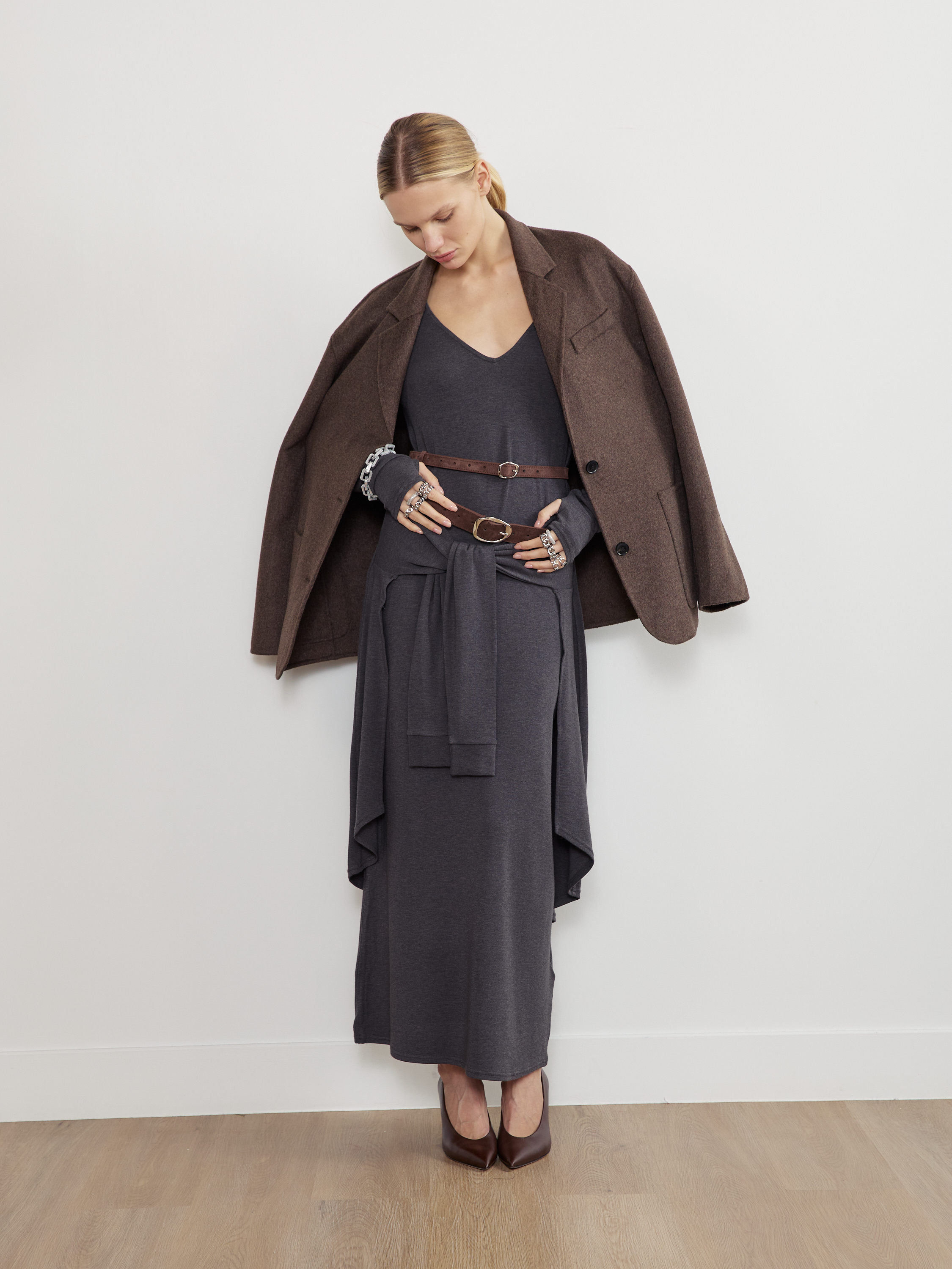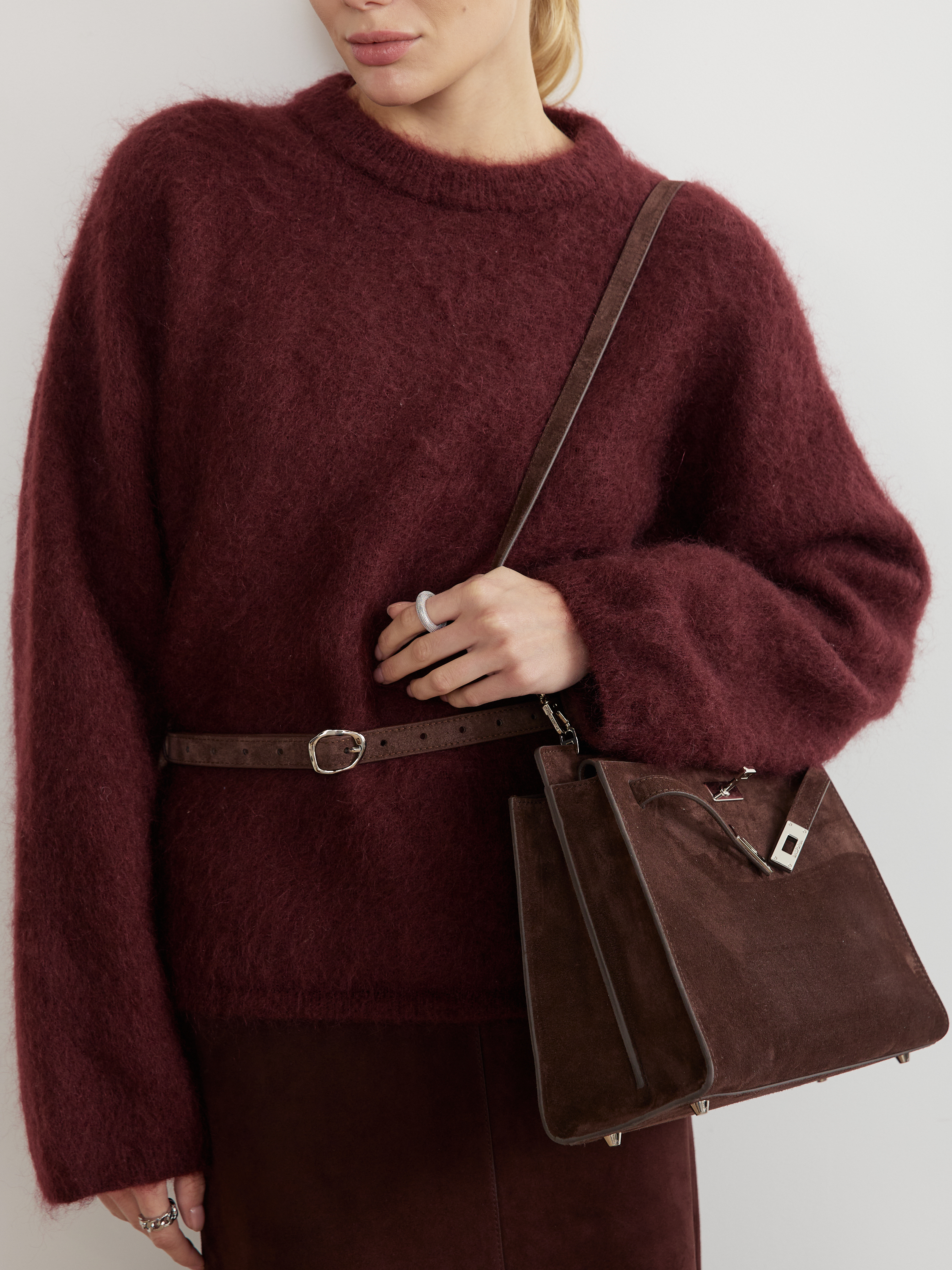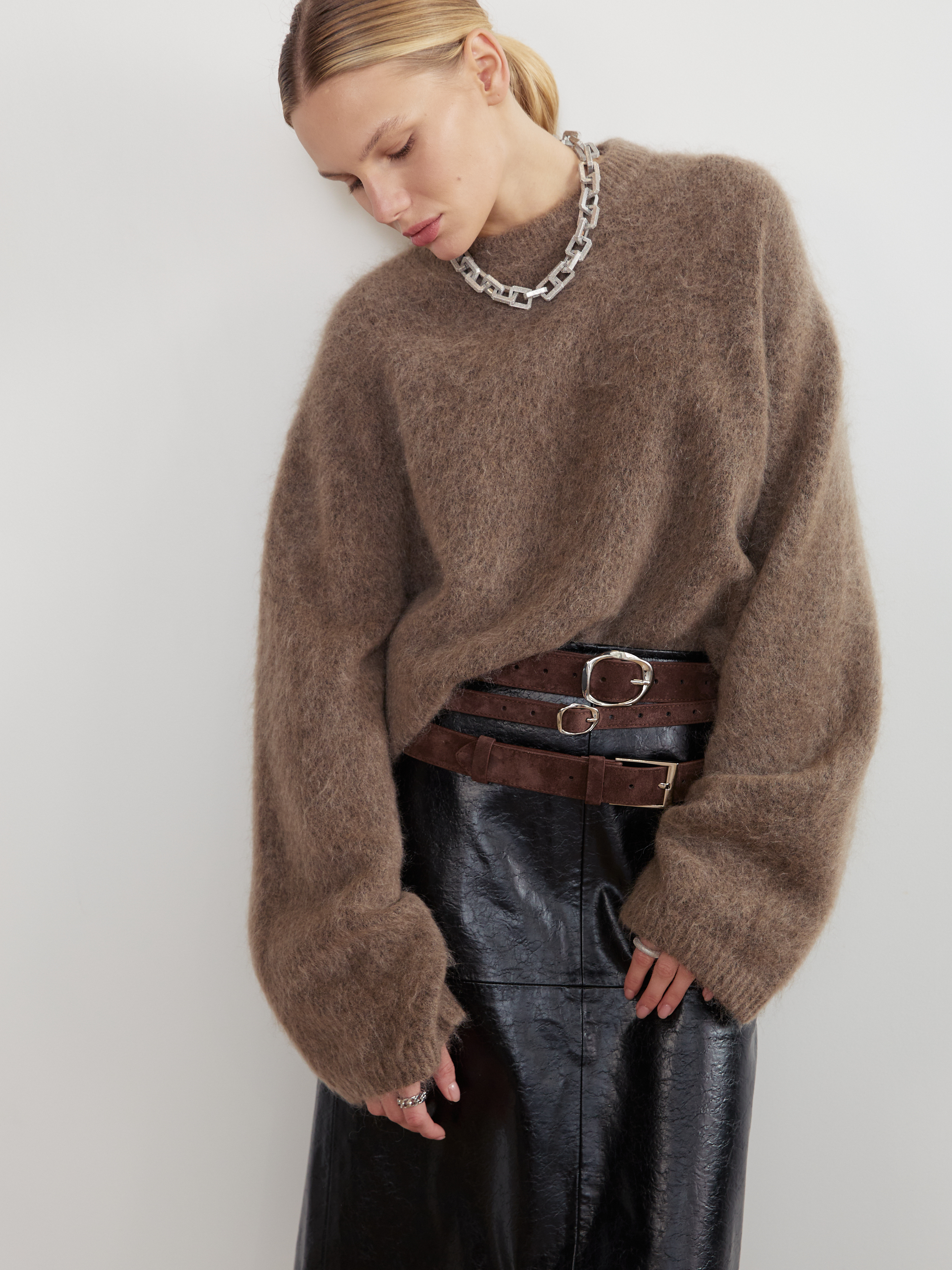 БАЗОВЫЙ ТОНКИЙ РЕМЕНЬ С МЯТОЙ ПРЯЖКОЙ ЗАМША ТЕМНЫЙ ШОКОЛАД