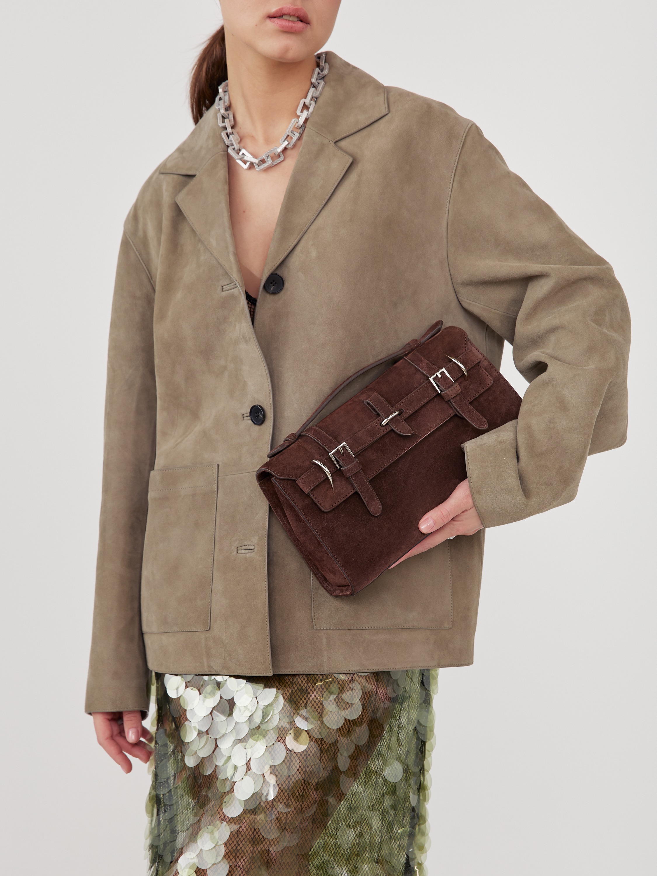 Изделия из замши могут незначительно окрашивать соприкасающиеся поверхности, что является нормальной особенностью материала.