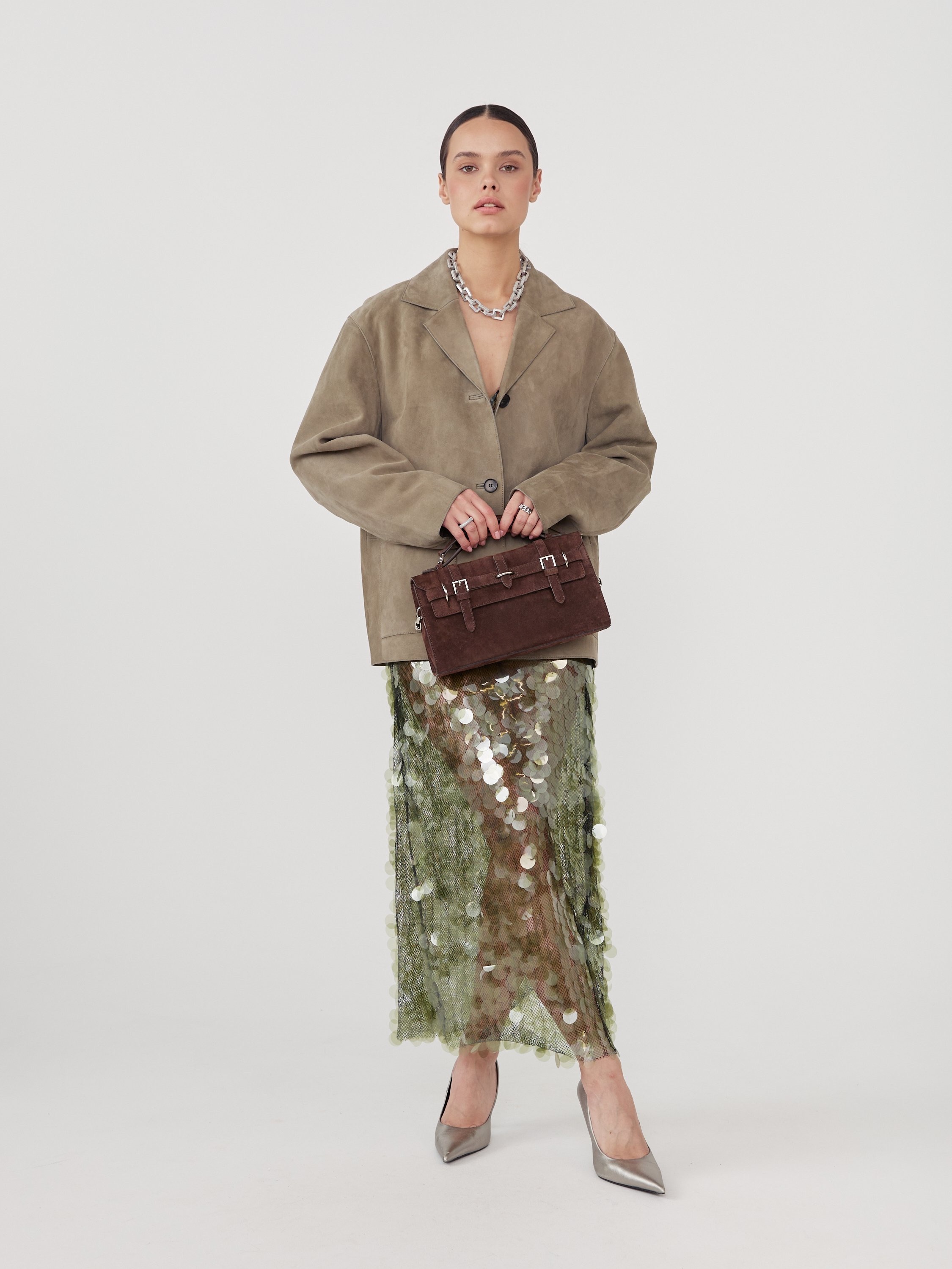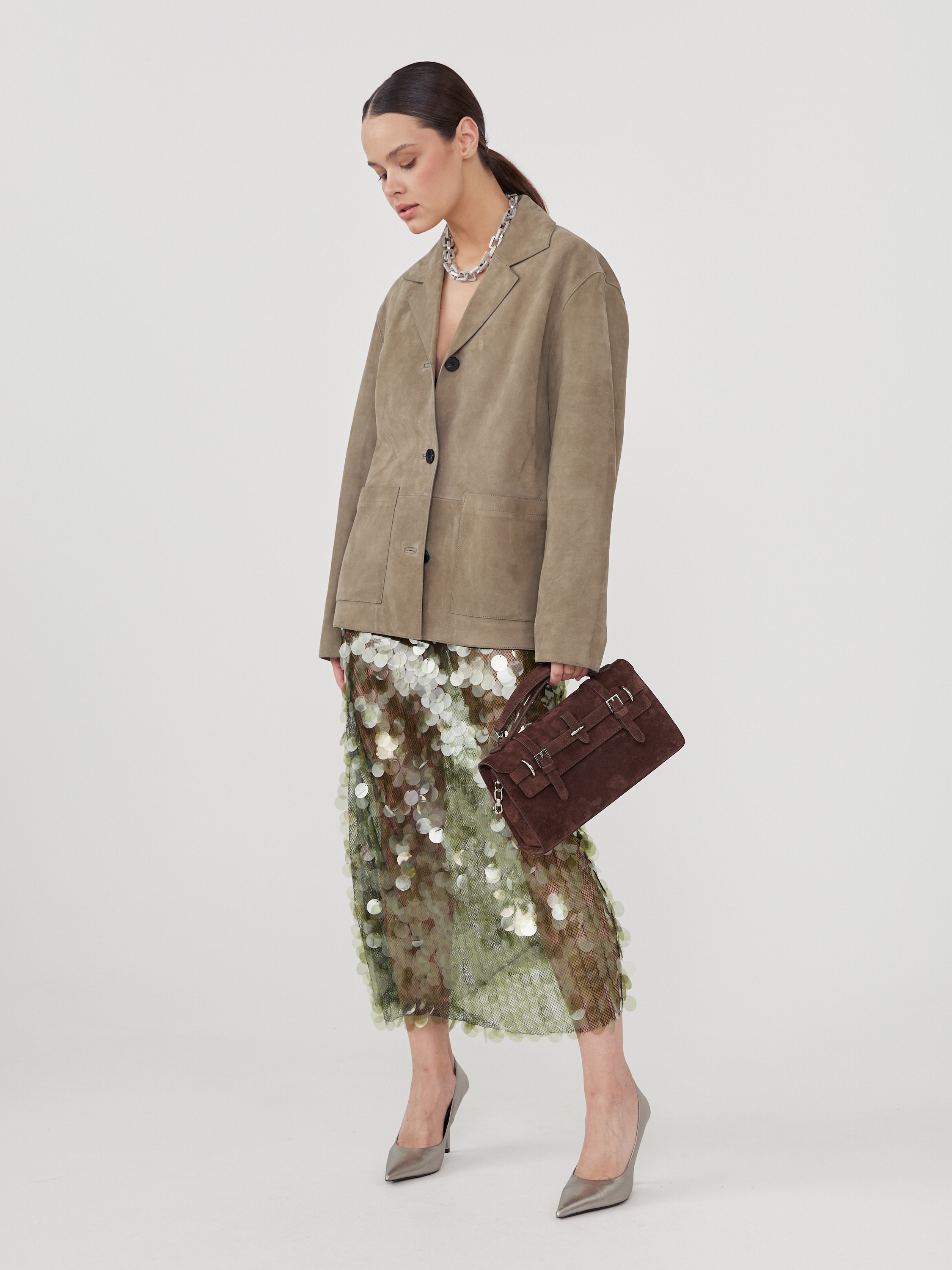 Изделия из замши могут незначительно окрашивать соприкасающиеся поверхности, что является нормальной особенностью материала.