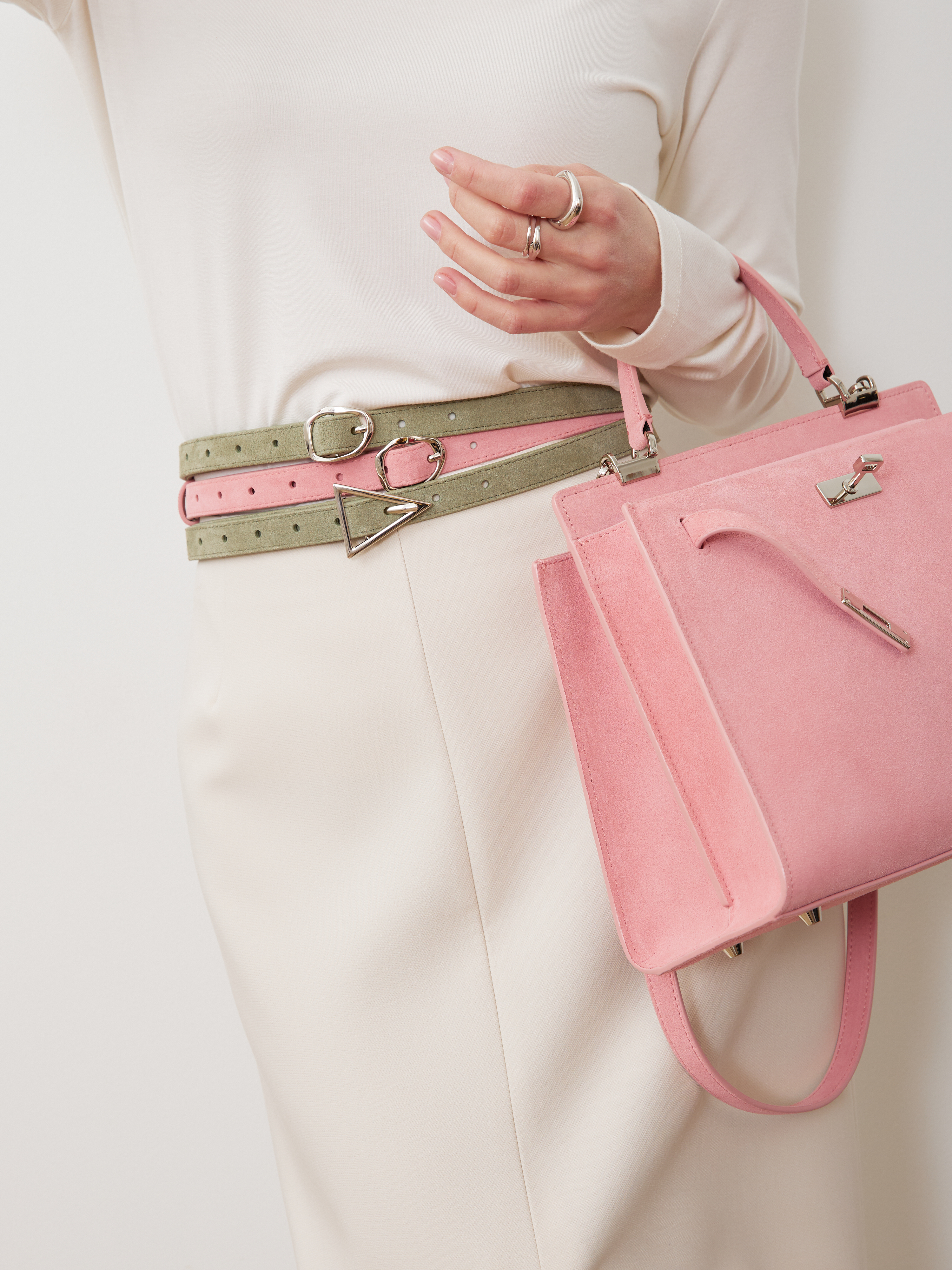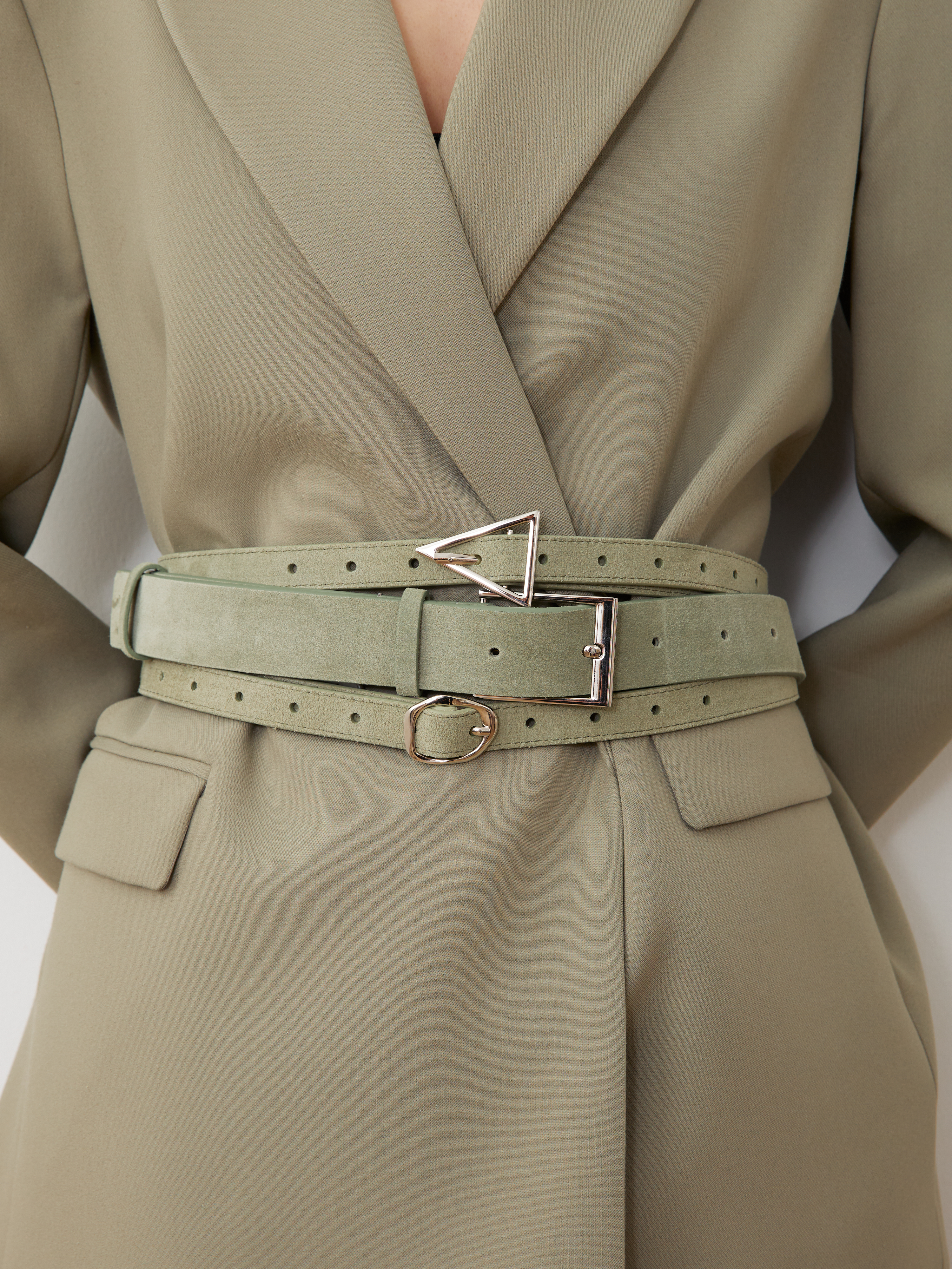 Базовый тонкий ремень из натуральной замши с минималистичной пряжкой. С обратной стороны натуральная кожа.