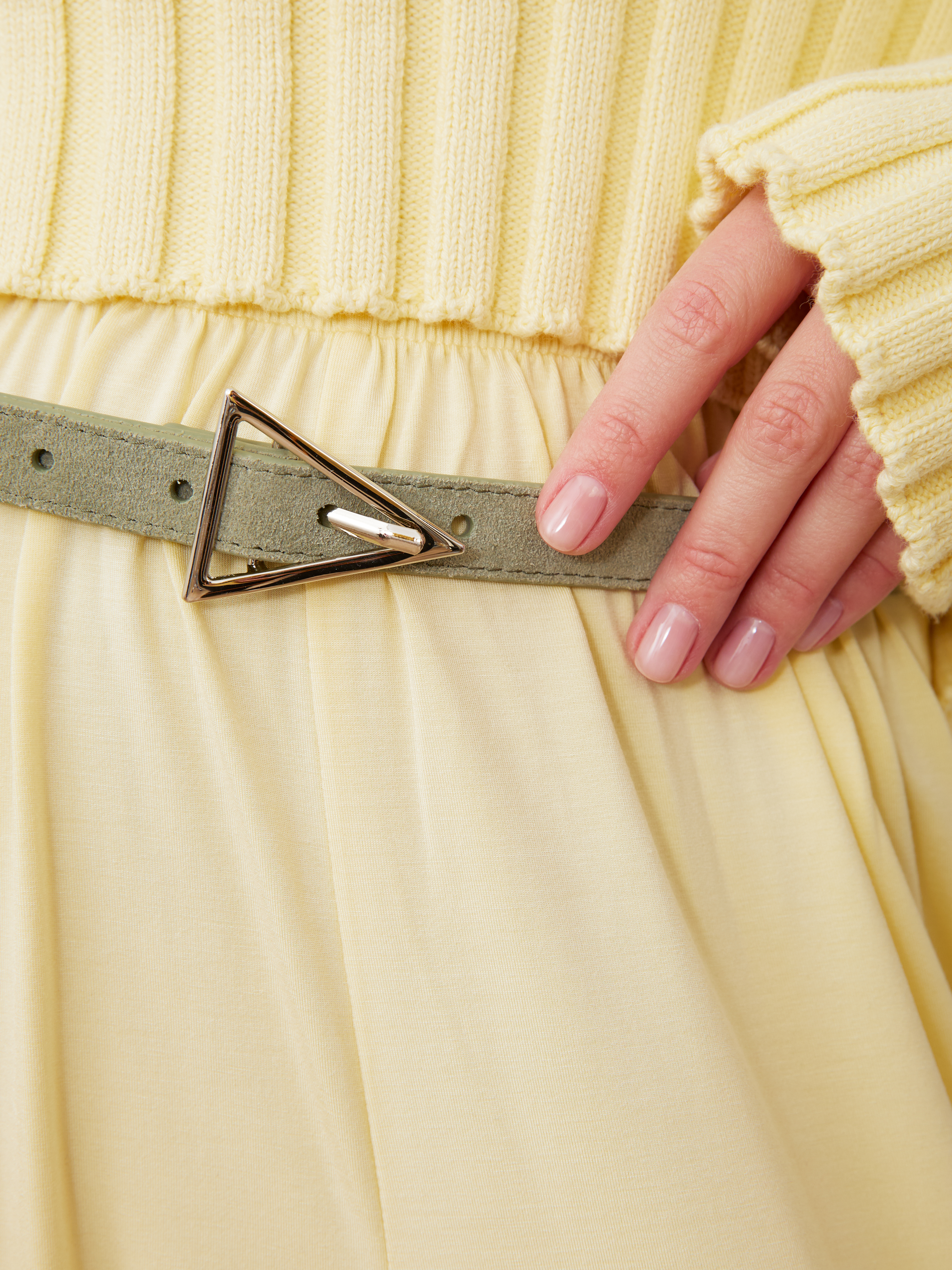 БАЗОВЫЙ ТОНКИЙ РЕМЕНЬ С ТРЕУГОЛЬНОЙ ПРЯЖКОЙ ЗАМША ФИСТАШКОВЫЙ
