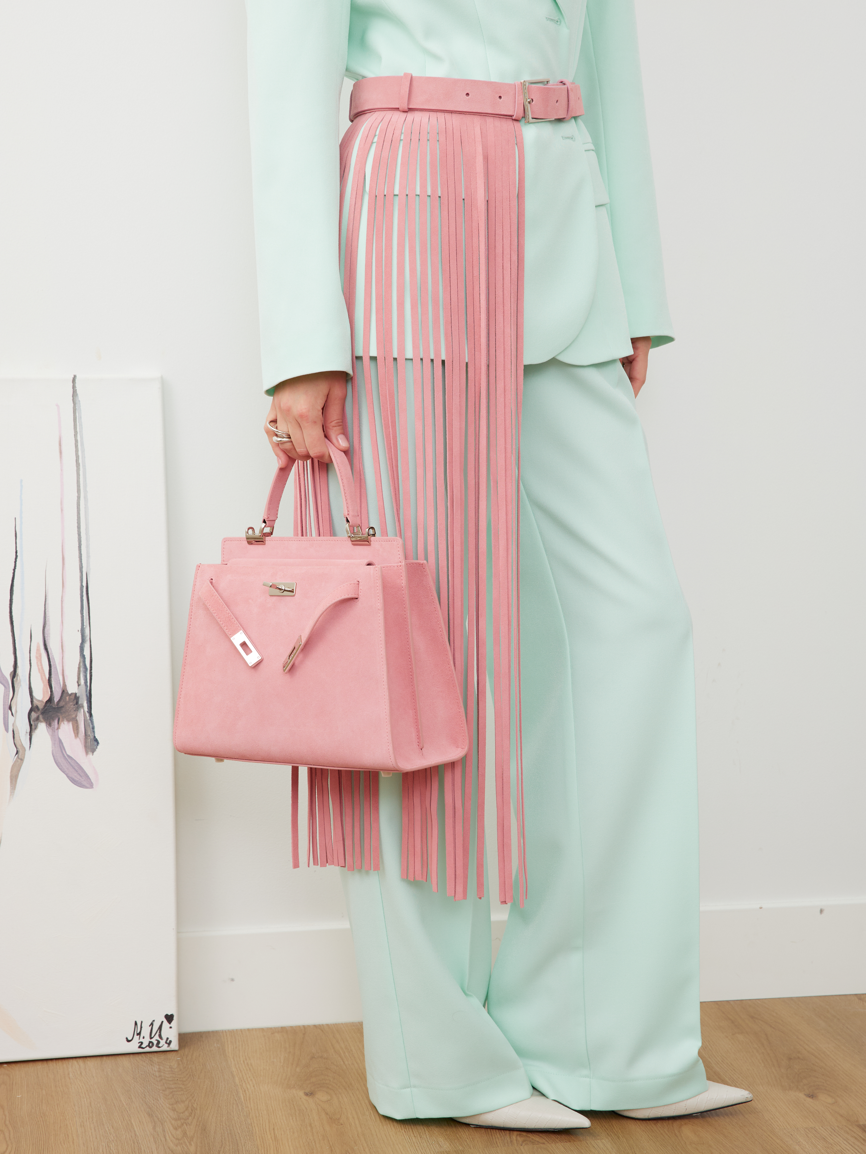 Изделия из замши могут незначительно окрашивать соприкасающиеся поверхности, что является нормальной особенностью материала.